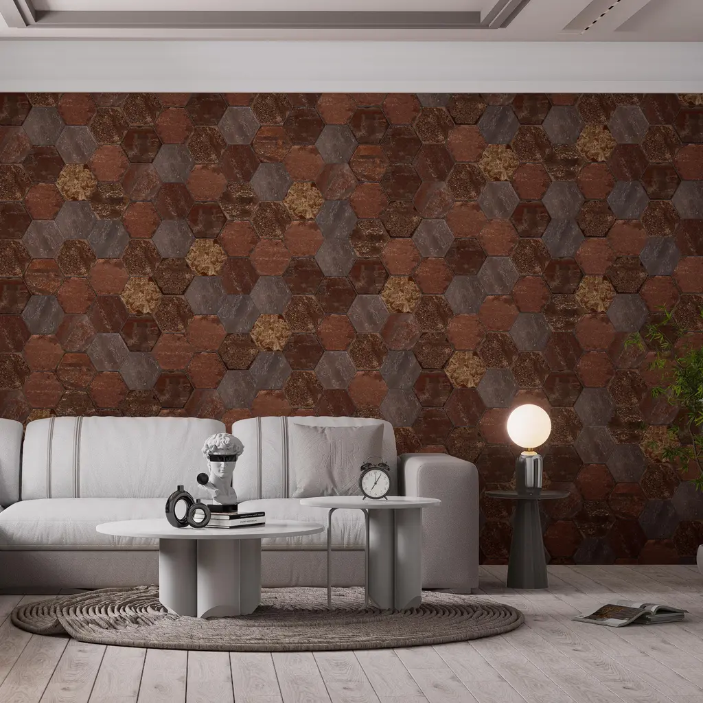 Inspired by a rustic look, our Brickyard Hex Red Porcelain Floor and Wall Tile features a medium textured, matte finish, providing decorative appeal that adapts to a variety of stylistic contexts. Containing 40 different print variations that are randomly distributed throughout each case, this red hexagon tile offers a one-of-a-kind look. With its impervious, frost-resistant features, this tile is an ideal selection for both indoor and outdoor residential installations, including kitchens, bathrooms, backsplashes, showers, hallways and fireplace facades. This tile is a perfect choice on its own or paired with other products in the Brickyard Collection. Tile is the better choice for your space! 13.05 square feet, 29 pieces per case. Case weight is 51.04 lbs. Grade 1, first-quality porcelain tile for floor and wall use 8.5 in. width x 9.88 in. length x 0.35 in. thick Glazed, medium textured finish with a low sheen and substantial variation in tone PEI Rating III is suitable for medium-duty residential floors including kitchens, halls, corridors, balconies, terraces and areas used more often with normal footwear and small amounts of dirt Impervious tiles have a water absorption of less than 0.5% for indoor and outdoor use and are frost resistant This tile is ADA approved for slip resistance with a DCOF value of 0.42 or higher. Completely frost resistant for indoor or outdoor applications; use a latex-modified thinset for acceptable bond strength Please note: A sample of this product may be a partial piece cut from the full size tile in order to provide an affordable and convenient way for customers to judge the quality and finish of this item. Samples are not returnable.