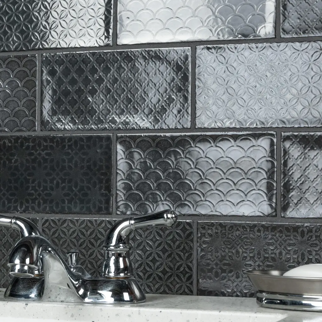 Merola Tile Camden Decor Nero 4" X 8" Ceramic Wall Tile - Case (50 Tiles)