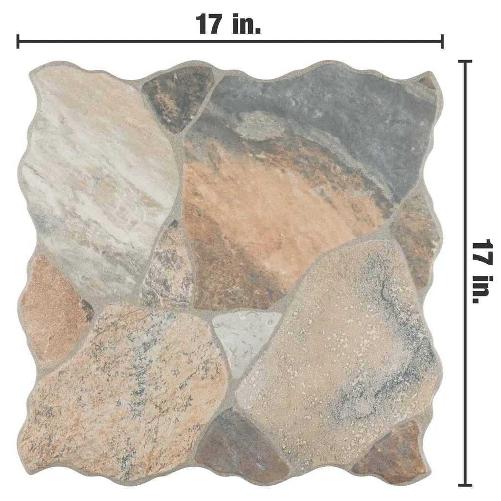 Capturing the rustic appearance of natural stone in a durable porcelain material, our Canet Beige Porcelain Floor and Wall Tile brings the irreplaceable beauty of nature into any living space. Comprised of abstract stone-look shapes in varying shades of beige, brown, orange, and grey, this tile offers a pleasing mixture of warm-toned tints with a textured surface. This floor and wall tile draws heavily from the natural appeal of stone with imitation scuffs and spots that suits a variety of looks, including vintage, natural and modern. Its impervious, frost-proof, and durable features make it an ideal choice for residential or commercial indoor and outdoor installations, including kitchens, bathrooms, backsplashes, showers, entryways, and patios. Tile is the better choice for your space. This tile is made from natural ingredients, making it a healthy choice as it is free from allergens, VOCs, formaldehyde, and PVC. 12.24 square feet, 6 pieces per case. Case weight is 45.3 lbs. Grade 1, first-quality porcelain tile for floor and wall use 17 in. width x 17 in. length x 0.33 in. thick Glazed, slightly textured finish with a low sheen and uniform appearance in tone PEI Rating IV has high resistance to abrasion and is suitable for heavy-duty residential and commercial kitchens, hotels, exhibition and sales rooms with some dirt conditions Impervious tiles have a water absorption of less than 0.5% for indoor and outdoor use and are frost resistant This tile is ADA approved for slip resistance with a DCOF value of 0.42 or higher. Completely frost resistant for indoor or outdoor applications; use a latex-modified thinset for acceptable bond strength Please note: A sample of this product may be a partial piece cut from the full size tile in order to provide an affordable and convenient way for customers to judge the quality and finish of this item. Samples are not returnable.