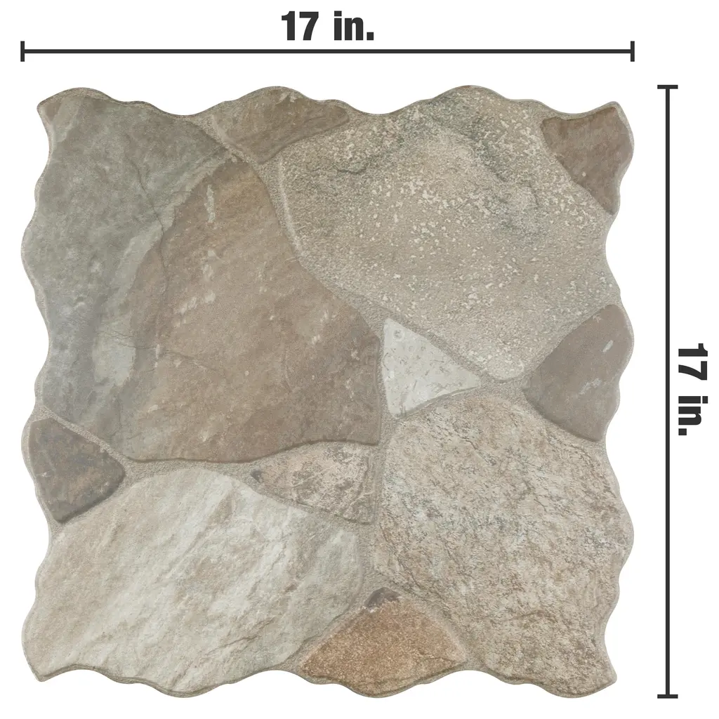 Capturing the rustic appearance of natural stone in a durable porcelain material, our Canet Gris Porcelain Floor and Wall Tile brings the irreplaceable beauty of nature into any living space. Comprised of abstract stone-look shapes in varying neutral shades of grey and brown, this tile offers a pleasing mixture of warm-toned tints with a textured surface. This floor and wall tile draws heavily from the natural appeal of stone with imitation scuffs and spots that suits a variety of looks, including vintage, natural and modern. Its impervious, frost-proof, and durable features make it an ideal choice for residential or commercial indoor and outdoor installations, including kitchens, bathrooms, backsplashes, showers, entryways, and patios. Tile is the better choice for your space. This tile is made from natural ingredients, making it a healthy choice as it is free from allergens, VOCs, formaldehyde, and PVC. 12.24 square feet, 6 pieces per case. Case weight is 45.3 lbs. Grade 1, first-quality porcelain tile for floor and wall use 17 in. width x 17 in. length x 0.33 in. thick Glazed, slightly textured finish with a low sheen and uniform appearance in tone PEI Rating IV has high resistance to abrasion and is suitable for heavy-duty residential and commercial kitchens, hotels, exhibition and sales rooms with some dirt conditions Impervious tiles have a water absorption of less than 0.5% for indoor and outdoor use and are frost resistant This tile is ADA approved for slip resistance with a DCOF value of 0.42 or higher. Completely frost resistant for indoor or outdoor applications; use a latex-modified thinset for acceptable bond strength Please note: A sample of this product may be a partial piece cut from the full size tile in order to provide an affordable and convenient way for customers to judge the quality and finish of this item. Samples are not returnable.