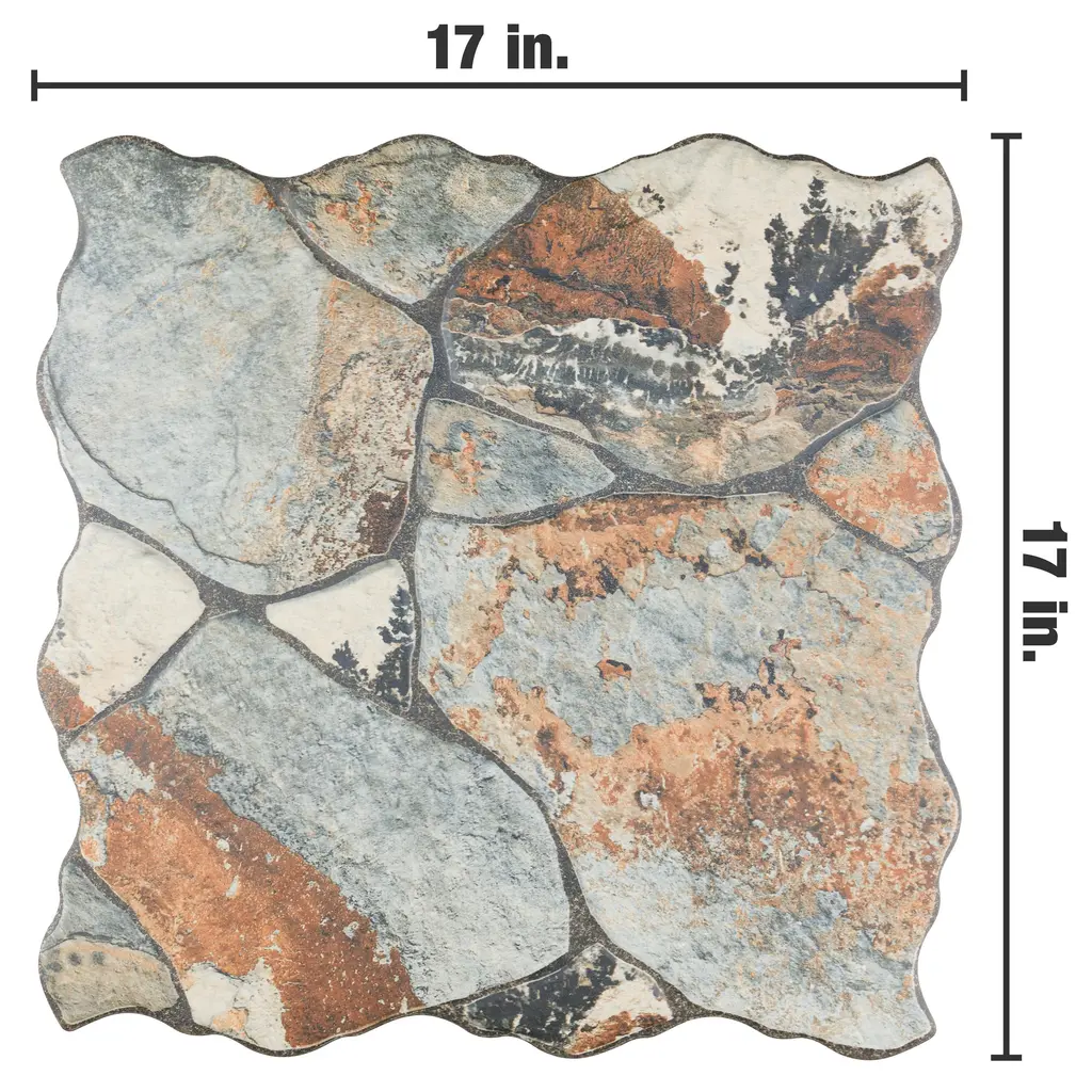 Capturing the rustic appearance of natural stone in a durable porcelain material, our Canet Oxido Porcelain Floor and Wall Tile brings the irreplaceable beauty of nature into any living space. Comprised of abstract stone-look shapes in varying shades of beige, brown, orange, and grey, this tile creates a unique sporadic design with a textured surface. This floor and wall tile draws heavily from the natural appeal of stone with imitation scuffs and spots that suits a variety of looks, including vintage, natural and modern. Its impervious, frost-proof, and durable features make it an ideal choice for residential or commercial indoor and outdoor installations, including kitchens, bathrooms, backsplashes, showers, entryways, and patios. Tile is the better choice for your space. This tile is made from natural ingredients, making it a healthy choice as it is free from allergens, VOCs, formaldehyde, and PVC. 12.24 square feet, 6 pieces per case. Case weight is 45.3 lbs. Grade 1, first-quality porcelain tile for floor and wall use 17 in. width x 17 in. length x 0.33 in. thick Glazed, slightly textured finish with a low sheen and uniform appearance in tone PEI Rating IV has high resistance to abrasion and is suitable for heavy-duty residential and commercial kitchens, hotels, exhibition and sales rooms with some dirt conditions Impervious tiles have a water absorption of less than 0.5% for indoor and outdoor use and are frost resistant This tile is ADA approved for slip resistance with a DCOF value of 0.42 or higher. Completely frost resistant for indoor or outdoor applications; use a latex-modified thinset for acceptable bond strength Please note: A sample of this product may be a partial piece cut from the full size tile in order to provide an affordable and convenient way for customers to judge the quality and finish of this item. Samples are not returnable.