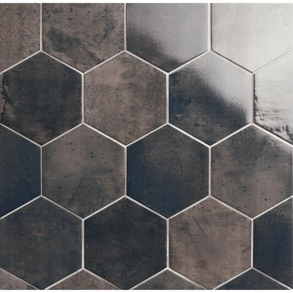 Merola Tile Capri Hex Nero 7" X 8" Porcelain Floor And Wall Tile - Case (36 Tiles)
