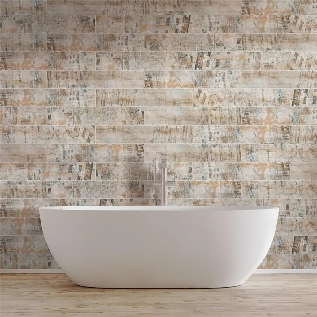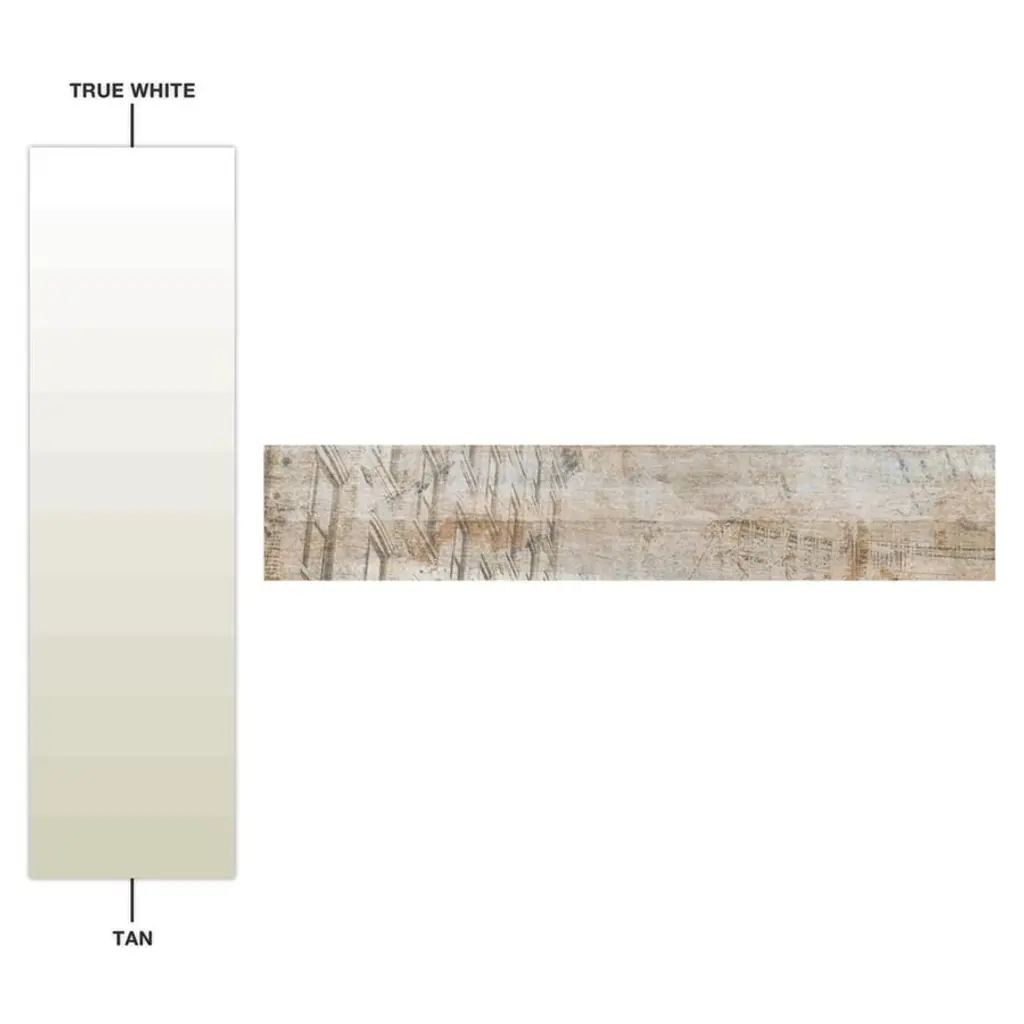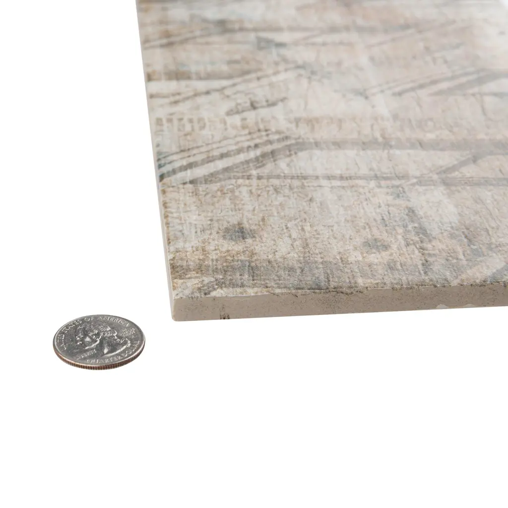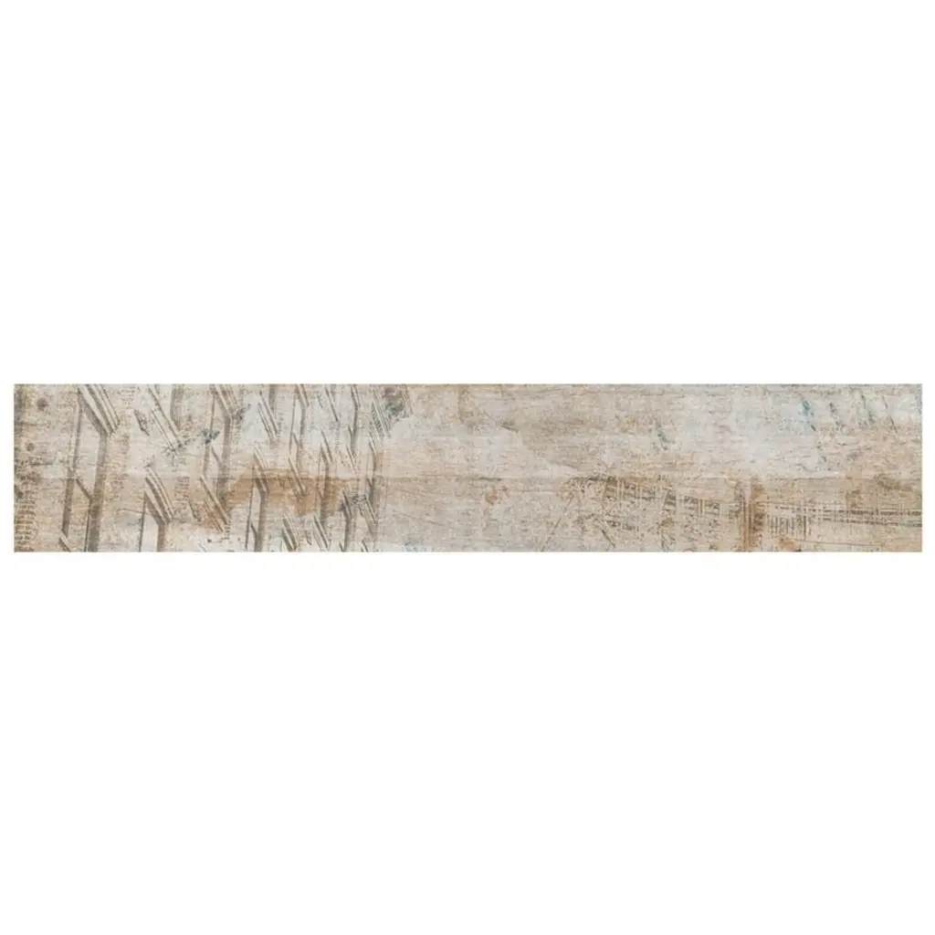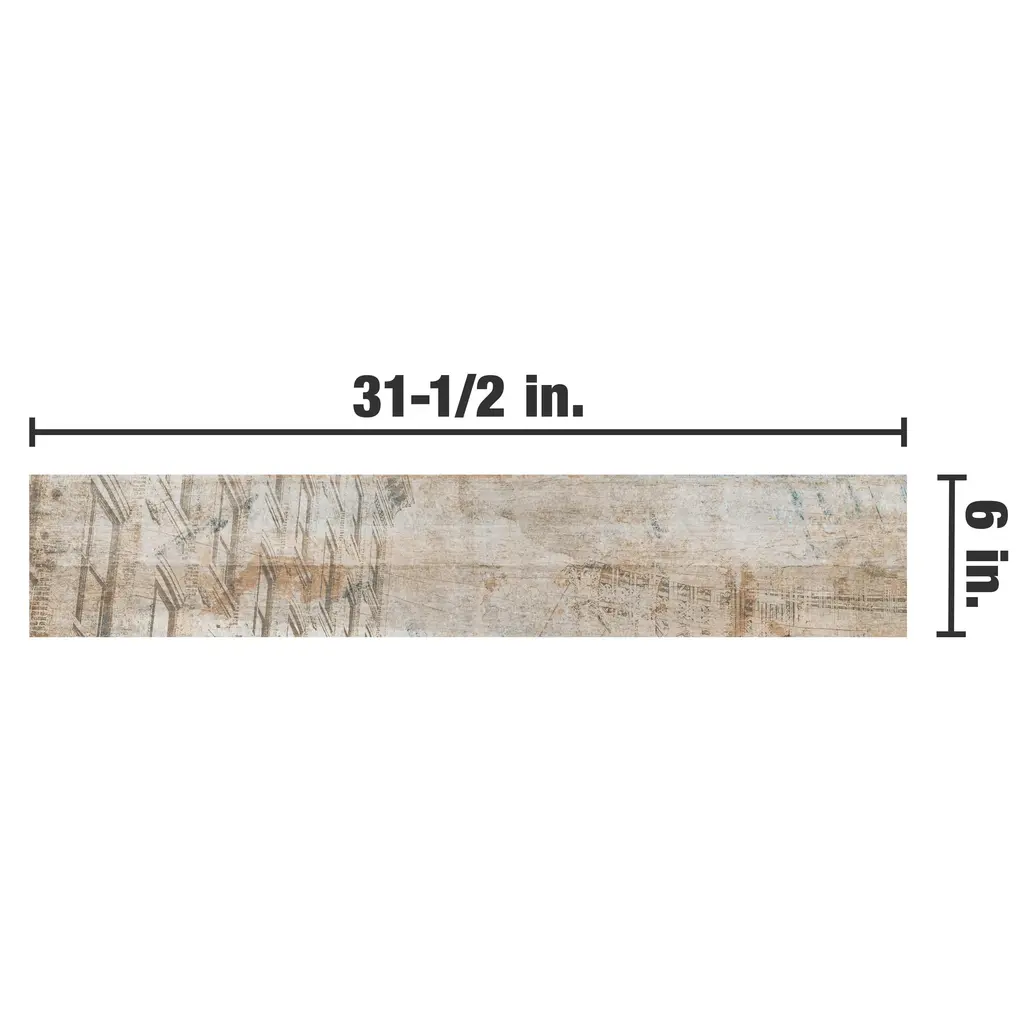 Crafted with stunning authenticity, our Cava Deco Lar Porcelain Floor and Wall Tile features shades of distressed woods and realistic grains that creates a distinctive and artistic wood-like appearance. This wood-look plank tile features stunningly realistic woodgrains, striations and distressed tire-like pattern variations in beige, brown and blue tones reminiscent of worn wood. To add further contrast and depth, this slightly textured tile has subtle bumps, grooves and signs of distress that echo the texture and look of real wood. Its impervious, frost-resistant, and durable features make this an ideal choice for indoor and outdoor commercial and residential installations including kitchens, bathrooms, backsplashes, showers, hallways, entryways, and patios. Tile is the better choice for your space. This tile is made from natural ingredients, making it a healthy choice as it is free from allergens, VOCs, formaldehyde, and PVC.60.75 square feet, 45 pieces per pallet. Pallet weight is 311.2 lbs.Grade 1, first-quality porcelain tile for floor and wall use6 in width x 31.5 in length x 0.39 in thickGlazed, slightly textured finish with a low sheen and substantial variation in tonePEI Rating IV has high resistance to abrasion and is suitable for heavy-duty residential and commercial kitchens, hotels, exhibition and sales rooms with some dirt conditionsImpervious tiles have a water absorption of less than 0.5% for indoor and outdoor use and is frost resistantNo COF value available for this product - please refer to the PEI and DCOF ratings for product durability and resistanceCompletely frost resistant for indoor or outdoor applications; use a latex-modified thinset for acceptable bond strengthCommercial and residential usePlease note: A sample of this product may be a partial piece cut from the full size tile in order to provide an affordable and convenient way for customers to judge the quality and finish of this item. Samples are not returnable.