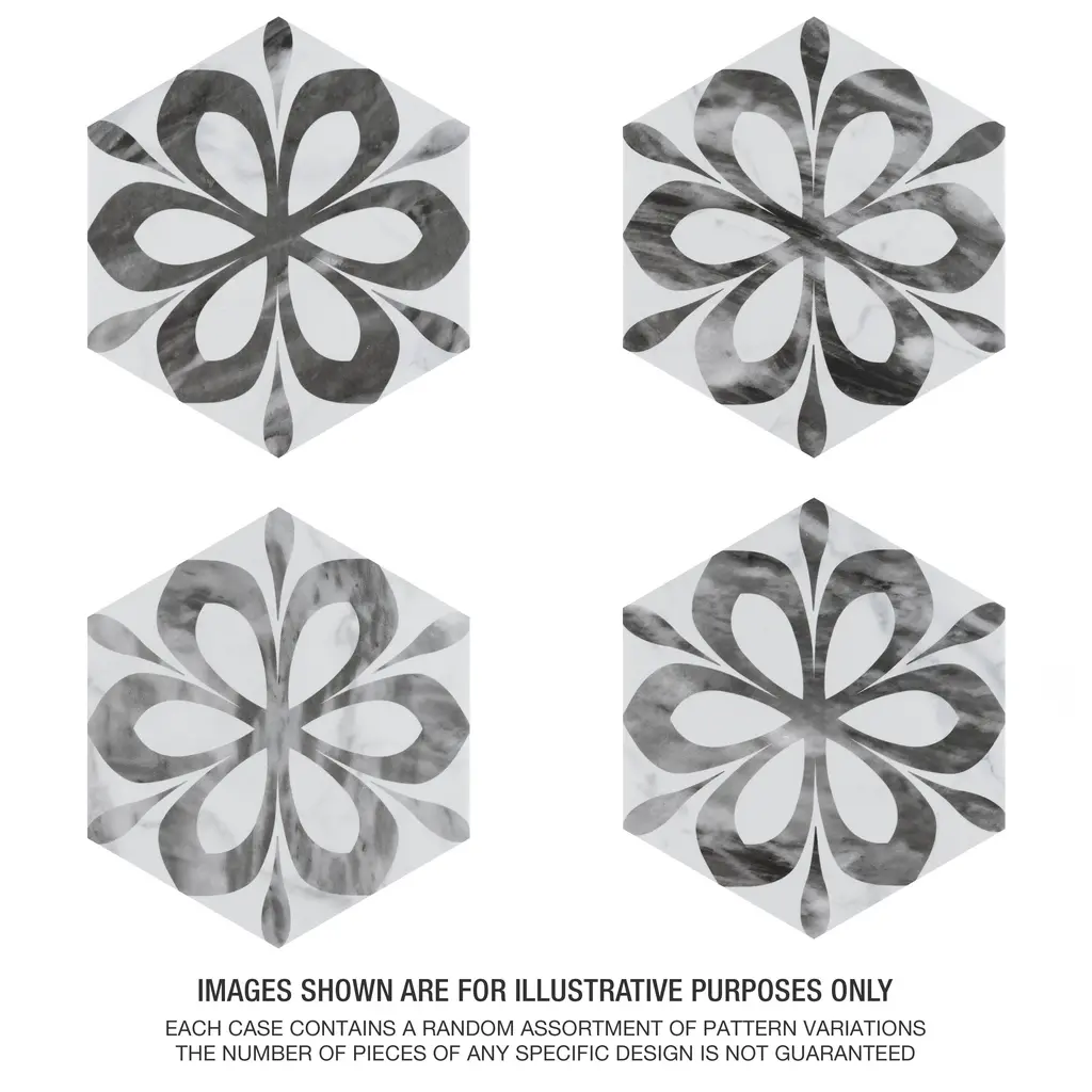 Merola Tile Classico Bardiglio Hex Daisy 7" X 8" Porcelain Floor And Wall Tile - Case (25 Tiles)