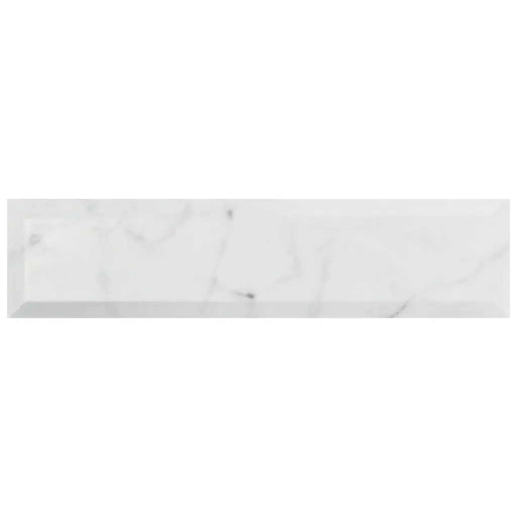 Emulating the timeless beauty of Carrara marble, our Classico Carrara Matte Metro Ceramic Wall Tile captures stunning artistry dating back to Ancient Rome. Set on a matte white glaze, this marbleized ceramic tile offers an everlasting look to accent your wall installation. Light grey veining striations sporadically flow throughout, adding authenticity to your installation. With an elongated subway format and beveled surface, this tile is perfect for creating a sophisticated feel for any setting. There is variation in the veining patterns found throughout each tile. Pair this tile with other Classico Carrara products to complete your own elegant installation. Tile is the better choice for your space. This tile is made from natural ingredients, making it a healthy choice as it is free from allergens, VOCs, formaldehyde and PVC. 11.44 square feet, 44 pieces per case. Case weight is 31.04 lbs. Grade 1, first-quality ceramic tile for wall use 3 in. width x 12 in. length x 0.3 in. thick Glazed, smooth finish with a medium sheen and slight variation in tone PEI Rating 0 is suitable for wall use only Non-Vitreous tiles have water absorption of more than 7% for indoor use DCOF value is not available for this product. Please reference the PEI and MOHS rating for installation. Not frost resistant Please note: A sample of this product may be a partial piece cut from the full size tile in order to provide an affordable and convenient way for customers to judge the quality and finish of this item. Samples are not returnable.