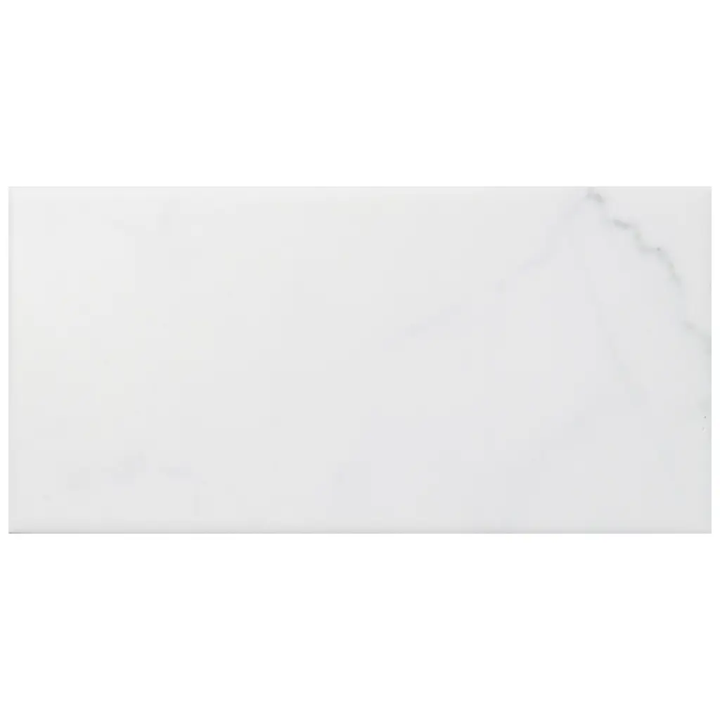 Emulating the timeless beauty of Carrara marble, our Classico Carrara Matte Ceramic Wall Tile captures stunning artistry dating back to Ancient Rome. Set on a matte white glaze, this marbleized ceramic tile offers an everlasting look to accent your wall installation. Light grey veining striations sporadically flow throughout, adding authenticity to your installation. With a traditional subway format and smooth, even surface, this tile is perfect for creating a sophisticated feel for any setting. There is variation in the veining patterns found throughout each tile. Pair this tile with other Classico Carrara products to complete your own elegant installation. Tile is the better choice for your space. This tile is made from natural ingredients, making it a healthy choice as it is free from allergens, VOCs, formaldehyde and PVC. 5.72 square feet, 44 pieces per case. Case weight is 15.84 lbs. Grade 1, first-quality ceramic tile for wall use 3 in. width x 6 in. length x 0.34 in. thick Glazed, smooth finish with a medium sheen and slight variation in tone PEI Rating 0 is suitable for wall use only Non-Vitreous tiles have water absorption of more than 7% for indoor use DCOF value is not available for this product. Please reference the PEI and MOHS rating for installation. Not frost resistant Please note: A sample of this product may be a partial piece cut from the full size tile in order to provide an affordable and convenient way for customers to judge the quality and finish of this item. Samples are not returnable.