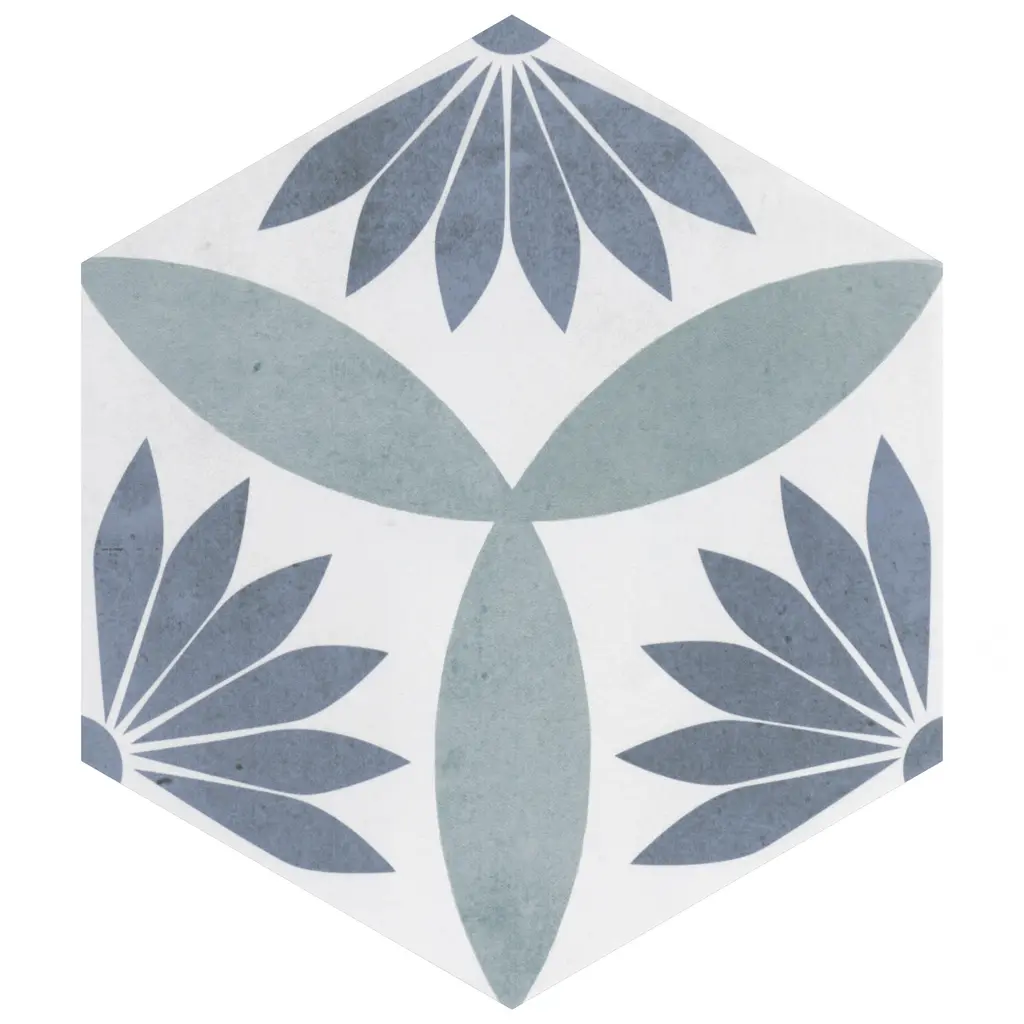 Merola Tile Coco Hex Camellia Blue 7" X 8" Porcelain Floor And Wall Tile - Case (25 Tiles)
