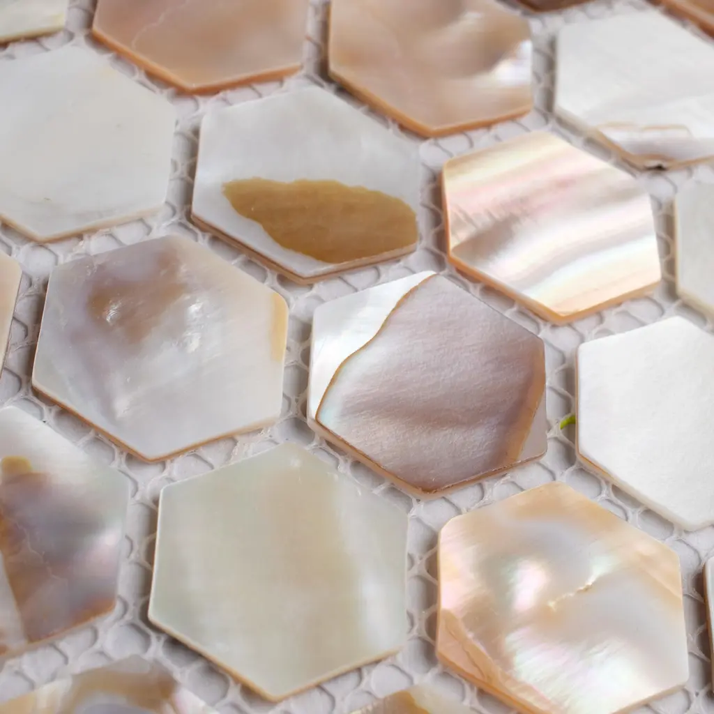 Offering a mosaic look, our Conchella Hex Natural Natural Shell Wall Tile features a smooth, glossy finish, providing decorative appeal that adapts to a variety of stylistic contexts. With its impervious, frost-resistant features, this mosaic is an ideal selection for both indoor and outdoor commercial and residential installations, including kitchens, bathrooms, backsplashes, showers, hallways and fireplace facades. This tile is a perfect choice on its own or paired with other products in the Conchella Collection. Tile is the better choice for your space! 0.95 square foot per piece, each piece sold individually. Piece weight equals 0.81 lbs. Grade 1, first-quality natural shell tile for wall use 11.5 in. width x 11.63 in. length x 0.08 in. thick mesh-mounted mosaic Unglazed, smooth finish with a high sheen and moderate variation in tone PEI Rating 0 is suitable for wall use only Impervious tiles have a water absorption of less than 0.5% for indoor and outdoor use and are frost resistant DCOF value is not available for this product. Please reference the PEI and MOHS rating for installation. Completely frost resistant for indoor or outdoor applications; use a latex-modified thinset for acceptable bond strength ImportedPlease note: A sample of this product may be a partial piece cut from the full size tile in order to provide an affordable and convenient way for customers to judge the quality and finish of this item. Samples are not returnable.