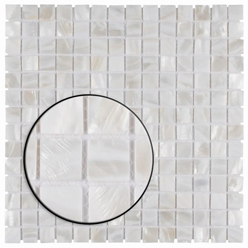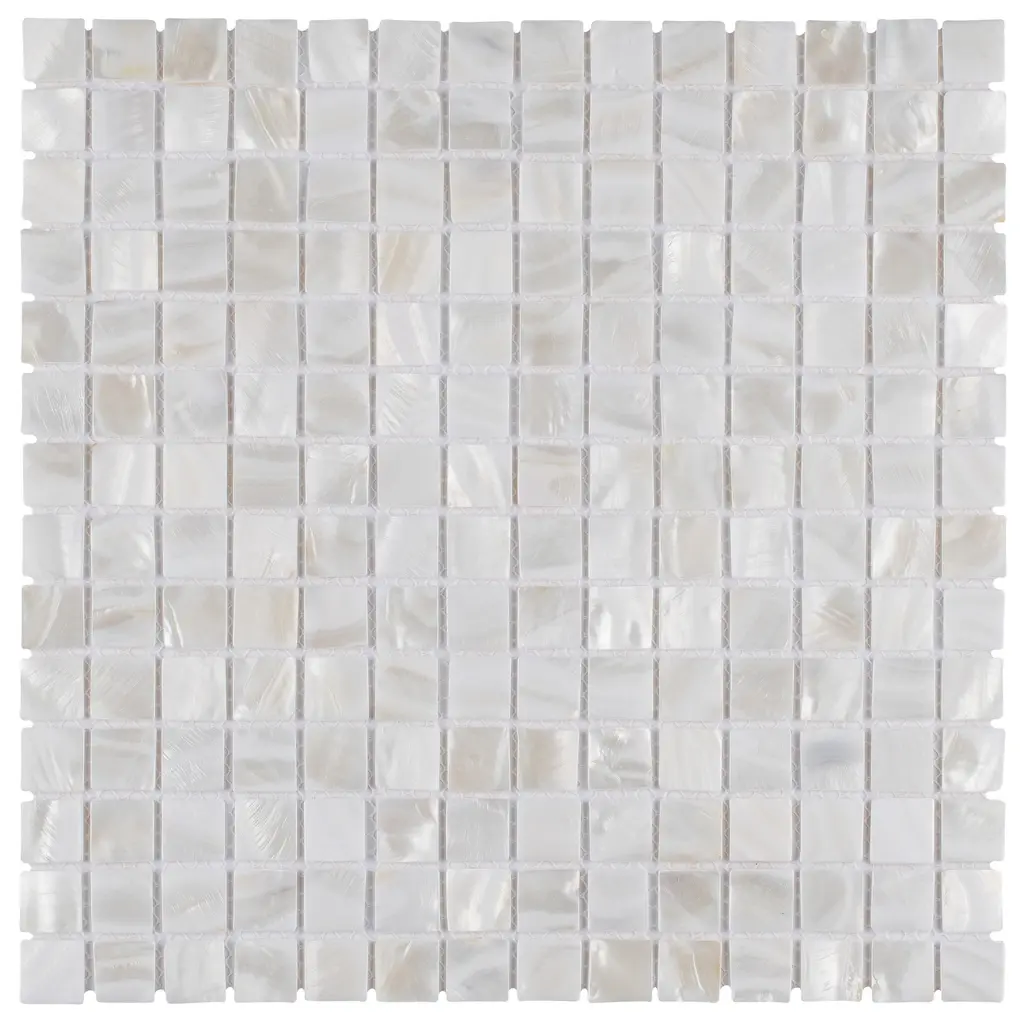 Offering a mosaic look, our Conchella Square White Natural Shell Wall Tile features a smooth, glossy finish, providing decorative appeal that adapts to a variety of stylistic contexts. With its impervious, frost-resistant features, this mosaic is an ideal selection for both indoor and outdoor commercial and residential installations, including kitchens, bathrooms, backsplashes, showers, hallways and fireplace facades. This tile is a perfect choice on its own or paired with other products in the Conchella Collection. Tile is the better choice for your space! 1.02 square feet per piece, each piece sold individually. Piece weight equals 0.85 lbs. Grade 1, first-quality natural shell tile for wall use 12 in. width x 12 in. length x 0.09 in. thick mesh-mounted mosaic Unglazed, smooth finish with a high sheen and moderate variation in tone PEI Rating 0 is suitable for wall use only Impervious tiles have a water absorption of less than 0.5% for indoor and outdoor use and are frost resistant DCOF value is not available for this product. Please reference the PEI and MOHS rating for installation. Completely frost resistant for indoor or outdoor applications; use a latex-modified thinset for acceptable bond strength ImportedPlease note: A sample of this product may be a partial piece cut from the full size tile in order to provide an affordable and convenient way for customers to judge the quality and finish of this item. Samples are not returnable.