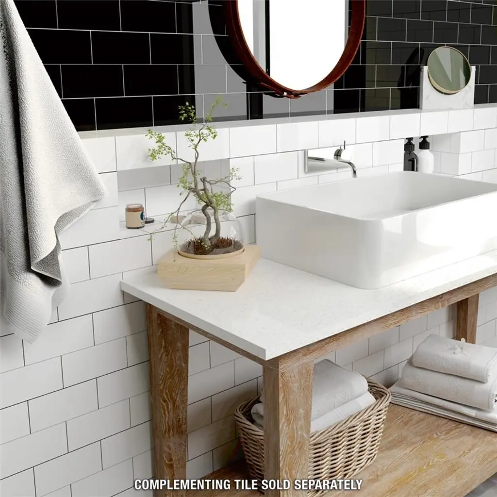Featuring a simplistic nature, our Crown Heights Glossy Black Ceramic Wall Tile has the ability to elevate spaces through its classic, clean design. With a smooth, glossy surface, this black subway tile offers subtle beauty. Given the versatility of its format, this subway tile is unique yet simplistic enough to integrate into any design, ranging from traditional style renovations to modern home projects. Intended for indoor wall use, this tile is an ideal choice for backsplashes, bathrooms, showers and kitchens. This tile is a perfect choice on its own or paired with other products in the Crown Heights Collection. Tile is the better choice for your space. This tile is made from natural ingredients, making it a healthy choice as it is free from allergens, VOCs, formaldehyde and PVC. Important: Please note that we strongly recommend the use of unsanded grout. 5.72 square feet, 44 pieces per case. Case weight is 13.2 lbs. Grade 1, first-quality ceramic tile for wall use 3 in. width x 6 in. length x 0.27 in. thick Glazed, smooth finish with a high sheen and uniform appearance in tone PEI Rating 0 is suitable for wall use only Non-Vitreous tiles have water absorption of more than 7% for indoor use DCOF value is not available for this product. Please reference the PEI and MOHS rating for installation. Not frost resistant Please note: A sample of this product may be a partial piece cut from the full size tile in order to provide an affordable and convenient way for customers to judge the quality and finish of this item. Samples are not returnable.