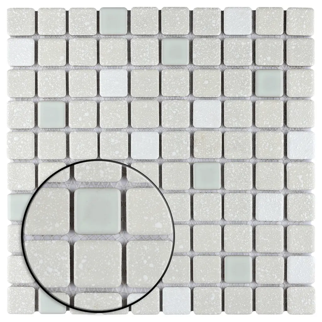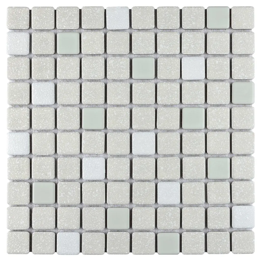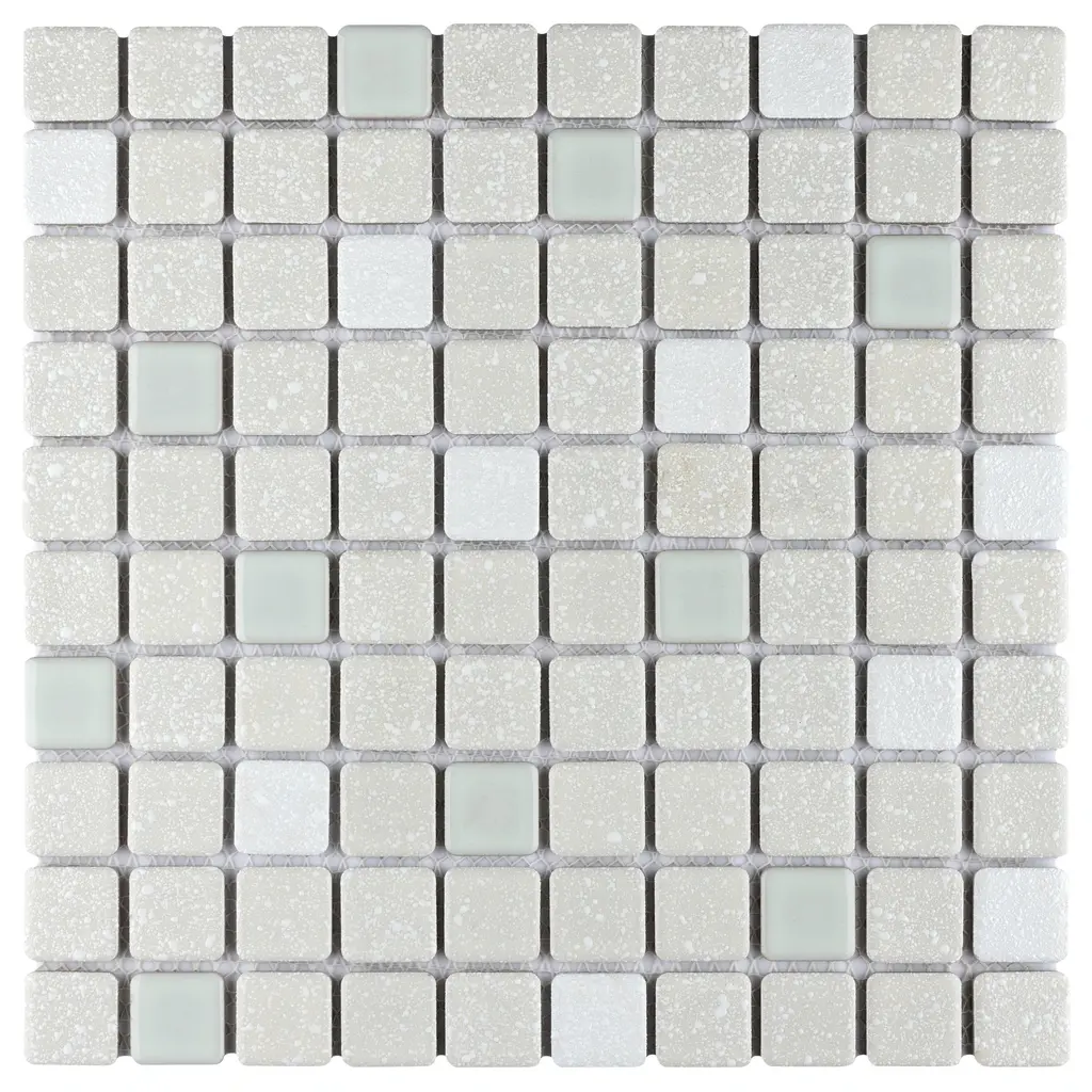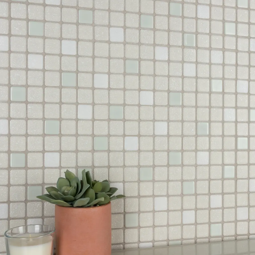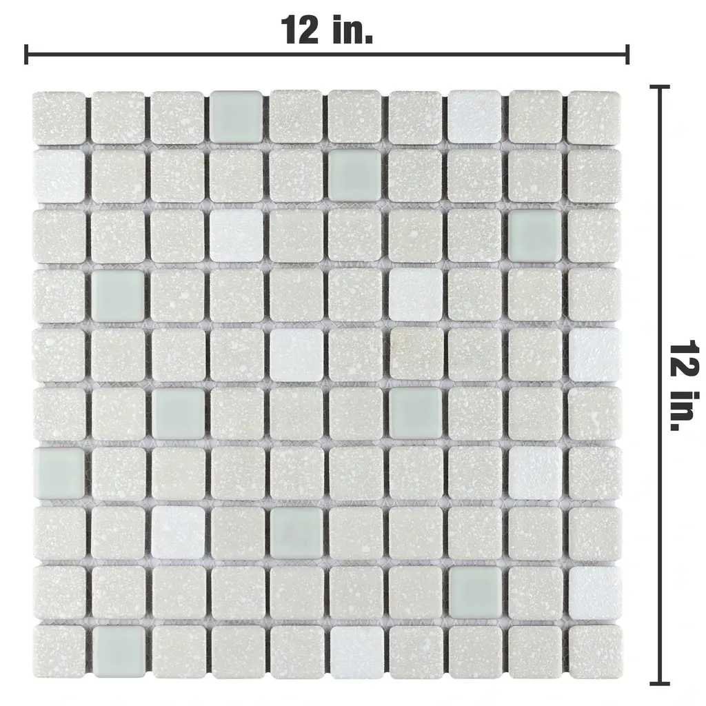 Our Crystalline Square Pistachio Porcelain Floor and Wall Mosaic Tile is an innovative twist on the classic mosaic. Featuring a mottled glazed surface, this product is comprised of square shaped chips with a muted pistachio green and white color palette. This slightly textured mosaic creates a classic and versatile look with slightly rounded squares arranged on an interlocking mesh to create a unique and seamless installation. This geometric porcelain mosaic is unique yet simplistic enough to integrate into any design, ranging from traditional style renovations to modern home projects. Its impervious, frost-resistant and ADA compliant features make this an ideal tile for both commercial and residential indoor and outdoor use, including backsplashes, bathrooms, showers, kitchens, patios, and entryways. Tile is the better choice for your space. This tile is made from natural ingredients, making it a healthy choice as it is free from allergens, VOCs, formaldehyde and PVC. 10.2 square feet, 10 pieces per case. Case weight is 18.3 lbs. Grade 1, first-quality porcelain tile for floor and wall use 12 in. width x 12 in. length x 0.19 in. thick mesh-mounted mosaic Glazed, mixed texture with a mixed finish and slight variation in tone PEI Rating IV has high resistance to abrasion and is suitable for heavy-duty residential and commercial kitchens, hotels, exhibition and sales rooms with some dirt conditions Impervious tiles have a water absorption of less than 0.5% for indoor and outdoor use and are frost resistant This tile has a COF wet rating greater than 0.60 to 0.79 which is considered skid resistant for indoor and outdoor use. This tile is ADA approved for slip resistance. Completely frost resistant for indoor or outdoor applications; use a latex-modified thinset for acceptable bond strength Please note: A sample of this product may be a partial piece cut from the full size tile in order to provide an affordable and convenient way for customers to judge the quality and finish of this item. Samples are not returnable.