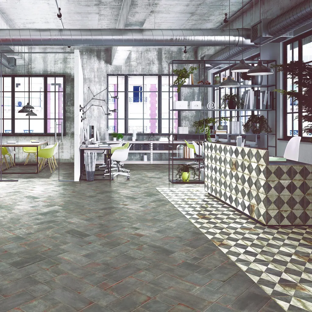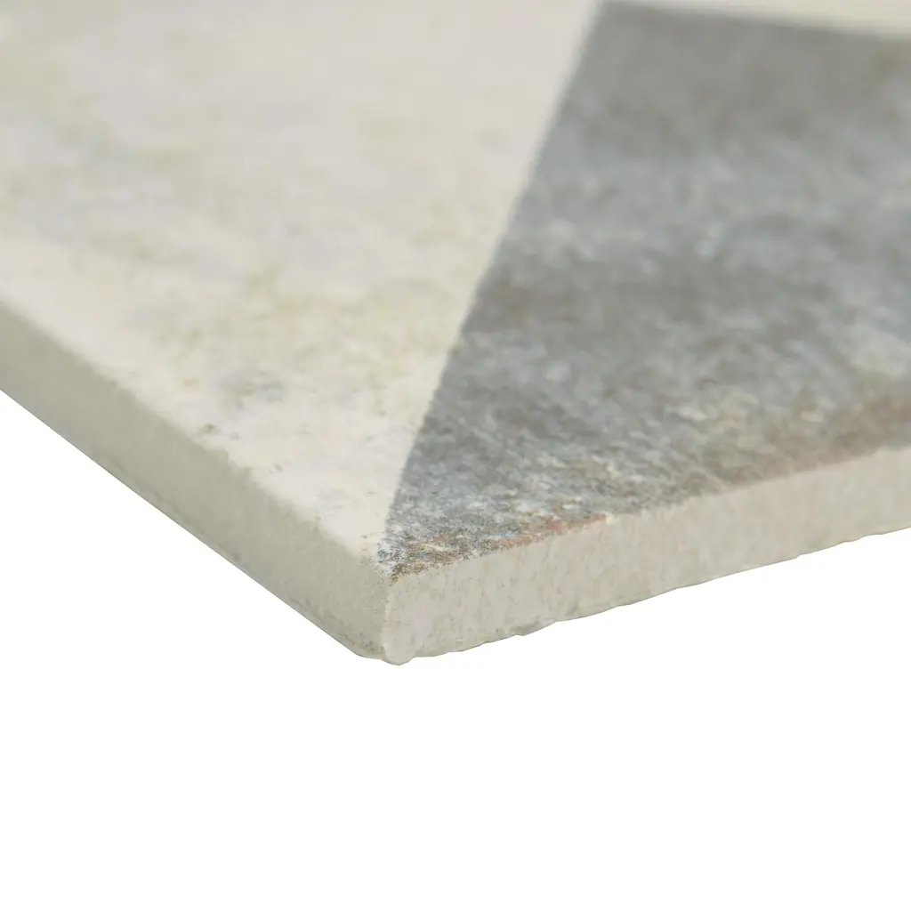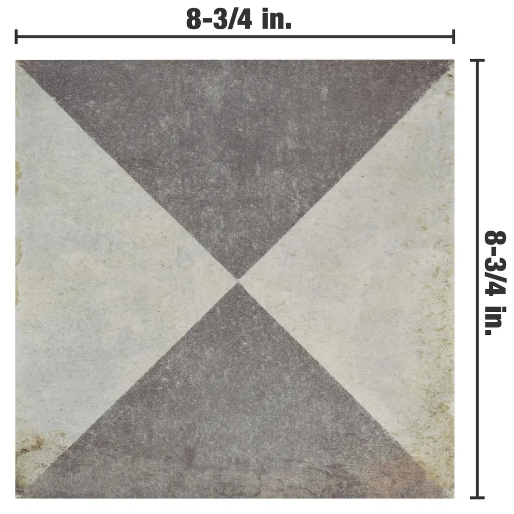 Our D’Anticatto Decor Triangoli Porcelain Floor and Wall Tile radiates rustic charm. Mimicking a worn cement appearance, this porcelain tile is a subtle statement piece created by geometric motifs in faded charcoal grey set on a textured light beige base glaze. With rust colored accents and realistic imitations of scuffs and spots, this encaustic inspired tile evokes a loved, worn and century-old appearance. Available in twenty-five print variations that are randomly scattered throughout each case, the variation throughout each tile mimics an authentic aged appearance. Its impervious, frost-resistant and durable features make this tile and ideal choice for both indoor and outdoor residential installations including, backsplashes, kitchens, bathrooms, showers, entryways and patios. This tile is a perfect choice on its own or paired with other products in the D’Anticatto Collection. Tile is the better choice for your space. This tile is made from natural ingredients, making it a healthy choice as it is free from allergens, VOCs, formaldehyde and PVC. 11.0 square feet, 20 pieces per case. Case weight is 45.88 lbs. Grade 1, first-quality porcelain tile for floor and wall use 8.75 in. width x 8.75 in. length x 0.38 in. thick Glazed, medium textured finish with a low sheen and moderate variation in tone PEI Rating III is suitable for medium-duty residential floors including kitchens, halls, corridors, balconies, terraces and areas used more often with normal footwear and small amounts of dirt Impervious tiles have a water absorption of less than 0.5% for indoor and outdoor use and are frost resistant This tile is ADA approved for slip resistance with a DCOF value of 0.42 or higher. Completely frost resistant for indoor or outdoor applications; use a latex-modified thinset for acceptable bond strength Please note: A sample of this product may be a partial piece cut from the full size tile in order to provide an affordable and convenient way for customers to judge the quality and finish of this item. Samples are not returnable.