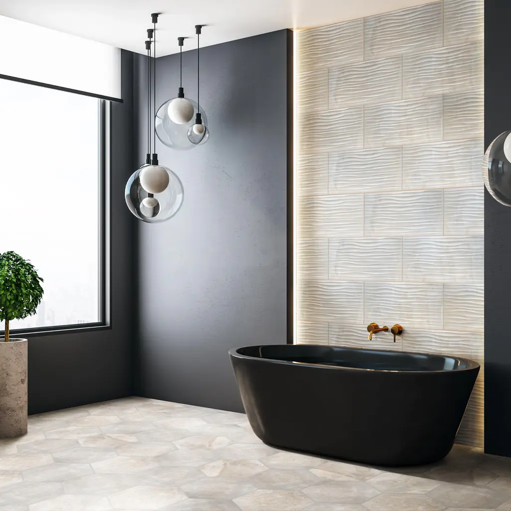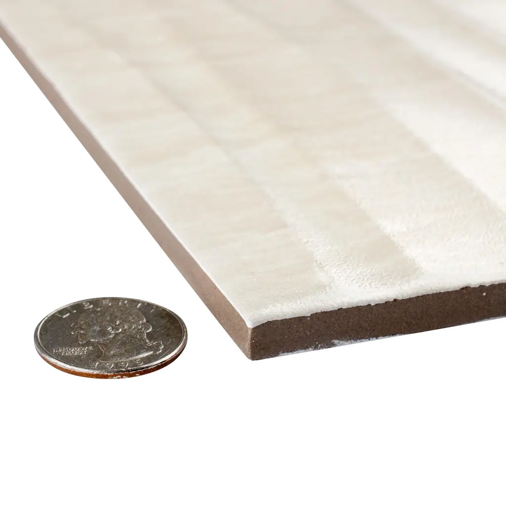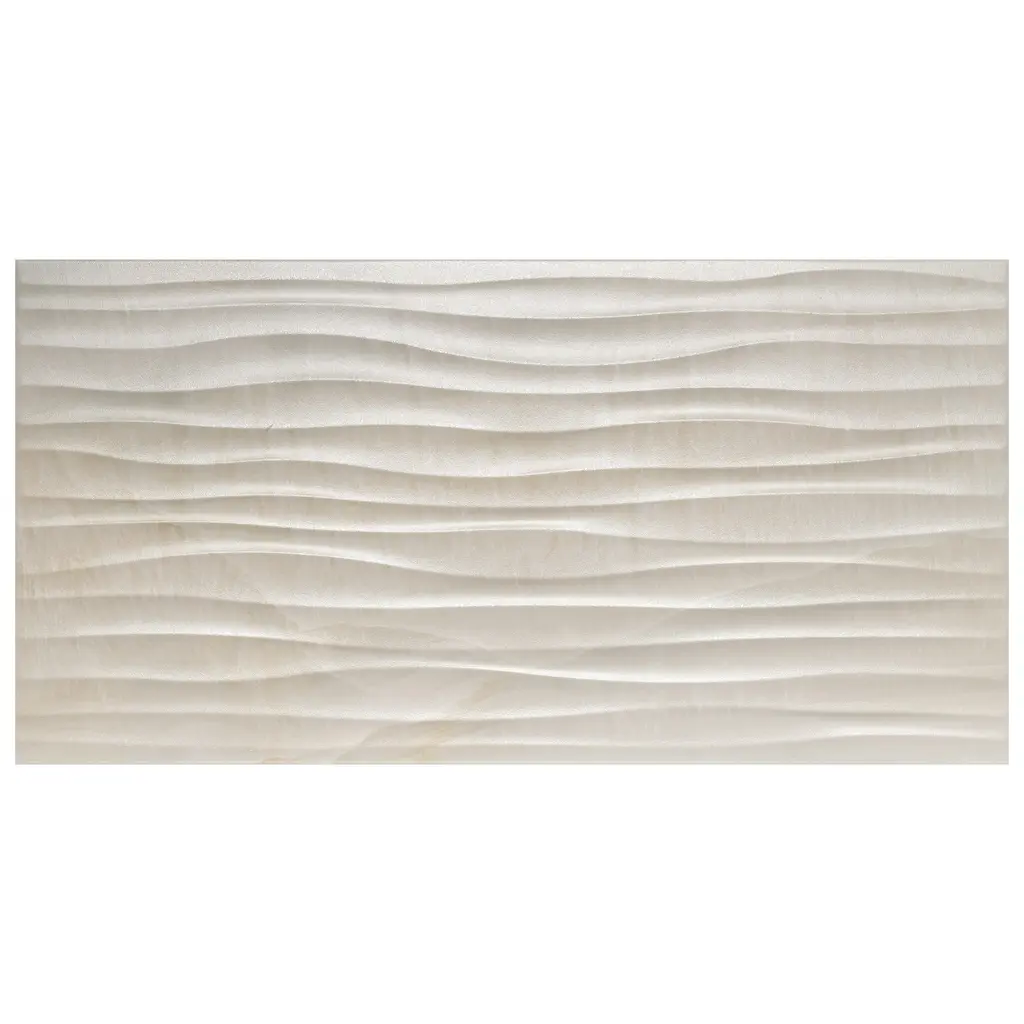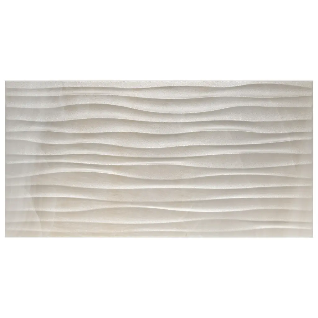 Featuring a simple yet captivating design, our Deco Dubai Pearl Porcelain Wall Tile introduces eye-catching beauty that provides character and personality wherever it is installed. With a smooth three-dimensional surface and wavy patterns that run laterally, this enlarged porcelain plank tile creates a dynamic and soothing aesthetic that has the ability to enhance any space. Pale cream and beige tones with subtle striations further infuses this tile with elegance and natural charm. Its impervious and frost-resistant features make this an ideal choice for both indoor and outdoor wall installations including, kitchens backsplashes, shower walls and fireplace facades. Tile is the better choice for your space. This tile is made from natural ingredients, making it a healthy choice as it is free from allergens, VOCs, formaldehyde and PVC. 10.7 square feet, 5 pieces per case. Case weight is 45.79 lbs. Grade 1, first-quality porcelain tile for wall use 12.5 in. width x 24.5 in. length x 0.31 in. thick Glazed, smooth finish with a medium sheen and slight variation in tone PEI Rating 0 is suitable for wall use only Impervious tiles have a water absorption of less than 0.5% for indoor and outdoor use and are frost resistant DCOF value is not available for this product. Please reference the PEI and MOHS rating for installation. Completely frost resistant for indoor or outdoor applications; use a latex-modified thinset for acceptable bond strength Please note: A sample of this product may be a partial piece cut from the full size tile in order to provide an affordable and convenient way for customers to judge the quality and finish of this item. Samples are not returnable.