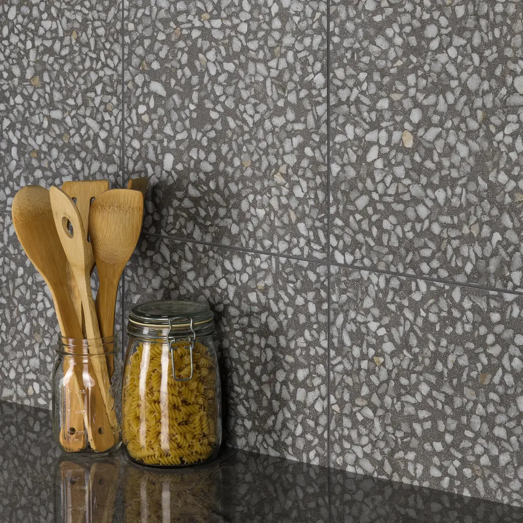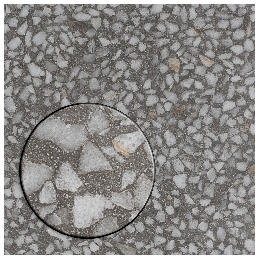 Mimicking the appearance of flattened stones set in concrete, our Farnese Amalfi Grafito Porcelain Floor and Wall Tile offers a natural look for virtually any space. With a grey background reminiscent of a stony river bottom, this tile has a smooth but slip-resistant surface. Varying stones are printed into the surface, offering a level surface for walking on. This large porcelain slab is rectified, or ground down for precise sizing every time. Great for interior and exterior use, this tile can be used in showers, kitchens, and on patios or fireplaces. Tile is the better choice for your space. This tile is made from natural ingredients, making it a healthy choice as it is free from allergens, VOCs, formaldehyde and PVC. 10.34 square feet, 11 pieces per case. Case weight is 39.25 lbs. Grade 1, first-quality porcelain tile for floor and wall use 11.5 in. width x 11.5 in. length x 0.33 in. thick Glazed, slightly textured finish with a low sheen and moderate variation in tone PEI Rating III is suitable for medium-duty residential floors including kitchens, halls, corridors, balconies, terraces and areas used more often with normal footwear and small amounts of dirt Impervious tiles have a water absorption of less than 0.5% for indoor and outdoor use and are frost resistant This tile is ADA approved for slip resistance with a DCOF value of 0.42 or higher. Completely frost resistant for indoor or outdoor applications; use a latex-modified thinset for acceptable bond strength Please note: A sample of this product may be a partial piece cut from the full size tile in order to provide an affordable and convenient way for customers to judge the quality and finish of this item. Samples are not returnable.