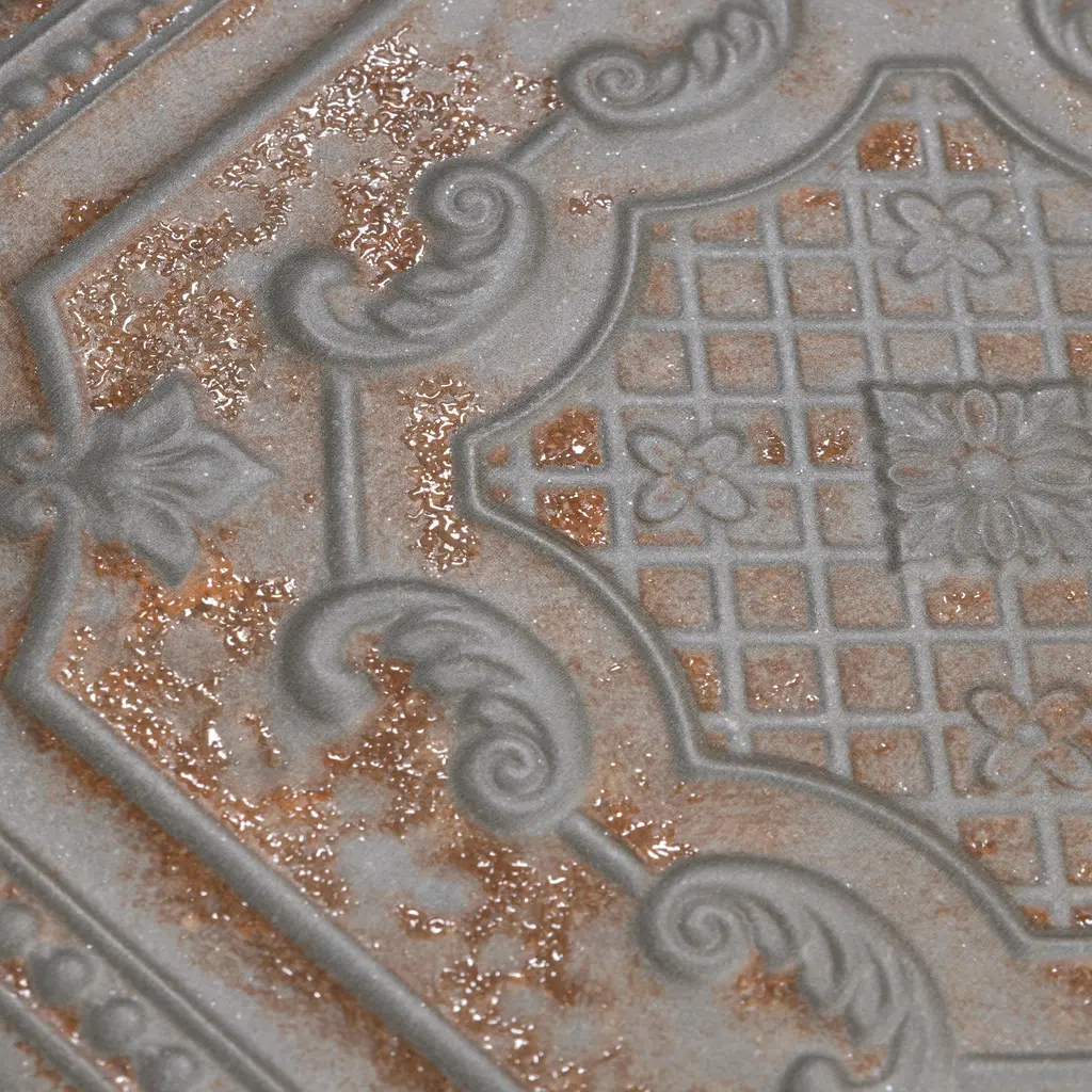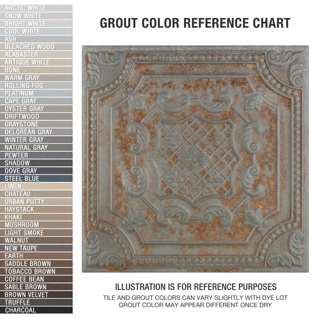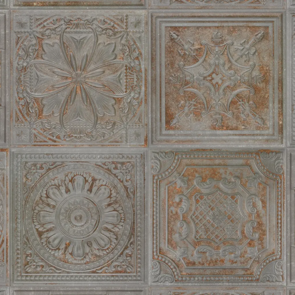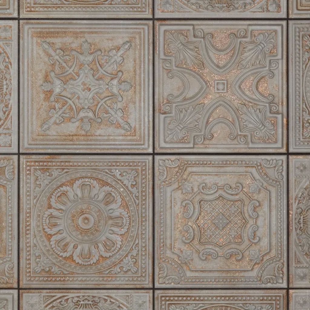 Reminiscent of antique tin ceiling tiles, our Fitz Charcoal Ceramic Wall Tile offers authentic vintage appeal. This decorative square tile features embossed old-world motifs in dark grey and rust color tones with splashes of glossy glazing. With a textured, mixed finish surface, this ceramic tile can blend into virtually any design theme, ranging from contemporary projects to traditional installation. Available in 40 print variations that are randomly scattered throughout each case, the variation throughout each tile mimics an authentic aged appearance. Its glazed feature makes it an ideal choice for indoor wall installations including kitchen backsplashes, bathroom showers, and fireplace facades. Tile is the better choice for your space. This tile is made from natural ingredients, making it a healthy choice as it is free from allergens, VOCs, formaldehyde, and PVC. 9.9 square feet, 22 pieces per case. Case weight is 23.1 lbs. Grade 1, first-quality ceramic tile for wall use 8 in. width x 8 in. length x 0.27 in. thick Unglazed, medium textured finish with a mixed finish and moderate variation in tone PEI Rating 0 is suitable for wall use only Non-Vitreous tiles have water absorption of more than 7% for indoor use DCOF value is not available for this product. Please reference the PEI and MOHS rating for installation. Not frost resistant Please note: A sample of this product may be a partial piece cut from the full size tile in order to provide an affordable and convenient way for customers to judge the quality and finish of this item. Samples are not returnable.