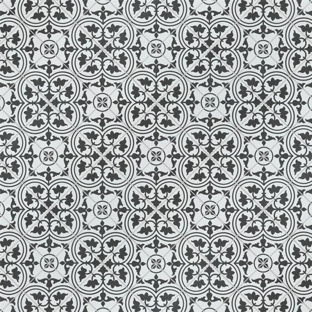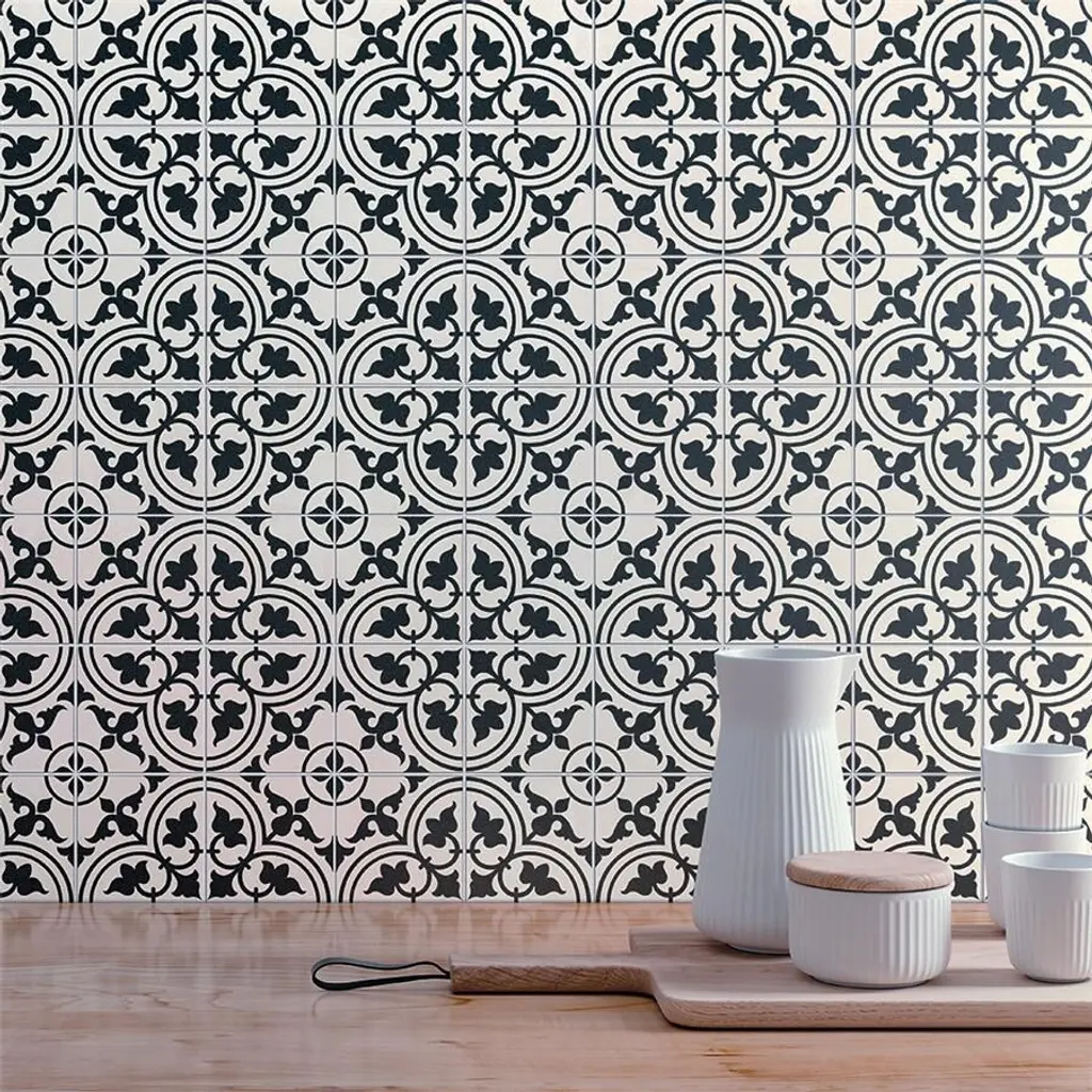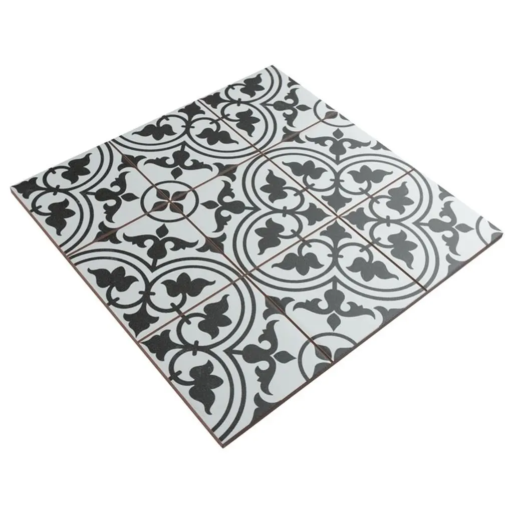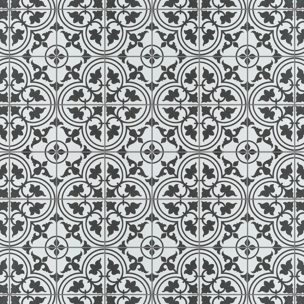 Our Harmonia Classic White Ceramic Floor and Wall Tile creates the look of a stunning leading-edge mosaic-like design with the harmonious, easy installation of a square tile. Inspired by our best-selling Arte White, this ceramic encaustic-inspired tile similarly features floral old-world patterns in rich charcoal black that frames dueling arcs in the center, offering subtle contrast and dimension to the decoration. Set on the highest-quality snow white base glaze, the contrasting design features a weathered, speckled look, replicating the beauty of its cement muse. The floral, geometric pattern blends into virtually any design theme, making this an exceptional product for modern installations and historic renovations. Save time and labor spent arranging mosaic sheets and instead install these durable ceramic slabs, which have squares separated by scored grout lines. The scored grout lines can be grouted with the color of your choice to further customize your installation. Its glazed and durable features make it an ideal choice for both commercial and residential indoor installations including kitchens, bathrooms, backsplashes, showers, and entryways. Tile is the better choice for your space. This tile is made from natural ingredients, making it a healthy choice as it is free from allergens, VOCs, formaldehyde and PVC. 12.0 square feet, 10 pieces per case. Case weight is 51.1 lbs. Grade 1, first-quality ceramic tile for floor and wall use 13 in. width x 13 in. length x 0.37 in. thick Glazed, slightly textured finish with a low sheen and uniform appearance in tone PEI Rating IV has high resistance to abrasion and is suitable for heavy-duty residential and commercial kitchens, hotels, exhibition and sales rooms with some dirt conditions Semi-Vitreous tiles have water absorption of more than 3% but less than 7% for indoor use This tile is ADA approved for slip resistance with a DCOF value of 0.42 or higher. Not frost resistant Please note: A sample of this product may be a partial piece cut from the full size tile in order to provide an affordable and convenient way for customers to judge the quality and finish of this item. Samples are not returnable.