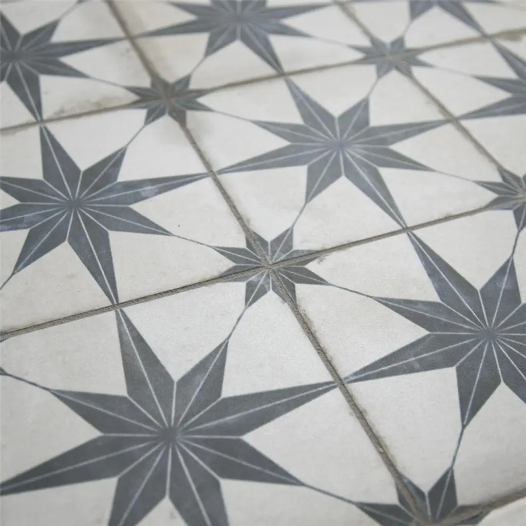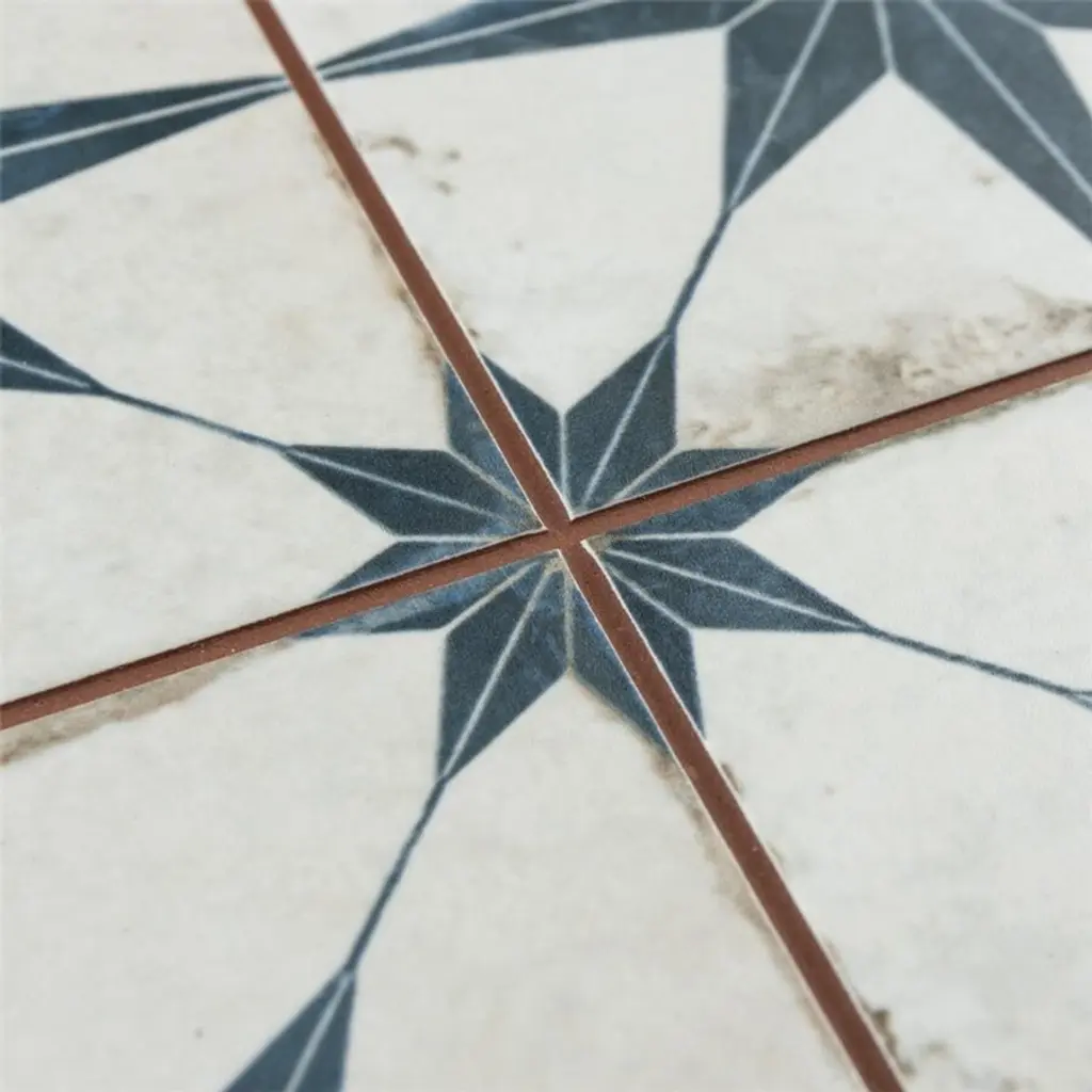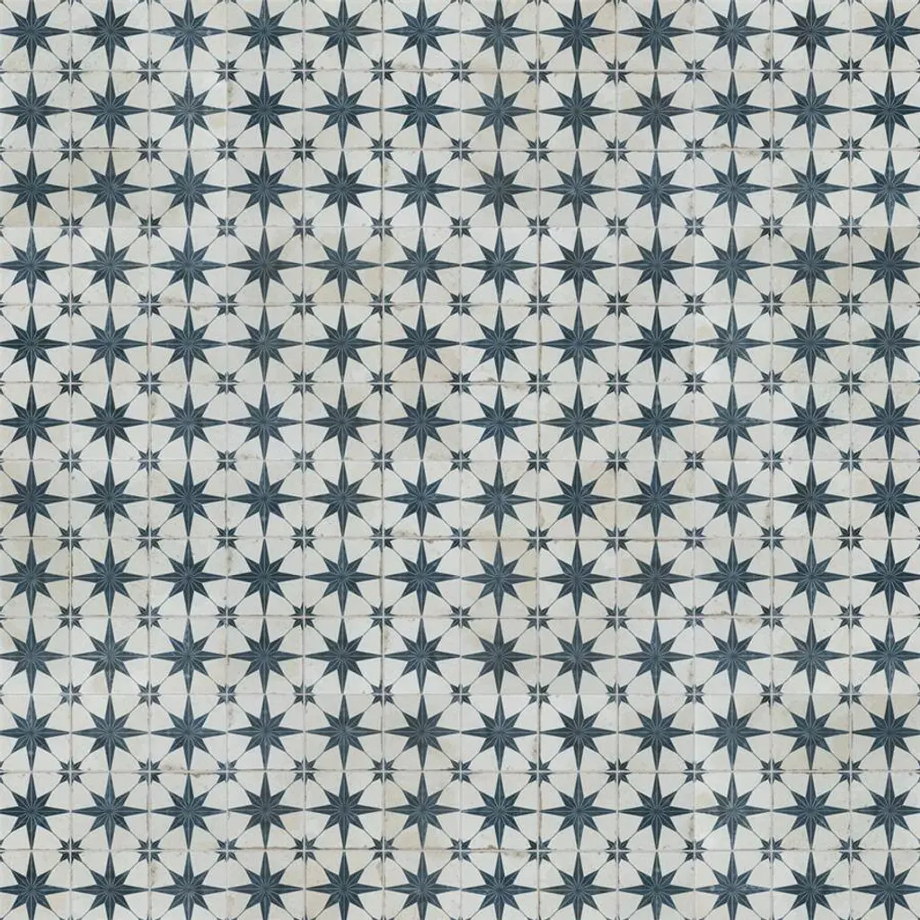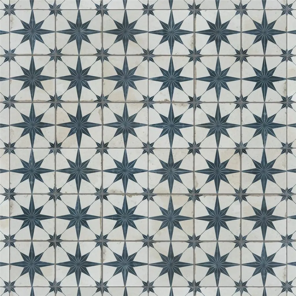 Our Harmonia Kings Star Blue Ceramic Floor and Wall Tile creates the look of a stunning leading-edge mosaic-like design with the harmonious, easy installation of a square tile. Inspired by our best-selling Kings Star Blue, this ceramic encaustic-inspired tile similarly features a unique, low-sheen glaze in faded antique white tones with centered denim blue star patterns in each square. With realistic imitations and scuffs and spots that are the marks of well-loved, worn, century-old tile, this floor and wall tile is a true reflection of vintage industrial design. These scuffs and spots convince that this tile is truly aged, bringing rustic charm to any interior setting. Save time and labor spent arranging mosaic sheets and instead install these durable ceramic slabs, which have squares separated by scored grout lines. The scored grout lines can be grouted with the color of your choice to further customize your installation. Its glazed and durable features make it an ideal choice for both commercial and residential indoor installations including kitchens, bathrooms, backsplashes, showers, and entryways. Tile is the better choice for your space. This tile is made from natural ingredients, making it a healthy choice as it is free from allergens, VOCs, formaldehyde and PVC.