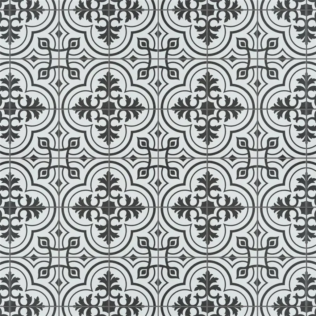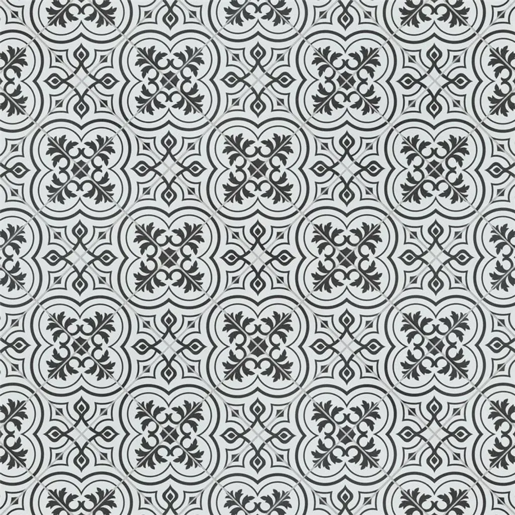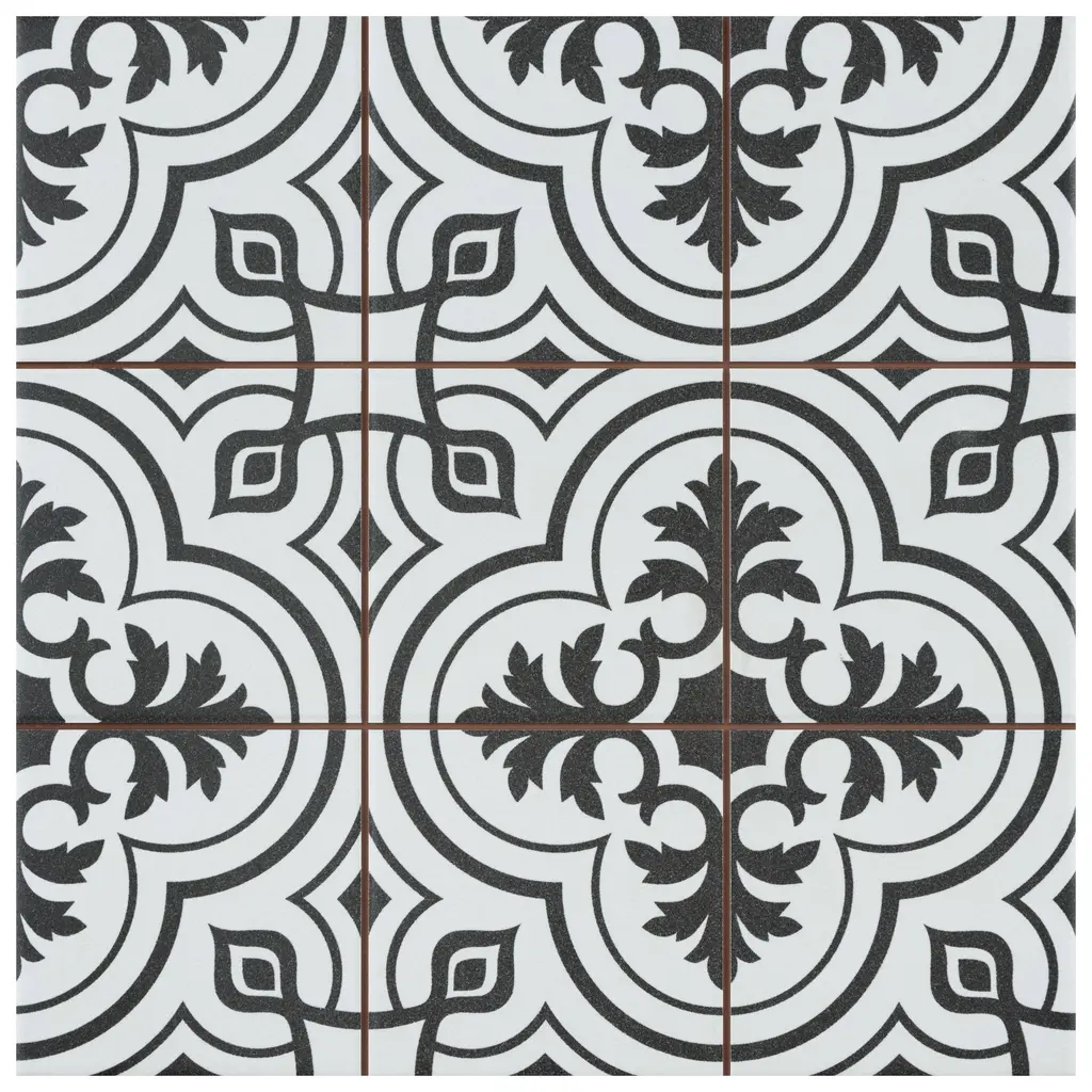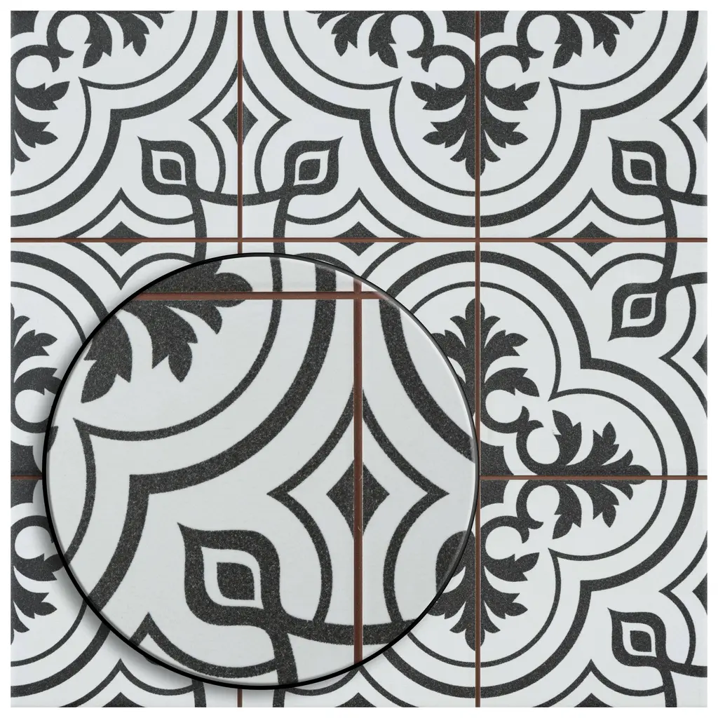 Our Harmonia Vintage White Ceramic Floor and Wall Tile creates the look of a stunning leading-edge mosaic-like design with the harmonious, easy installation of a square tile. Inspired by our best-selling Twenties Vintage, this ceramic encaustic-inspired tile similarly features floral old-world patterns in charcoal black tones that are accented by simplistic arcs. Set on a snow white base glaze, the contrasting design features a weathered, speckled look, replicating the beauty of artisan cement tiles. This visually rich product can blend into virtually any design theme, ranging from modern projects to traditional installations. Save time and labor spent arranging mosaic sheets and instead install these durable ceramic slabs, which have squares separated by scored grout lines. The scored grout lines can be grouted with the color of your choice to further customize your installation. Its glazed and durable features make it an ideal choice for both commercial and residential indoor installations including kitchens, bathrooms, backsplashes, showers, and entryways. Tile is the better choice for your space. This tile is made from natural ingredients, making it a healthy choice as it is free from allergens, VOCs, formaldehyde and PVC. 12.0 square feet, 10 pieces per case. Case weight is 51.1 lbs. Grade 1, first-quality ceramic tile for floor and wall use 13 in. width x 13 in. length x 0.37 in. thick Glazed, slightly textured finish with a low sheen and uniform appearance in tone PEI Rating IV has high resistance to abrasion and is suitable for heavy-duty residential and commercial kitchens, hotels, exhibition and sales rooms with some dirt conditions Semi-Vitreous tiles have water absorption of more than 3% but less than 7% for indoor use This tile is ADA approved for slip resistance with a DCOF value of 0.42 or higher. Not frost resistant Please note: A sample of this product may be a partial piece cut from the full size tile in order to provide an affordable and convenient way for customers to judge the quality and finish of this item. Samples are not returnable.