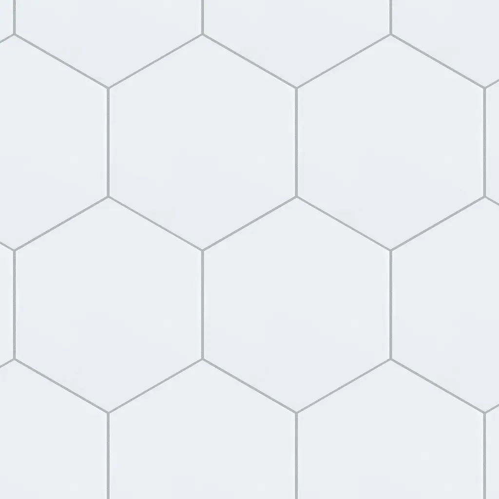 Our Hexatile Glossy Blanco Porcelain Wall Tile features a smooth, glossy finish. This crisp white hexagon shaped tile is perfect for any setting, traditional enough for historical renovations or modern enough for new construction. Its frost-resistant features make this an ideal choice for indoor and outdoor installations including, backsplashes, fireplace facades and patios. This tile may be used on its own or coordinated with other products in our Hexatile Collection for a custom look. Tile is the better choice for your space. This tile is made from natural ingredients, making it a healthy choice as it is free from allergens, VOCs, formaldehyde and PVC. 7.5 square feet, 25 pieces per case. Case weight is 28.99 lbs. Grade 1, first-quality porcelain tile for wall use 7 in. width x 8 in. length x 0.37 in. thick Glazed, smooth finish with a high sheen and uniform appearance in tone PEI Rating 0 is suitable for wall use only Impervious tiles have a water absorption of less than 0.5% for indoor and outdoor use and are frost resistant DCOF value is not available for this product. Please reference the PEI and MOHS rating for installation. Completely frost resistant for indoor or outdoor applications; use a latex-modified thinset for acceptable bond strength Please note: A sample of this product may be a partial piece cut from the full size tile in order to provide an affordable and convenient way for customers to judge the quality and finish of this item. Samples are not returnable.