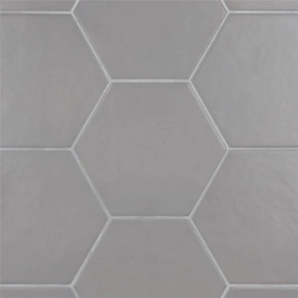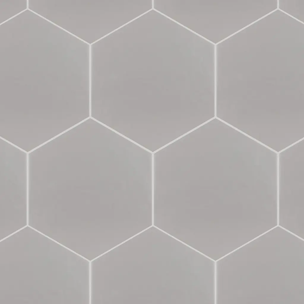 Offering a simplistic look, our Hexatile Matte Gris Porcelain Floor and Wall Tile features a slightly textured, matte finish, providing decorative appeal that adapts to a variety of stylistic contexts. With its impervious, frost-resistant features, this gray hexagon tile is an ideal selection for both indoor and outdoor residential installations, including kitchens, bathrooms, backsplashes, showers, hallways and fireplace facades. This tile is a perfect choice on its own or paired with other products in the Hexatile Collection. Tile is the better choice for your space! 7.5 square feet, 25 pieces per case. Case weight is 28.99 lbs. Grade 1, first-quality porcelain tile for floor and wall use 7 in. width x 8 in. length x 0.37 in. thick Glazed, slightly textured finish with a low sheen and uniform appearance in tone PEI Rating III is suitable for medium-duty residential floors including kitchens, halls, corridors, balconies, terraces and areas used more often with normal footwear and small amounts of dirt Impervious tiles have a water absorption of less than 0.5% for indoor and outdoor use and are frost resistant This tile is ADA approved for slip resistance with a DCOF value of 0.42 or higher. Completely frost resistant for indoor or outdoor applications; use a latex-modified thinset for acceptable bond strength Please note: A sample of this product may be a partial piece cut from the full size tile in order to provide an affordable and convenient way for customers to judge the quality and finish of this item. Samples are not returnable.
