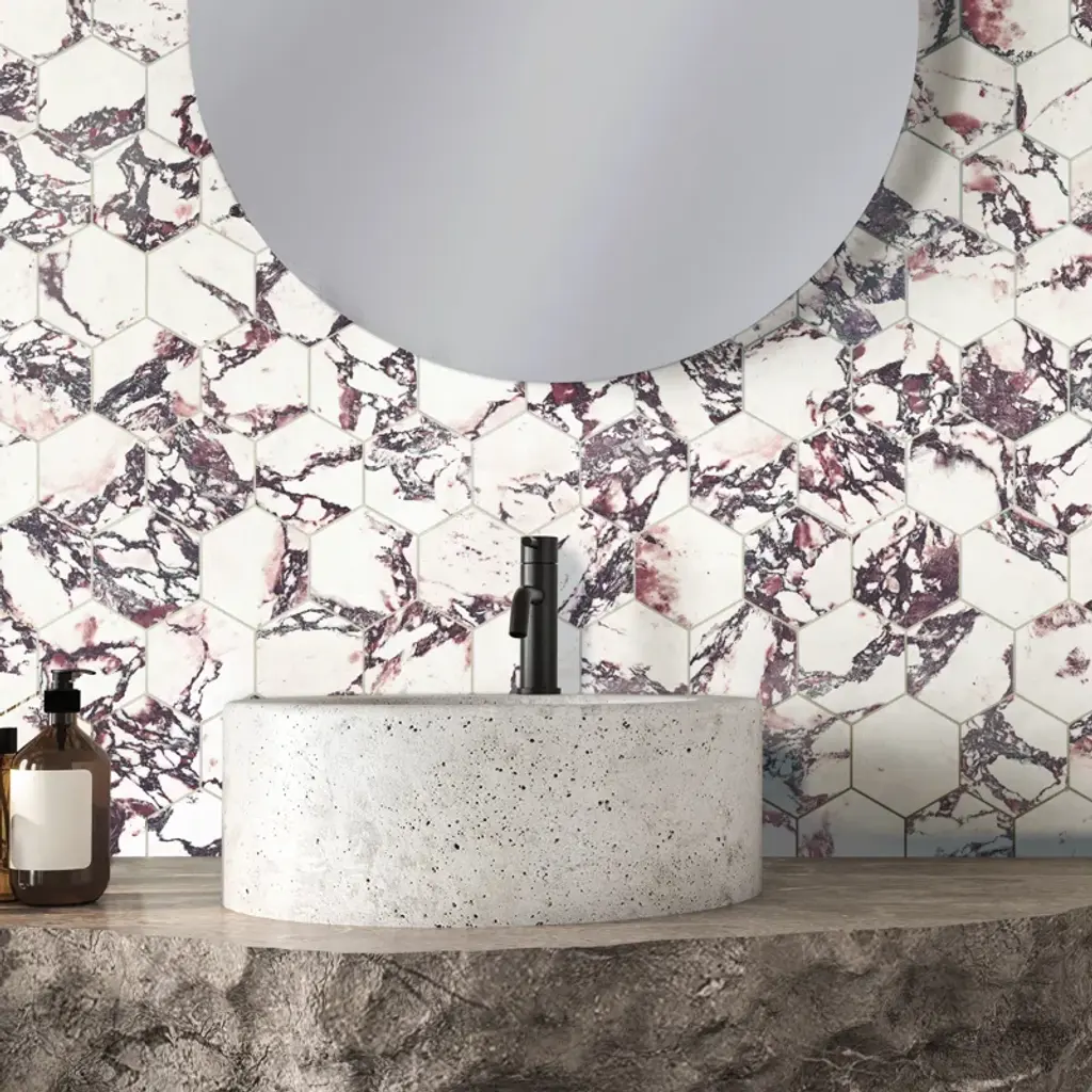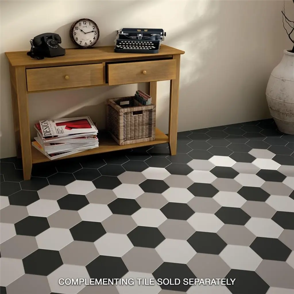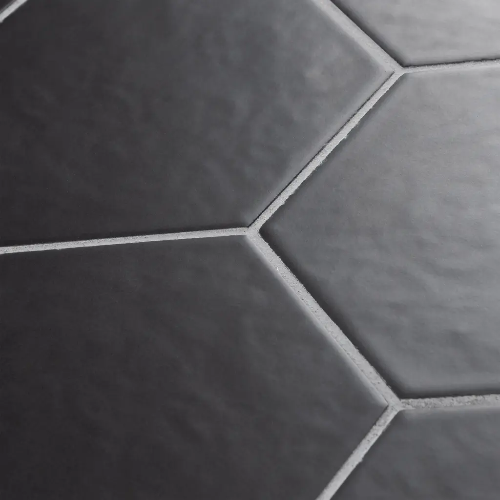 Offering a simplistic look, our Hexatile Matte Nero Porcelain Floor and Wall Tile features a slightly textured, matte finish, providing decorative appeal that adapts to a variety of stylistic contexts. With its impervious, frost-resistant features, this black hexagon tile is an ideal selection for both indoor and outdoor residential installations, including kitchens, bathrooms, backsplashes, showers, hallways and fireplace facades. This tile is a perfect choice on its own or paired with other products in the Hexatile Collection. Tile is the better choice for your space! 7.5 square feet, 25 pieces per case. Case weight is 28.99 lbs. Grade 1, first-quality porcelain tile for floor and wall use 7 in. width x 8 in. length x 0.37 in. thick Glazed, slightly textured finish with a low sheen and uniform appearance in tone PEI Rating III is suitable for medium-duty residential floors including kitchens, halls, corridors, balconies, terraces and areas used more often with normal footwear and small amounts of dirt Impervious tiles have a water absorption of less than 0.5% for indoor and outdoor use and are frost resistant This tile is ADA approved for slip resistance with a DCOF value of 0.42 or higher. Completely frost resistant for indoor or outdoor applications; use a latex-modified thinset for acceptable bond strength Please note: A sample of this product may be a partial piece cut from the full size tile in order to provide an affordable and convenient way for customers to judge the quality and finish of this item. Samples are not returnable.