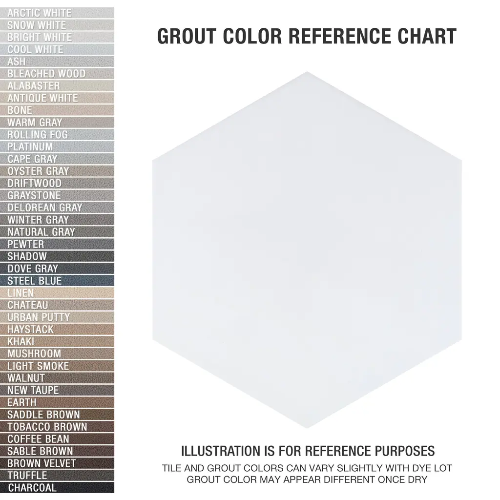Offering a simplistic look, our Horizon Hex Blanco Porcelain Floor and Wall Tile features a smooth, matte finish, providing decorative appeal that adapts to a variety of stylistic contexts. Containing 6 different print variations that are randomly distributed throughout each case, this white hexagon tile offers a one-of-a-kind look. With its impervious, frost-resistant features, this tile is an ideal selection for both indoor and outdoor residential installations, including kitchens, bathrooms, backsplashes, showers, hallways and fireplace facades. This tile is a perfect choice on its own or paired with other products in the Horizon Collection. Tile is the better choice for your space! 8.88 square feet, 24 pieces per case. Case weight is 39.68 lbs. Grade 1, first-quality porcelain tile for floor and wall use 7.75 in. width x 9 in. length x 0.38 in. thick Glazed, smooth finish with a low sheen and uniform appearance in tone PEI Rating III is suitable for medium-duty residential floors including kitchens, halls, corridors, balconies, terraces and areas used more often with normal footwear and small amounts of dirt Impervious tiles have a water absorption of less than 0.5% for indoor and outdoor use and are frost resistant This tile is ADA approved for slip resistance with a DCOF value of 0.42 or higher. Completely frost resistant for indoor or outdoor applications; use a latex-modified thinset for acceptable bond strength Please note: A sample of this product may be a partial piece cut from the full size tile in order to provide an affordable and convenient way for customers to judge the quality and finish of this item. Samples are not returnable.