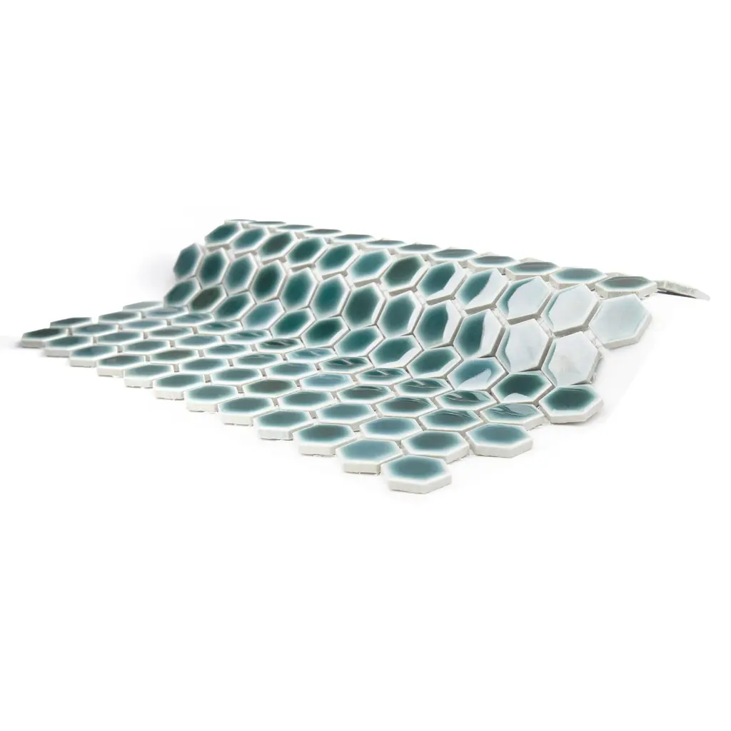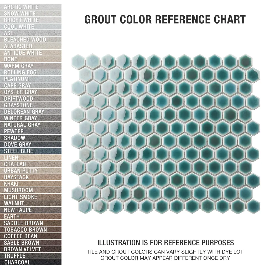Offering a mosaic look, our Hudson 1 in. Hex Emerald Porcelain Floor and Wall Tile features a smooth, glossy finish, providing decorative appeal that adapts to a variety of stylistic contexts. With its impervious, frost-resistant features, this green hexagon mosaic is an ideal selection for both indoor and outdoor residential installations, including bathrooms, backsplashes, showers, hallways and fireplace facades. This tile is a perfect choice on its own or paired with other products in the Hudson Collection. Tile is the better choice for your space! 11.2 square feet, 10 pieces per case. Case weight is 19 lbs. Grade 1, first-quality porcelain tile for floor and wall use 11.88 in. width x 13.25 in. length x 0.19 in. thick mesh-mounted mosaic Glazed, smooth finish with a high sheen and slight variation in tone PEI Rating II is suitable for all interior walls and light foot traffic such as powder rooms Impervious tiles have a water absorption of less than 0.5% for indoor and outdoor use and are frost resistant This tile is not ADA approved for slip resistance with a DCOF value less than 0.42. Completely frost resistant for indoor or outdoor applications; use a latex-modified thinset for acceptable bond strength Please note: A sample of this product may be a partial piece cut from the full size tile in order to provide an affordable and convenient way for customers to judge the quality and finish of this item. Samples are not returnable.