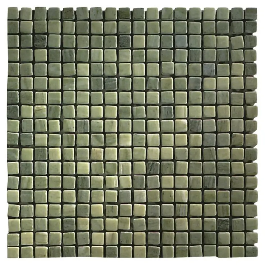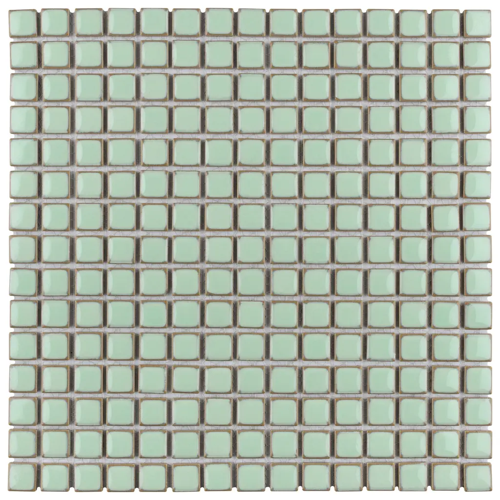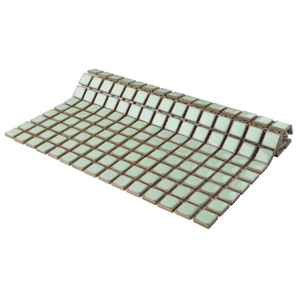 Offering a mosaic look, our Hudson Edge Light Green Porcelain Floor and Wall Tile features a smooth, glossy finish, providing decorative appeal that adapts to a variety of stylistic contexts. With its impervious, frost-resistant features, this mosaic is an ideal selection for both indoor and outdoor commercial and residential installations, including kitchens, bathrooms, backsplashes, showers, hallways, entryways, patios and fireplace facades. This tile is a perfect choice on its own or paired with other products in the Hudson Collection. Tile is the better choice for your space! 10.6 square feet, 10 pieces per case. Case weight is 17 lbs. Grade 1, first-quality porcelain tile for floor and wall use 12.25 in. width x 12.25 in. length x 0.25 in. thick mesh-mounted mosaic Glazed, smooth finish with a high sheen and uniform appearance in tone PEI Rating IV has high resistance to abrasion and is suitable for heavy-duty residential and commercial kitchens, hotels, exhibition and sales rooms with some dirt conditions Impervious tiles have a water absorption of less than 0.5% for indoor and outdoor use and are frost resistant This tile has a COF wet rating less than or equal to 0.50 and is considered to have a marginally low skid resistance. This tile is not ADA approved for slip resistance. Completely frost resistant for indoor or outdoor applications; use a latex-modified thinset for acceptable bond strength Please note: A sample of this product may be a partial piece cut from the full size tile in order to provide an affordable and convenient way for customers to judge the quality and finish of this item. Samples are not returnable.