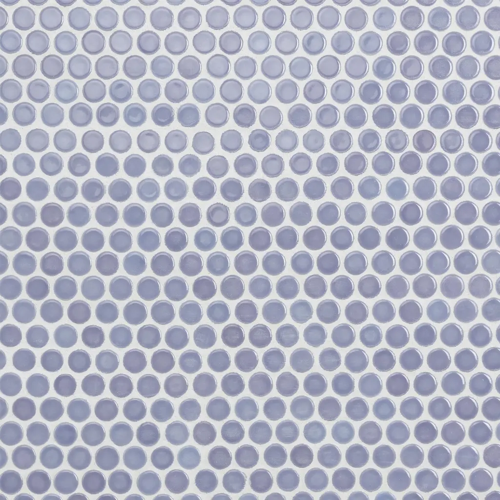 Our Hudson Penny Round Lavender Porcelain Mosaic Tile is a beautifully tranquil update on the timeless penny round design. Featuring a reactive glaze with an eye-drop effect, these tiles have hues of watercolor lavender that blend to white around the edges. This mosaic is a pleasing mixture of cool-toned tints with additional dimension added by the smooth, high-gloss finish. Its impervious and frost-resistant features make this penny tile an ideal choice for indoor and outdoor floor and wall installations including, kitchen backsplashes, bathroom showers and accent walls. This penny round tile can be used as a whole sheet or cut into smaller strips as an accent piece. It is a perfect choice on its own or coordinated with other colors in our Hudson Penny Round series. 10.5 square feet, 10 pieces per case. Case weight is 17.5 lbs. Grade 1, first-quality porcelain tile for floor and wall use 11.88 in. width x 12.63 in. length x 0.21 in. thick mesh-mounted mosaic Glazed, smooth finish with a high sheen and moderate variation in tone PEI Rating IV has high resistance to abrasion and is suitable for heavy-duty residential and commercial kitchens, hotels, exhibition and sales rooms with some dirt conditions Impervious tiles have a water absorption of less than 0.5% for indoor and outdoor use and are frost resistant This tile is not ADA approved for slip resistance with a DCOF value less than 0.42. Completely frost resistant for indoor or outdoor applications; use a latex-modified thinset for acceptable bond strength Please note: A sample of this product may be a partial piece cut from the full size tile in order to provide an affordable and convenient way for customers to judge the quality and finish of this item. Samples are not returnable.