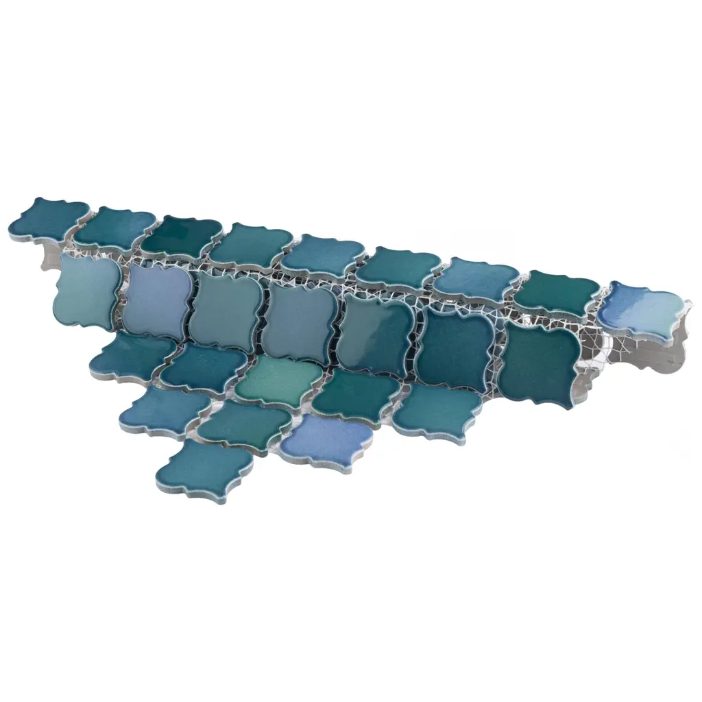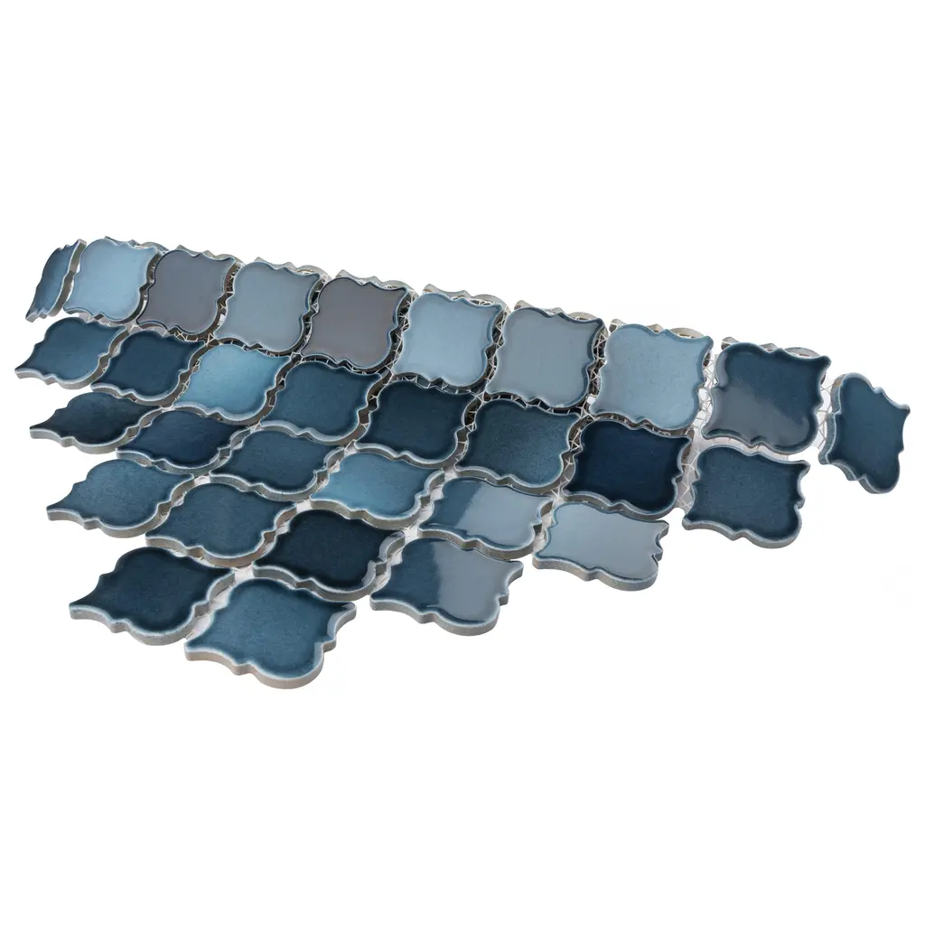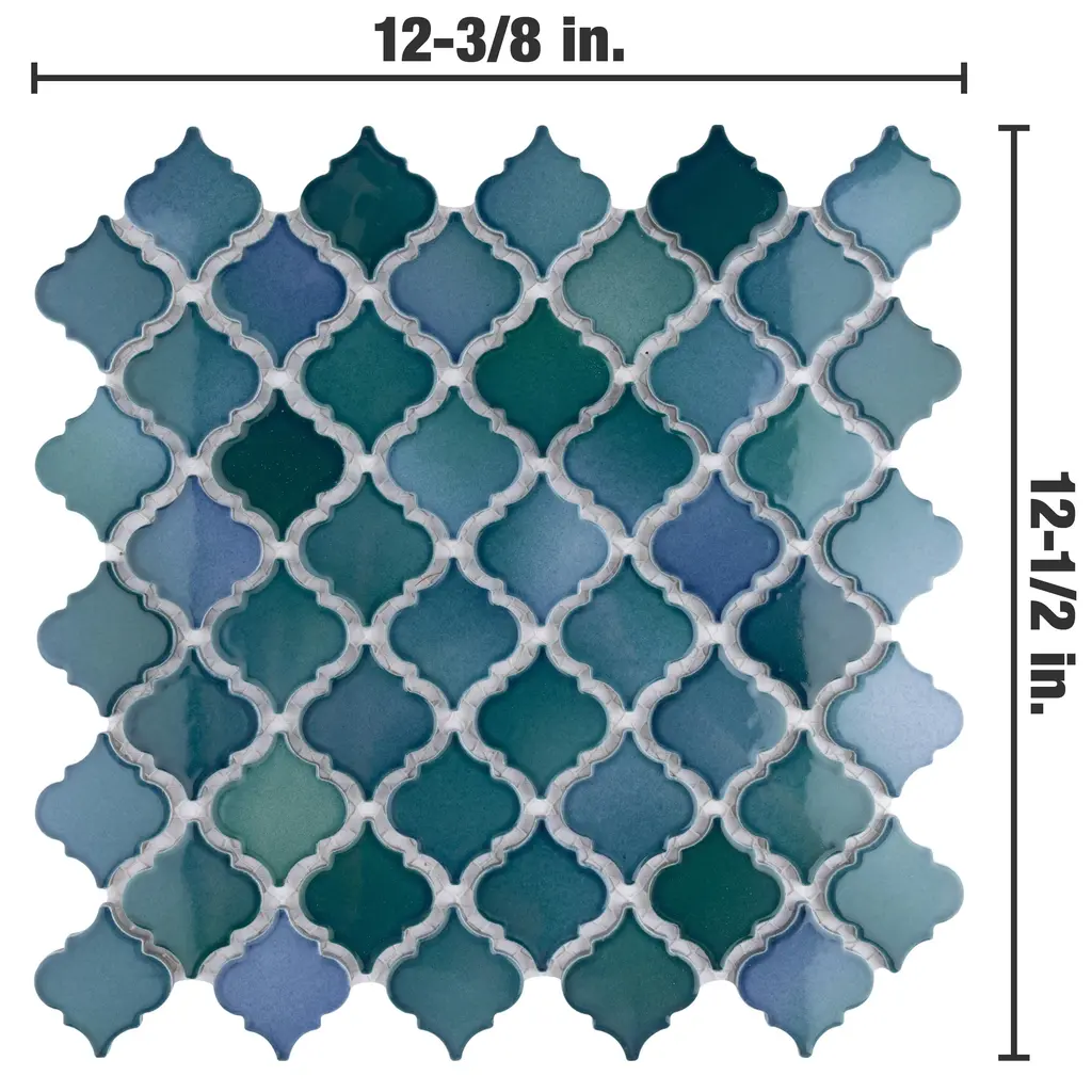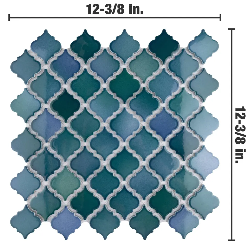 Offering a mosaic look, our Hudson Tangier Aquamarine Porcelain Floor and Wall Tile features a smooth, glossy finish, providing decorative appeal that adapts to a variety of stylistic contexts. With its impervious, frost-resistant features, this blue lantern mosaic is an ideal selection for both indoor and outdoor commercial and residential installations, including kitchens, bathrooms, backsplashes, showers, hallways, entryways, patios and fireplace facades. This tile is a perfect choice on its own or paired with other products in the Hudson Collection. Tile is the better choice for your space! 11.0 square feet, 10 pieces per case. Case weight is 19.5 lbs. Grade 1, first-quality porcelain tile for floor and wall use 12.38 in. width x 12.38 in. length x 0.21 in. thick mesh-mounted mosaic Glazed, smooth finish with a high sheen and slight variation in tone PEI Rating IV has high resistance to abrasion and is suitable for heavy-duty residential and commercial kitchens, hotels, exhibition and sales rooms with some dirt conditions Impervious tiles have a water absorption of less than 0.5% for indoor and outdoor use and are frost resistant This tile is not ADA approved for slip resistance with a DCOF value less than 0.42. Completely frost resistant for indoor or outdoor applications; use a latex-modified thinset for acceptable bond strength Please note: A sample of this product may be a partial piece cut from the full size tile in order to provide an affordable and convenient way for customers to judge the quality and finish of this item. Samples are not returnable.