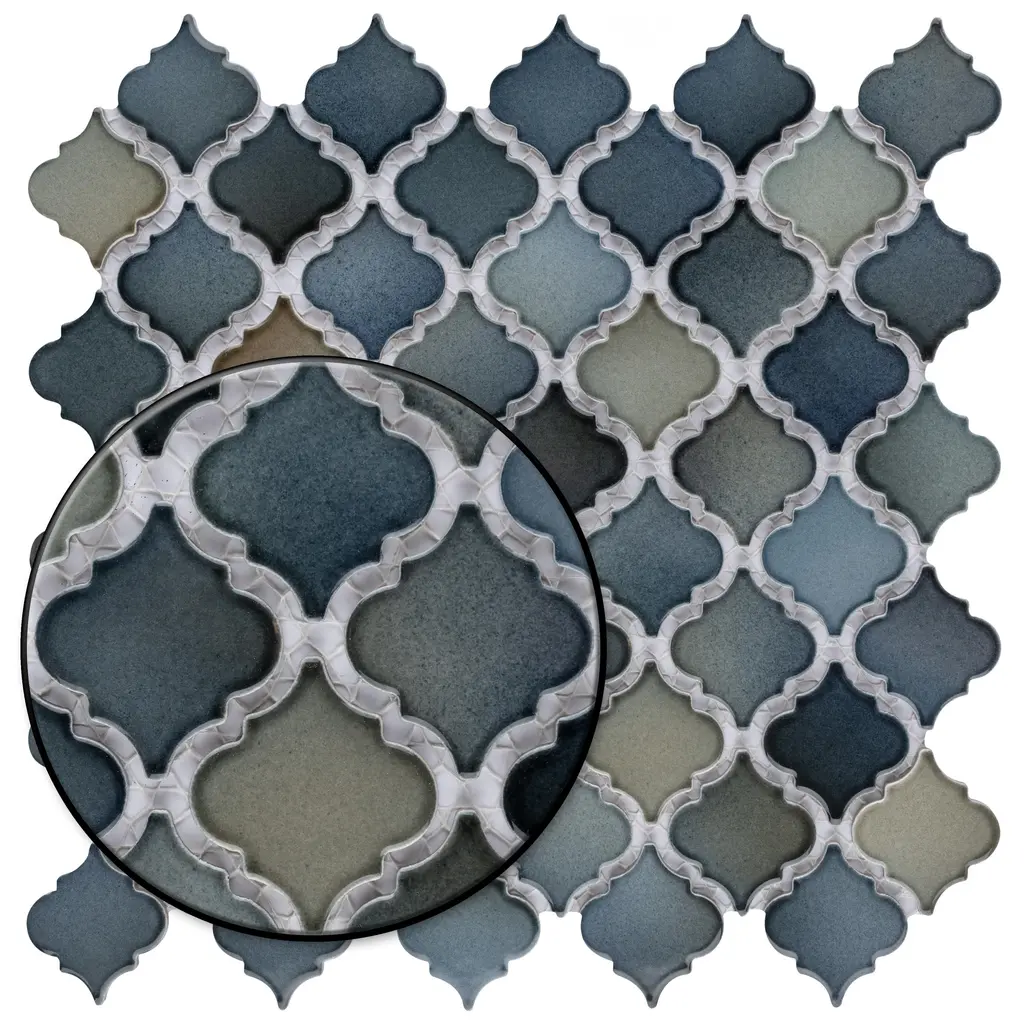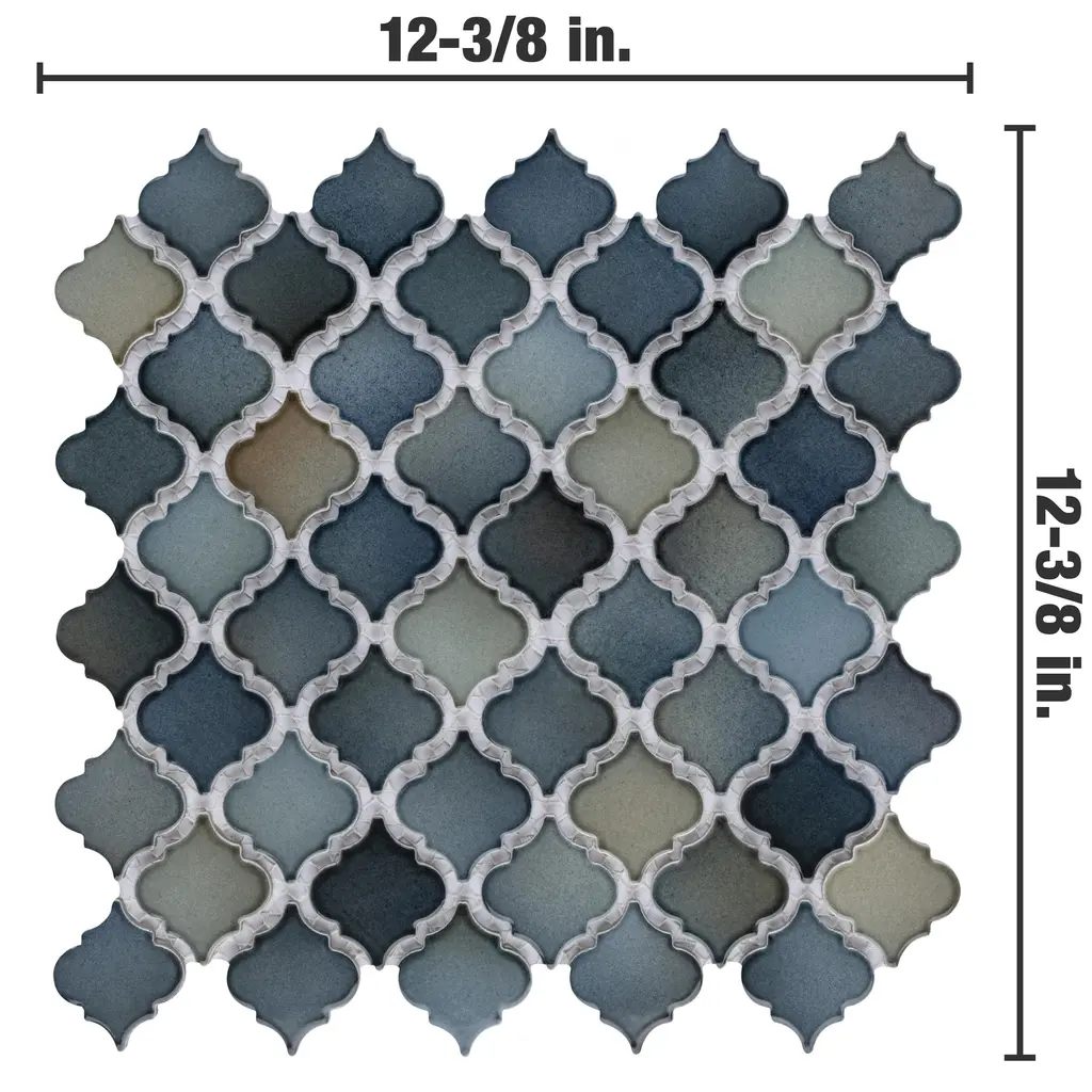 Offering a mosaic look, our Hudson Tangier Atlantis Porcelain Floor and Wall Tile features a smooth, glossy finish, providing decorative appeal that adapts to a variety of stylistic contexts. With its impervious, frost-resistant features, this mosaic is an ideal selection for both indoor and outdoor residential installations, including bathrooms, backsplashes, showers, hallways and fireplace facades. This tile is a perfect choice on its own or paired with other products in the Hudson Collection. Tile is the better choice for your space! 11.0 square feet, 10 pieces per case. Case weight is 21.7 lbs. Grade 1, first-quality porcelain tile for floor and wall use 12.38 in. width x 12.38 in. length x 0.18 in. thick mesh-mounted mosaic Glazed, smooth finish with a high sheen and moderate variation in tone PEI Rating II is suitable for all interior walls and light foot traffic such as powder rooms Impervious tiles have a water absorption of less than 0.5% for indoor and outdoor use and are frost resistant This tile is not ADA approved for slip resistance with a DCOF value less than 0.42. Completely frost resistant for indoor or outdoor applications; use a latex-modified thinset for acceptable bond strength Please note: A sample of this product may be a partial piece cut from the full size tile in order to provide an affordable and convenient way for customers to judge the quality and finish of this item. Samples are not returnable.
