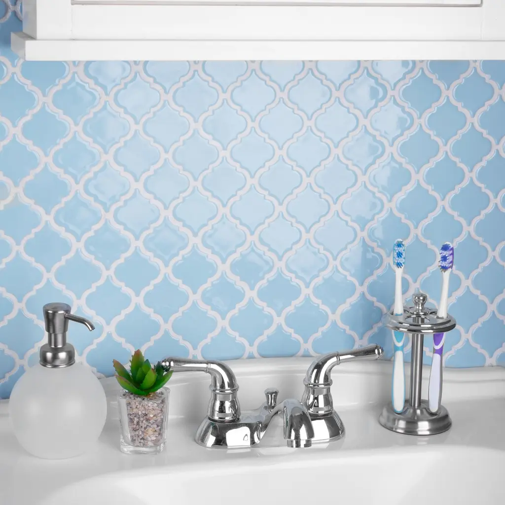 Offering a mosaic look, our Hudson Tangier Cashmere Blue Porcelain Floor and Wall Tile features a smooth, glossy finish, providing decorative appeal that adapts to a variety of stylistic contexts. With its impervious, frost-resistant features, this mosaic is an ideal selection for both indoor and outdoor commercial and residential installations, including kitchens, bathrooms, backsplashes, showers, hallways, entryways, patios and fireplace facades. This tile is a perfect choice on its own or paired with other products in the Hudson Collection. Tile is the better choice for your space! 11.0 square feet, 10 pieces per case. Case weight is 20.9 lbs. Grade 1, first-quality porcelain tile for floor and wall use 12.38 in. width x 12.38 in. length x 0.2 in. thick mesh-mounted mosaic Glazed, smooth finish with a high sheen and slight variation in tone PEI Rating IV has high resistance to abrasion and is suitable for heavy-duty residential and commercial kitchens, hotels, exhibition and sales rooms with some dirt conditions Impervious tiles have a water absorption of less than 0.5% for indoor and outdoor use and are frost resistant This tile is not ADA approved for slip resistance with a DCOF value less than 0.42. Completely frost resistant for indoor or outdoor applications; use a latex-modified thinset for acceptable bond strength Please note: A sample of this product may be a partial piece cut from the full size tile in order to provide an affordable and convenient way for customers to judge the quality and finish of this item. Samples are not returnable.