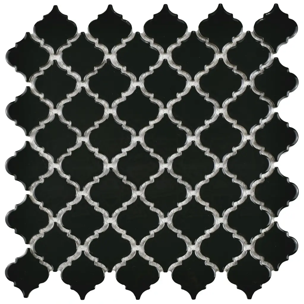 Our Hudson Tangier Glossy Black Porcelain Mosaic Tile features our popular lantern design with a modern update. Let the stark, high-gloss black glaze add a dramatic depth to your floors, baths, showers and backsplashes. Impervious, frost-resistant and easy to clean, this tile is a perfect choice on its own or coordinated with other colors in our Hudson series. Tile is the better choice for your space. This tile is made from natural ingredients, making it a healthy choice as it is free from allergens, VOCs, formaldehyde and PVC. 11.0 square feet, 10 pieces per case. Case weight is 21.3 lbs. Grade 1, first-quality porcelain tile for floor and wall use 12.38 in. width x 12.38 in. length x 0.2 in. thick mesh-mounted mosaic Glazed, smooth finish with a high sheen and uniform appearance in tone PEI Rating II is suitable for all interior walls and light foot traffic such as powder rooms Impervious tiles have a water absorption of less than 0.5% for indoor and outdoor use and are frost resistant This tile is not ADA approved for slip resistance with a DCOF value less than 0.42. Completely frost resistant for indoor or outdoor applications; use a latex-modified thinset for acceptable bond strength Please note: A sample of this product may be a partial piece cut from the full size tile in order to provide an affordable and convenient way for customers to judge the quality and finish of this item. Samples are not returnable.