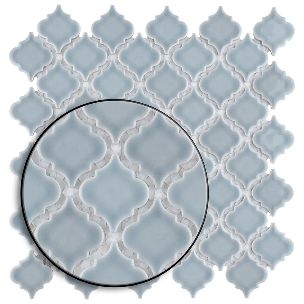 Our Hudson Tangier Slate Porcelain Mosaic Tile offers a beautifully tranquil update on the timeless lantern design. These tiles feature an eye-drop effect reactive glaze that offers the cool-toned slate grey color in the center with a gradient to white on the edge. The end effect is a pleasing mixture of cool-toned tints with additional dimension added by the high-gloss finish. Impervious, frost-resistant and easy to clean, this tile is a perfect choice on its own or coordinated with other colors in our Hudson Tangier series. Tile is the better choice for your space. This tile is made from natural ingredients, making it a healthy choice as it is free from allergens, VOCs, formaldehyde and PVC. 11.0 square feet, 10 pieces per case. Case weight is 21.5 lbs. Grade 1, first-quality porcelain tile for floor and wall use 12.38 in. width x 12.38 in. length x 0.21 in. thick mesh-mounted mosaic Glazed, smooth finish with a high sheen and slight variation in tone PEI Rating IV has high resistance to abrasion and is suitable for heavy-duty residential and commercial kitchens, hotels, exhibition and sales rooms with some dirt conditions Impervious tiles have a water absorption of less than 0.5% for indoor and outdoor use and are frost resistant This tile is not ADA approved for slip resistance with a DCOF value less than 0.42. Completely frost resistant for indoor or outdoor applications; use a latex-modified thinset for acceptable bond strength Please note: A sample of this product may be a partial piece cut from the full size tile in order to provide an affordable and convenient way for customers to judge the quality and finish of this item. Samples are not returnable.