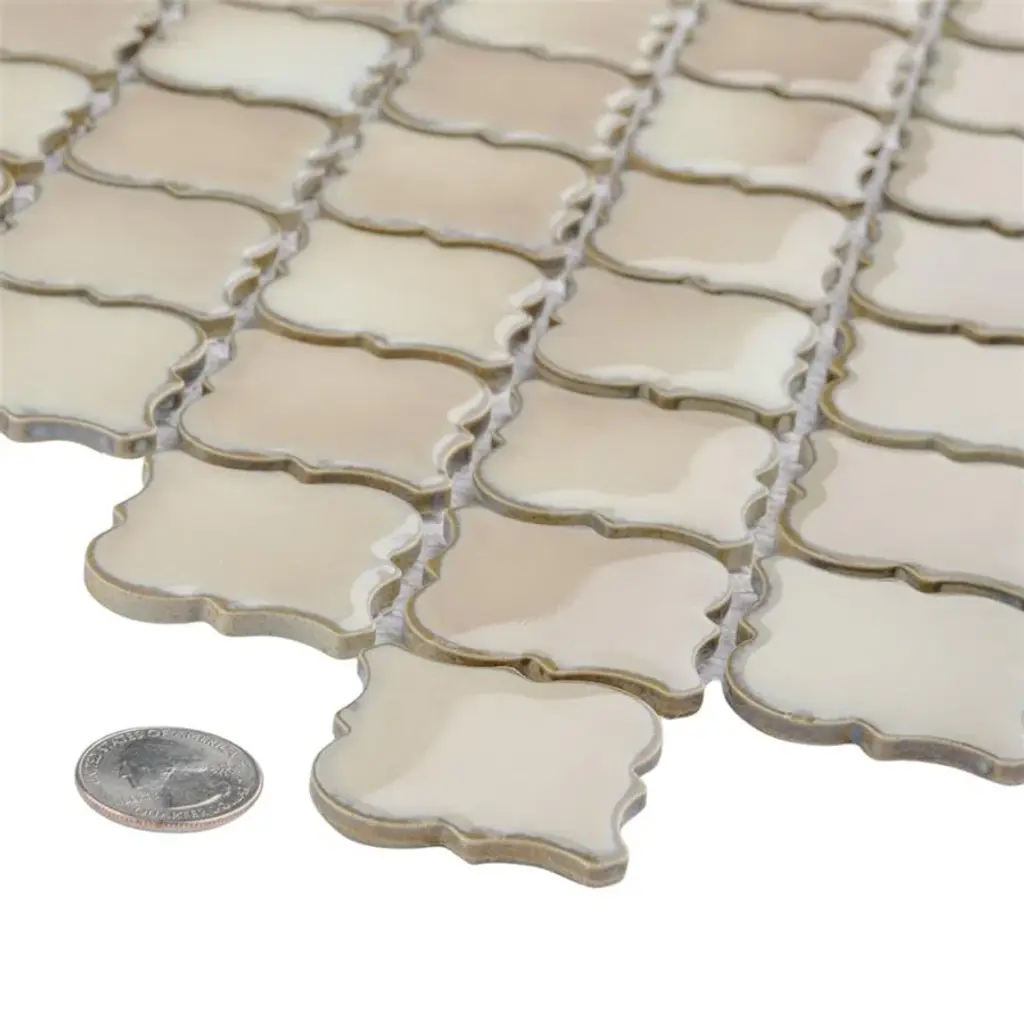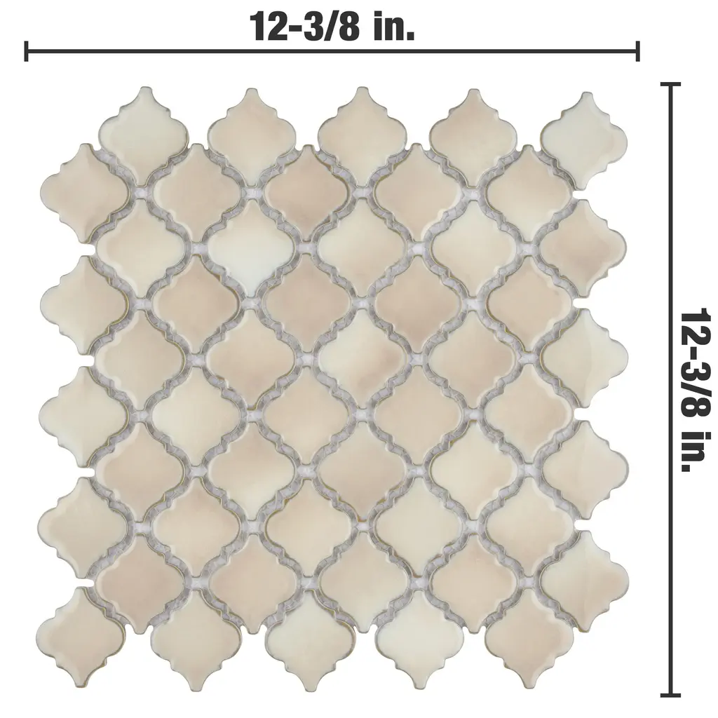 Offering a mosaic look, our Hudson Tangier Truffle Porcelain Floor and Wall Tile features a smooth, glossy finish, providing decorative appeal that adapts to a variety of stylistic contexts. With its impervious, frost-resistant features, this mosaic is an ideal selection for both indoor and outdoor commercial and residential installations, including kitchens, bathrooms, backsplashes, showers, hallways, entryways, patios and fireplace facades. This tile is a perfect choice on its own or paired with other products in the Hudson Collection. Tile is the better choice for your space! 11.0 square feet, 10 pieces per case. Case weight is 22.2 lbs. Grade 1, first-quality porcelain tile for floor and wall use 12.38 in. width x 12.38 in. length x 0.2 in. thick mesh-mounted mosaic Glazed, smooth finish with a high sheen and slight variation in tone PEI Rating IV has high resistance to abrasion and is suitable for heavy-duty residential and commercial kitchens, hotels, exhibition and sales rooms with some dirt conditions Impervious tiles have a water absorption of less than 0.5% for indoor and outdoor use and are frost resistant This tile is not ADA approved for slip resistance with a DCOF value less than 0.42. Completely frost resistant for indoor or outdoor applications; use a latex-modified thinset for acceptable bond strength Please note: A sample of this product may be a partial piece cut from the full size tile in order to provide an affordable and convenient way for customers to judge the quality and finish of this item. Samples are not returnable.