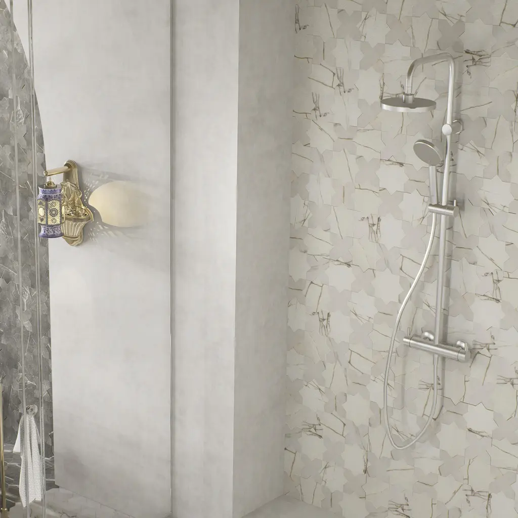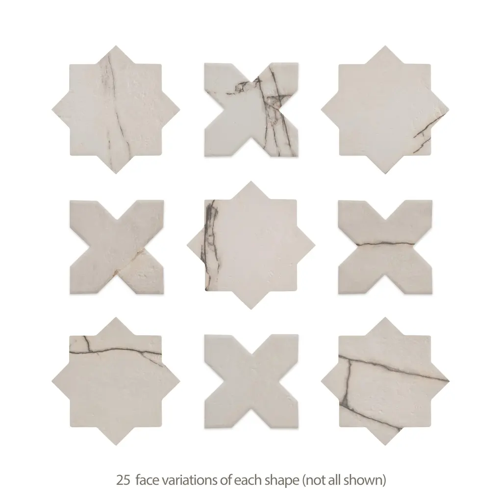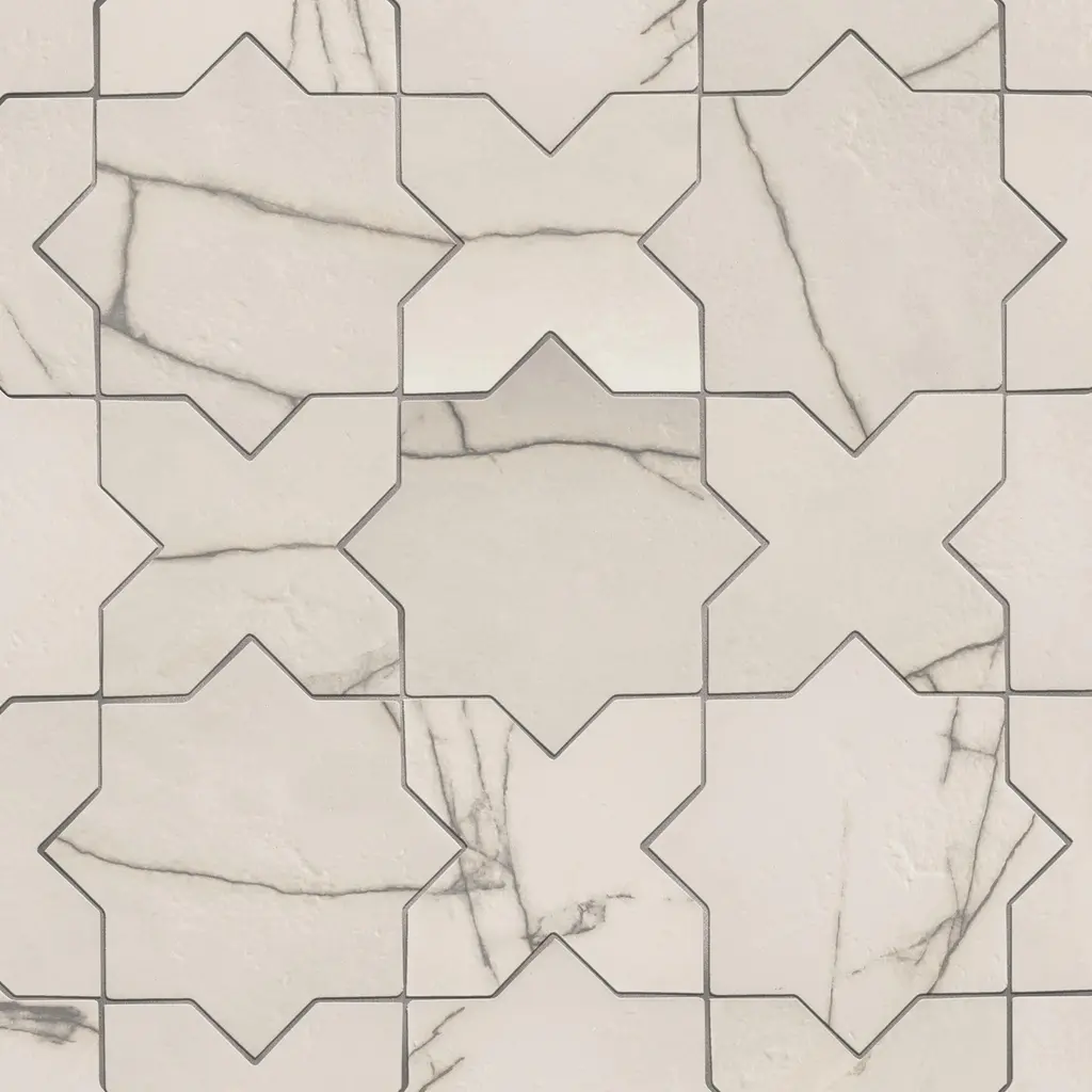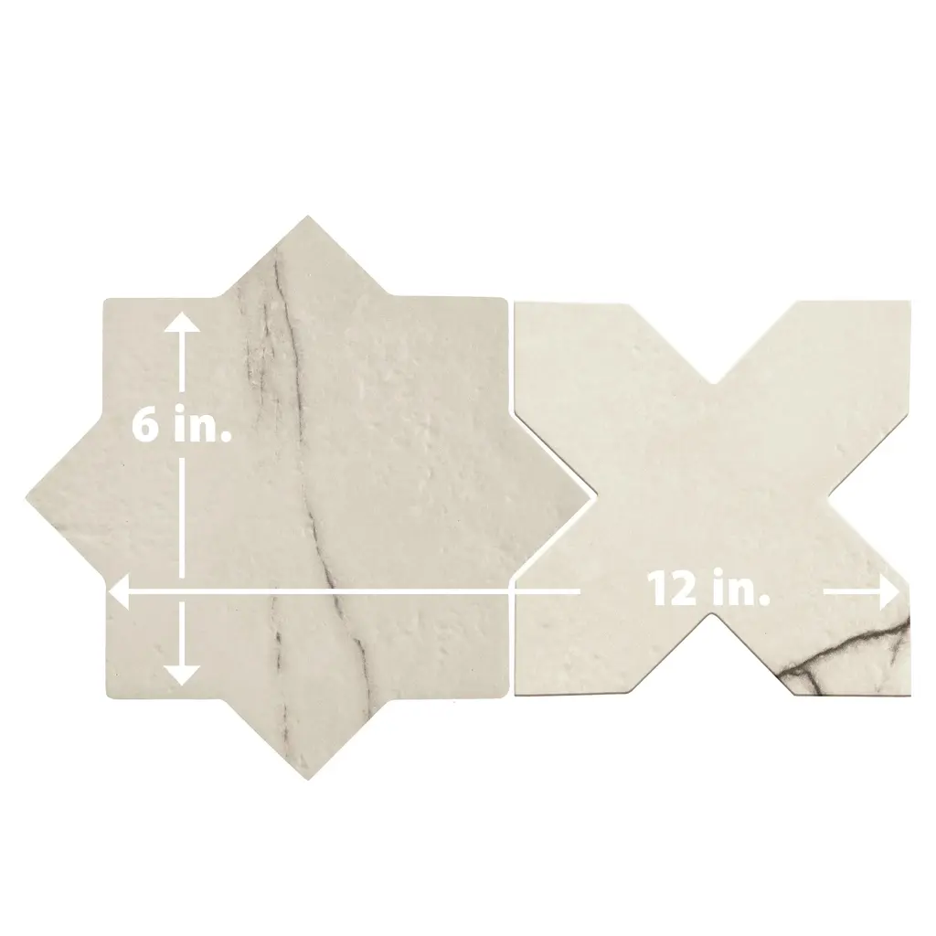Capturing the appearance of a marble look, our Istanbul Star Day with Day Cross Porcelain Floor and Wall Tile features a mixed textured finish, providing decorative appeal that adapts to a variety of stylistic contexts. Inspired by Turkey's elegant architecture, the Istanbul Collection's soft, aged color palette, matte finish, shiny veins, and tumbled look with rounded edges emulate weathered marble, creating timeless elegance and historical grandeur that connect modern spaces to refined opulence. Containing 50 different print variations that are randomly distributed throughout each case, this white specialty tile offers a one-of-a-kind look. With its impervious, frost-resistant features, this tile is an ideal selection for a variety of spaces including indoor and outdoor commercial and residential installations, kitchens, bathrooms, backsplashes, showers, hallways, entryways, patios, pools and fireplace facades. This tile is a perfect choice on its own or with other products in the Merola Tile, Istanbul Collection. To ensure optimal results, please consult with your installer and review the product specifications to confirm that this tile meets the specific needs of your project.