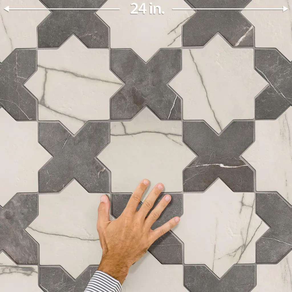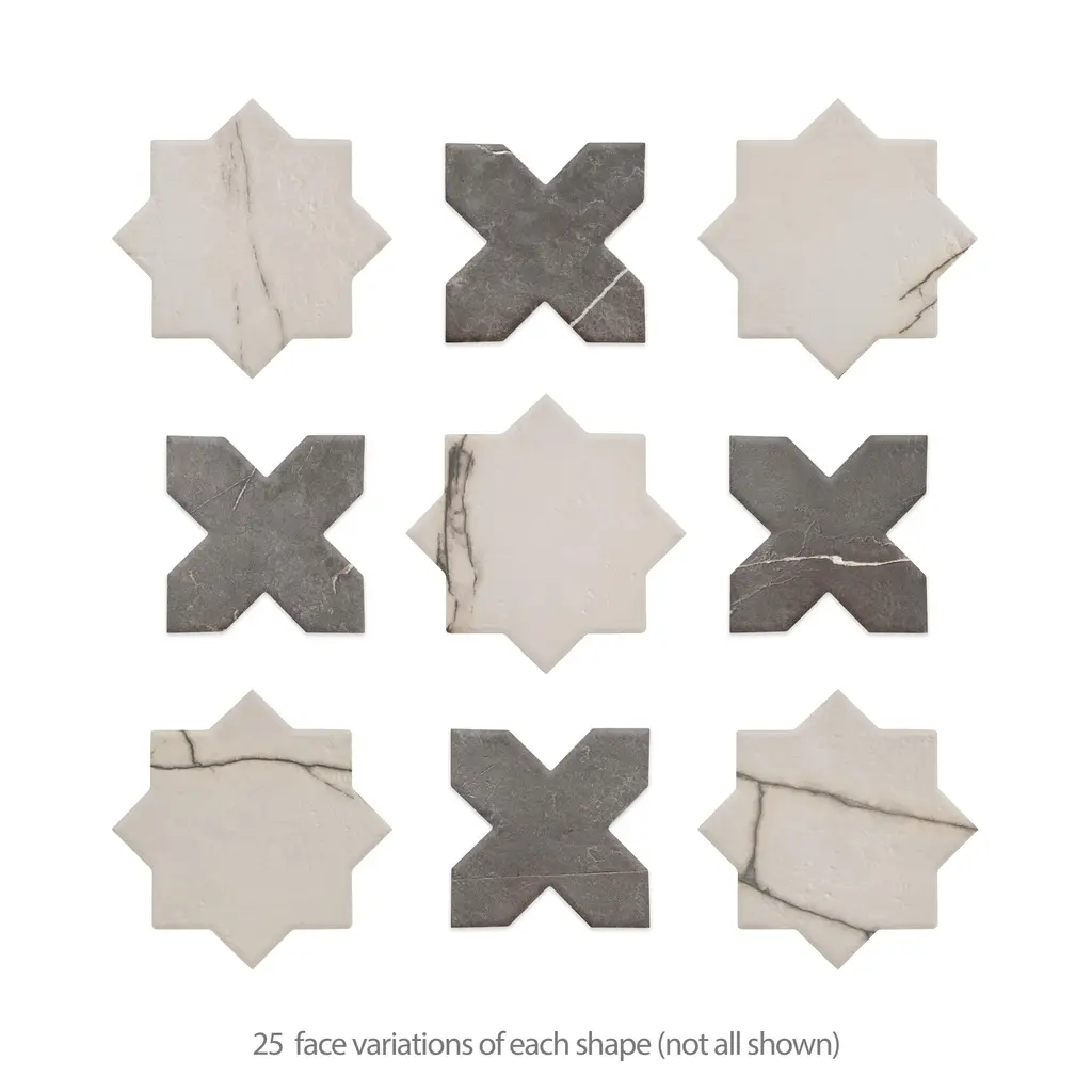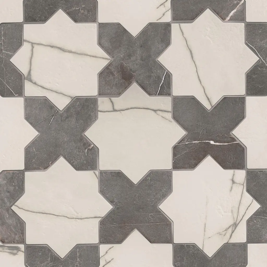 Capturing the appearance of a marble look, our Istanbul Star Day with Night Cross Porcelain Floor and Wall Tile features a mixed textured finish, providing decorative appeal that adapts to a variety of stylistic contexts. Inspired by Turkey's elegant architecture, the Istanbul Collection's soft, aged color palette, matte finish, shiny veins, and tumbled look with rounded edges emulate weathered marble, creating timeless elegance and historical grandeur that connect modern spaces to refined opulence. Containing 50 different print variations that are randomly distributed throughout each case, this white specialty tile offers a one-of-a-kind look. With its impervious, frost-resistant features, this tile is an ideal selection for a variety of spaces including indoor and outdoor residential installations, bathrooms, backsplashes, showers, hallways, pools and fireplace facades. This tile is a perfect choice on its own or with other products in the Merola Tile, Istanbul Collection. To ensure optimal results, please consult with your installer and review the product specifications to confirm that this tile meets the specific needs of your project.