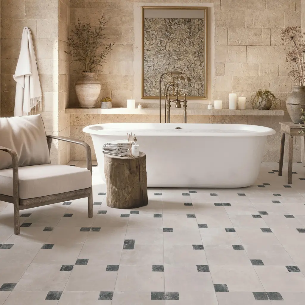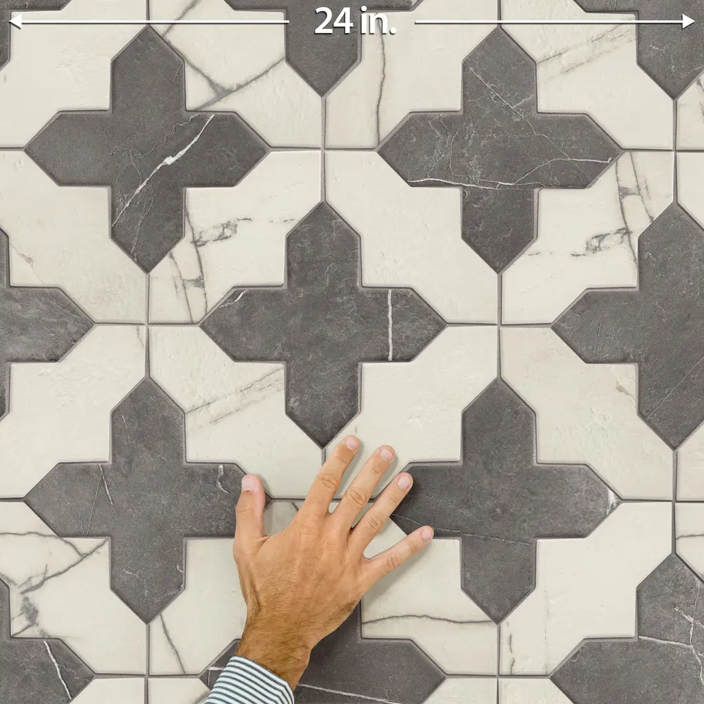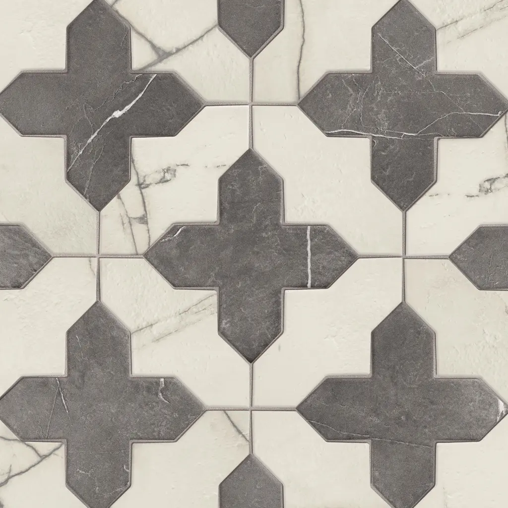 Capturing the appearance of a marble look, our Istanbul Templar Shield Day with Night Cross Porcelain Floor and Wall Tile features a mixed textured finish, providing decorative appeal that adapts to a variety of stylistic contexts. Inspired by Turkey's elegant architecture, the Istanbul Collection's soft, aged color palette, matte finish, shiny veins, and tumbled look with rounded edges emulate weathered marble, creating timeless elegance and historical grandeur that connect modern spaces to refined opulence. Containing 50 different print variations that are randomly distributed throughout each case, this white specialty tile offers a one-of-a-kind look. With its impervious, frost-resistant features, this tile is an ideal selection for a variety of spaces including indoor and outdoor residential installations, bathrooms, backsplashes, showers, hallways, pools and fireplace facades. This tile is a perfect choice on its own or with other products in the Merola Tile, Istanbul Collection. To ensure optimal results, please consult with your installer and review the product specifications to confirm that this tile meets the specific needs of your project.