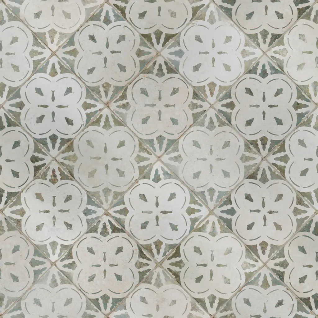 Capturing the appearance of an encaustic look, our Kings Aurora Sage Ceramic Floor and Wall Tile features a slightly textured, matte finish, providing decorative appeal that adapts to a variety of stylistic contexts. Containing 7 different print variations that are randomly distributed throughout each case, this green square tile offers a one-of-a-kind look. With its semi-vitreous features, this tile is an ideal selection for indoor commercial and residential installations, including kitchens, bathrooms, backsplashes, showers, hallways, entryways and fireplace facades. This tile is a perfect choice on its own or paired with other products in the Kings Collection. Tile is the better choice for your space!