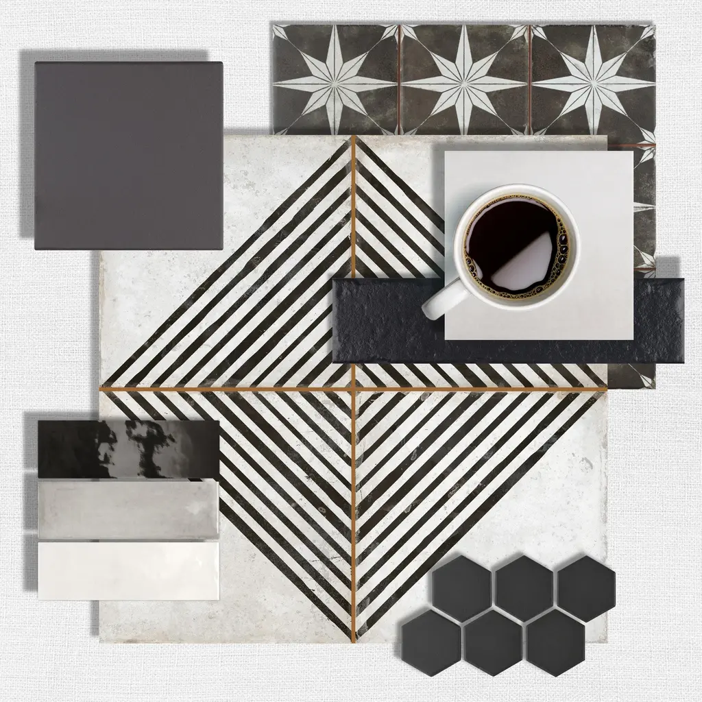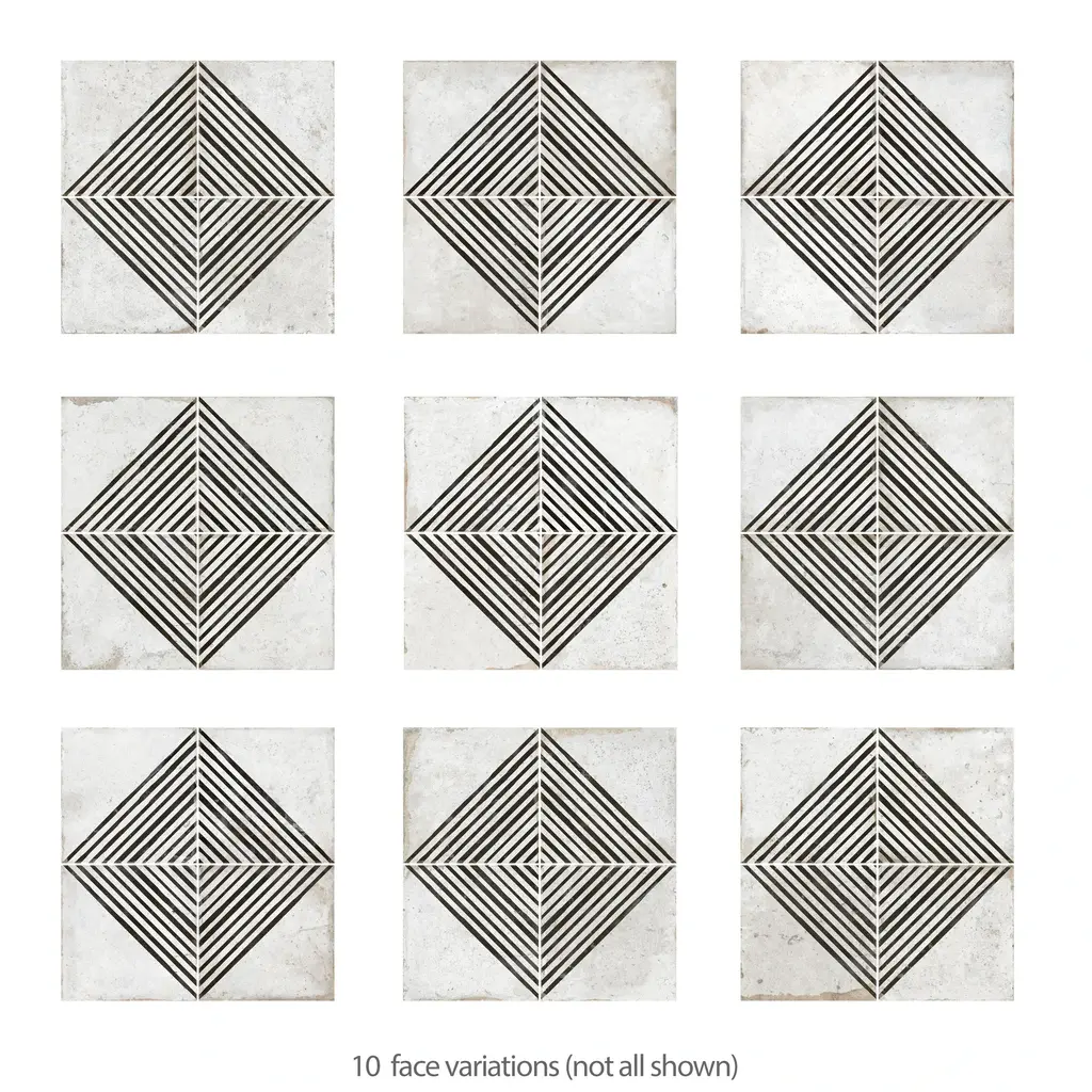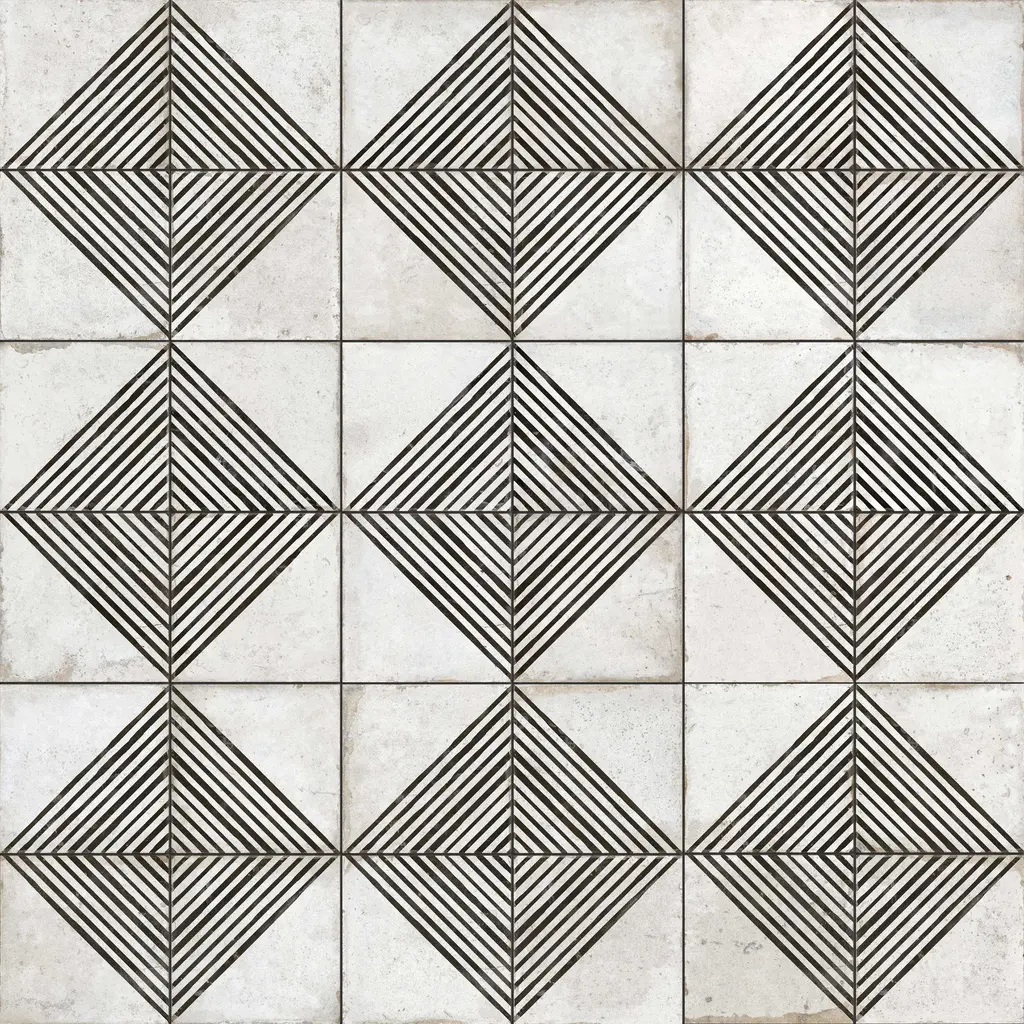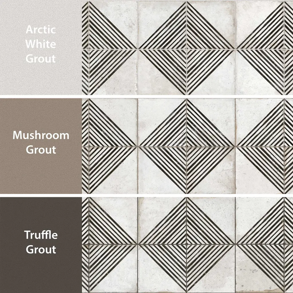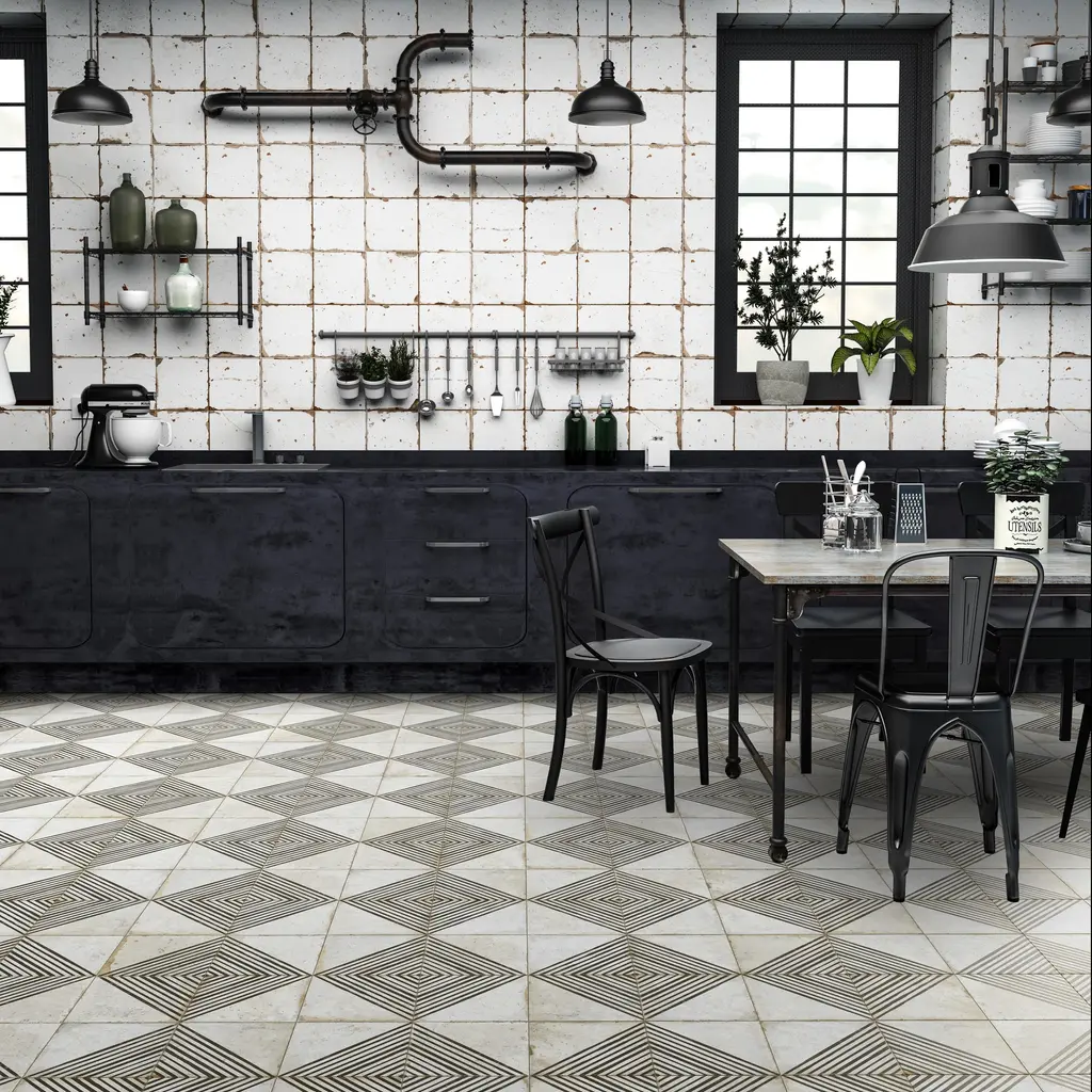 Offering a simplistic look, our Kings Rombos Nero Ceramic Floor and Wall Tile features a slightly textured, matte finish, providing decorative appeal that adapts to a variety of stylistic contexts. The Kings Rombos Ceramic Tile Collection is a tribute to the vintage industrial style, with diamond design and low-sheen glaze. The pre-scored grout lines make it easy to install and the worn appearance adds character and authenticity. Containing 10 different print variations that are randomly distributed throughout each case, this white square tile offers a one-of-a-kind look. With its semi-vitreous features, this tile is an ideal selection for indoor commercial and residential installations, including kitchens, bathrooms, backsplashes, showers, hallways, entryways and fireplace facades. This tile is a perfect choice on its own or paired with other products in the Kings Collection. Tile is the better choice for your space! 10.95 square feet, 5 pieces per case. Case weight is 46.63 lbs. Grade 1, first-quality ceramic tile for floor and wall use 17.63 in. width x 17.63 in. length x 0.37 in. thick Glazed, slightly textured finish with a low sheen and slight variation in tone PEI Rating IV has high resistance to abrasion and is suitable for heavy-duty residential and commercial kitchens, hotels, exhibition and sales rooms with some dirt conditions Semi-Vitreous tiles have water absorption of more than 3% but less than 7% for indoor use This tile is ADA approved for slip resistance with a DCOF value of 0.42 or higher. Not frost resistant Please note: A sample of this product may be a partial piece cut from the full size tile in order to provide an affordable and convenient way for customers to judge the quality and finish of this item. Samples are not returnable.