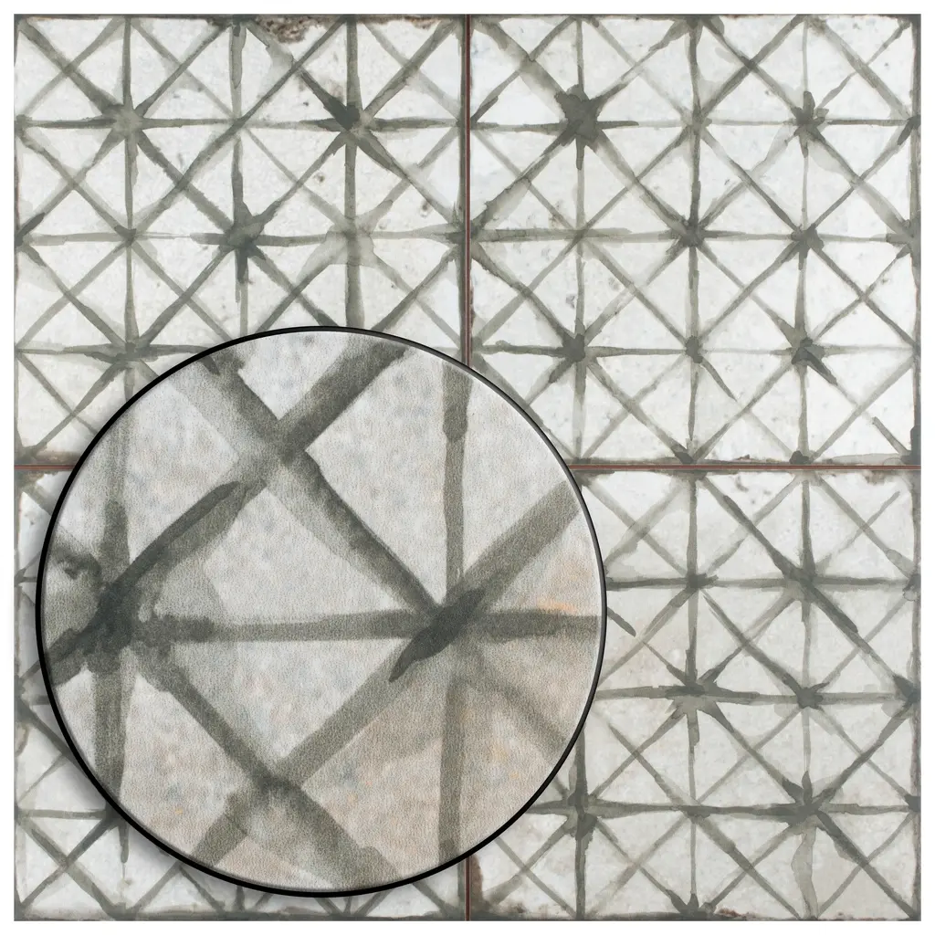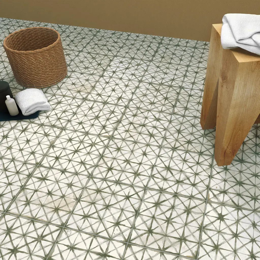 Our Kings Temple Sage Ceramic Floor and Wall Tile is a decorative piece with a watercolor inspired appearance. The defining feature of this encaustic-look tile is the unique, low-sheen glaze in beige tones with faded sage intersecting lines that blend to create various geometric shapes. Slight variation across the surface mimics a hand painted appearance. Designed by interior architect and furniture designer Francisco Segarra, this tile is a true reflection of vintage industrial design. There are 10 different variations available that are randomly scattered throughout each case. With a high durability rating, this tile is an ideal choice for both commercial and residential indoor installations including, kitchens, bathrooms and entryways. The scored grout lines can be grouted with the color of your choice to further customize your installation. Tile is the better choice for your space. This tile is made from natural ingredients, making it a healthy choice as it is free from allergens, VOCs, formaldehyde and PVC.