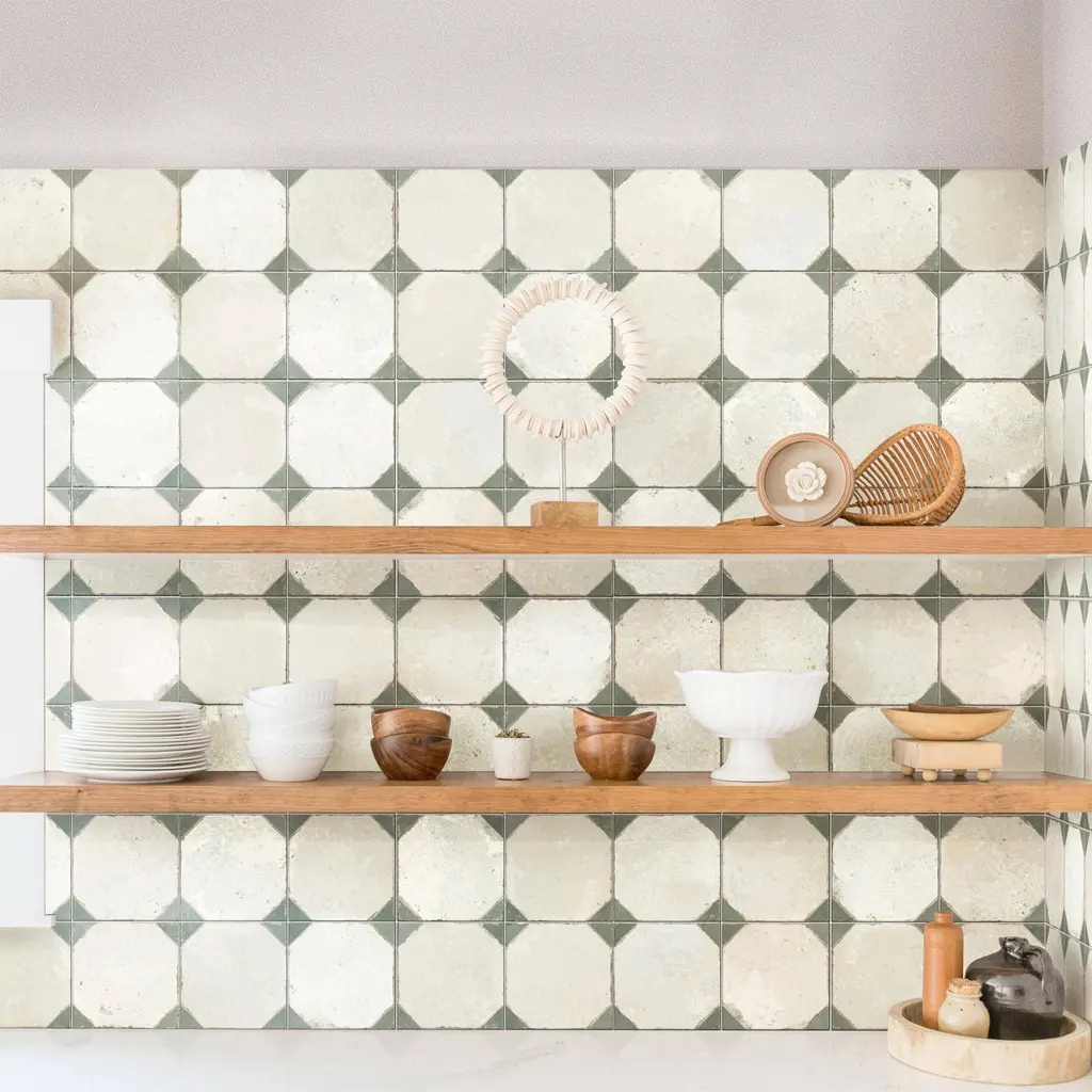 Capturing the appearance of a patterned look, our Kings Yard Sage Ceramic Floor and Wall Tile features a slightly textured, matte finish, providing decorative appeal that adapts to a variety of stylistic contexts. Containing 10 different print variations that are randomly distributed throughout each case, this beige square tile offers a one-of-a-kind look. With its semi-vitreous features, this tile is an ideal selection for indoor commercial and residential installations, including kitchens, bathrooms, backsplashes, showers, hallways, entryways and fireplace facades. This tile is a perfect choice on its own or paired with other products in the Kings Collection. Tile is the better choice for your space! 10.95 square feet, 5 pieces per case. Case weight is 46.63 lbs. Grade 1, first-quality ceramic tile for floor and wall use 17.63 in. width x 17.63 in. length x 0.37 in. thick Glazed, slightly textured finish with a low sheen and moderate variation in tone PEI Rating IV has high resistance to abrasion and is suitable for heavy-duty residential and commercial kitchens, hotels, exhibition and sales rooms with some dirt conditions Semi-Vitreous tiles have water absorption of more than 3% but less than 7% for indoor use This tile is ADA approved for slip resistance with a DCOF value of 0.42 or higher. Not frost resistant Please note: A sample of this product may be a partial piece cut from the full size tile in order to provide an affordable and convenient way for customers to judge the quality and finish of this item. Samples are not returnable.