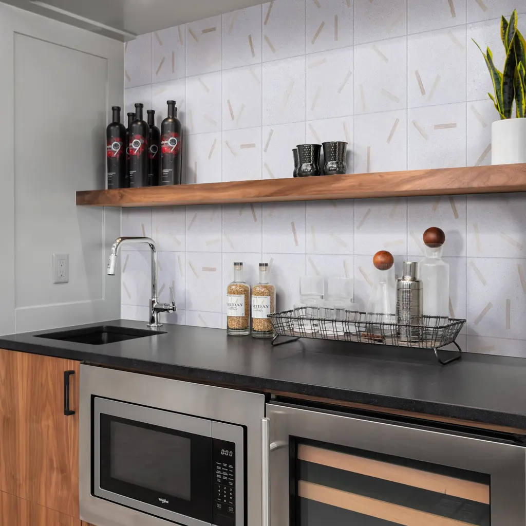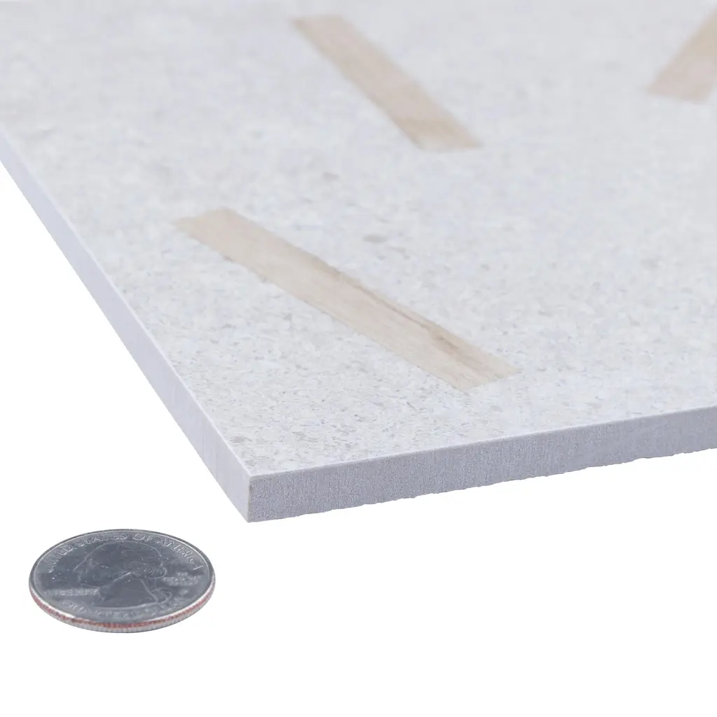 Modeling a geometric look, our Komi Maolan Gris Porcelain Floor and Wall Tile features a smooth, matte finish, providing decorative appeal that adapts to a variety of stylistic contexts. Containing 19 different print variations that are randomly distributed throughout each case, this gray square tile offers a one-of-a-kind look. With its impervious, frost-resistant features, this tile is an ideal selection for both indoor and outdoor residential installations, including kitchens, bathrooms, backsplashes, showers, hallways and fireplace facades. This tile is a perfect choice on its own or paired with other products in the Komi Collection. Tile is the better choice for your space! 11.25 square feet, 25 pieces per case. Case weight is 40 lbs. Grade 1, first-quality porcelain tile for floor and wall use 7.88 in. width x 7.88 in. length x 0.31 in. thick Glazed, smooth finish with a low sheen and slight variation in tone PEI Rating III is suitable for medium-duty residential floors including kitchens, halls, corridors, balconies, terraces and areas used more often with normal footwear and small amounts of dirt Impervious tiles have a water absorption of less than 0.5% for indoor and outdoor use and are frost resistant This tile is ADA approved for slip resistance with a DCOF value of 0.42 or higher. Completely frost resistant for indoor or outdoor applications; use a latex-modified thinset for acceptable bond strength Please note: A sample of this product may be a partial piece cut from the full size tile in order to provide an affordable and convenient way for customers to judge the quality and finish of this item. Samples are not returnable.