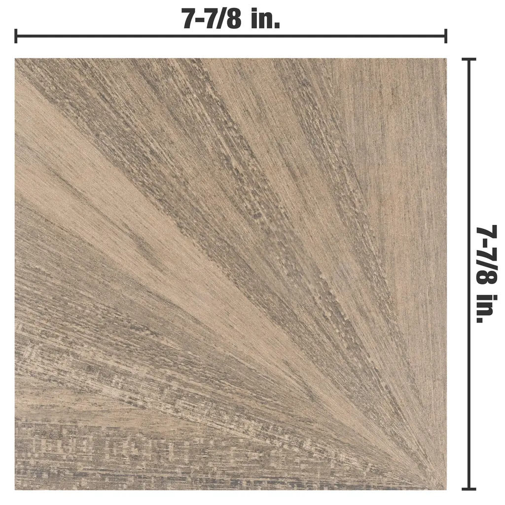 Modeling a geometric look, our Komi Murlen Miel Porcelain Floor and Wall Tile features a smooth, matte finish, providing decorative appeal that adapts to a variety of stylistic contexts. Containing 19 different print variations that are randomly distributed throughout each case, this brown square tile offers a one-of-a-kind look. With its impervious, frost-resistant features, this tile is an ideal selection for both indoor and outdoor residential installations, including kitchens, bathrooms, backsplashes, showers, hallways and fireplace facades. This tile is a perfect choice on its own or paired with other products in the Komi Collection. Tile is the better choice for your space! 11.25 square feet, 25 pieces per case. Case weight is 40 lbs. Grade 1, first-quality porcelain tile for floor and wall use 7.88 in. width x 7.88 in. length x 0.31 in. thick Glazed, smooth finish with a low sheen and slight variation in tone PEI Rating III is suitable for medium-duty residential floors including kitchens, halls, corridors, balconies, terraces and areas used more often with normal footwear and small amounts of dirt Impervious tiles have a water absorption of less than 0.5% for indoor and outdoor use and are frost resistant This tile is ADA approved for slip resistance with a DCOF value of 0.42 or higher. Completely frost resistant for indoor or outdoor applications; use a latex-modified thinset for acceptable bond strength Please note: A sample of this product may be a partial piece cut from the full size tile in order to provide an affordable and convenient way for customers to judge the quality and finish of this item. Samples are not returnable.