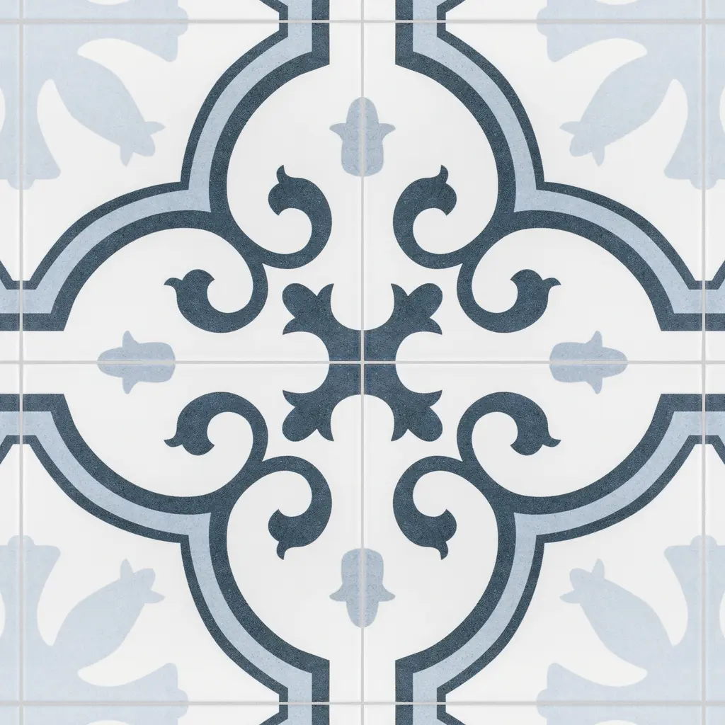 Capturing the appearance of an encaustic look, our Lacour Artic Porcelain Floor and Wall Tile features a smooth, satin finish, providing decorative appeal that adapts to a variety of stylistic contexts. With its impervious, frost-resistant features, this white square tile is an ideal selection for a variety of spaces including indoor and outdoor commercial and residential installations, kitchens, bathrooms, backsplashes, showers, hallways, entryways, patios, pools and fireplace facades. This tile is a perfect choice on its own or with other products in the Merola Tile, Lacour Collection. To ensure optimal results, please consult with your installer and review the product specifications to confirm that this tile meets the specific needs of your project.