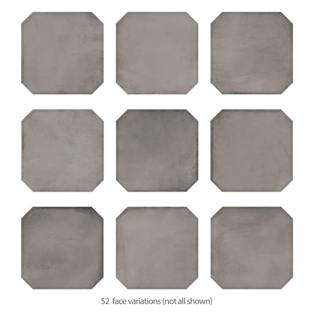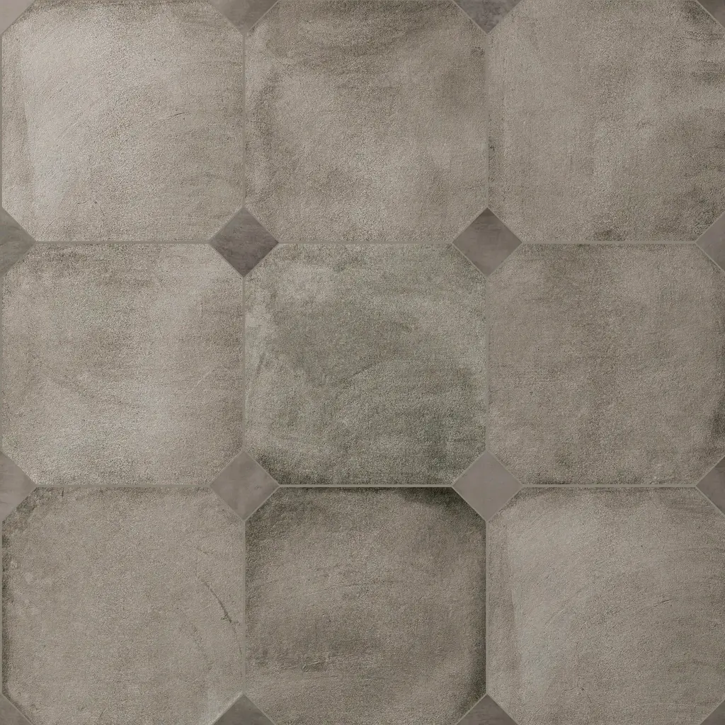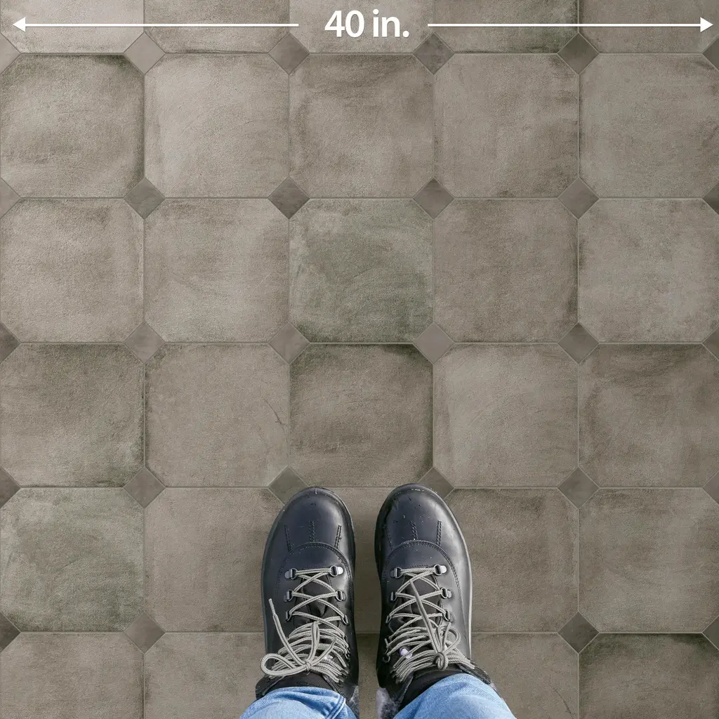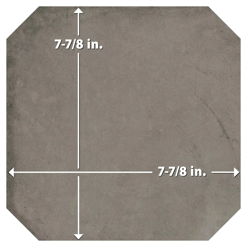 Offering a cement look, our Laverton Octagon Grafito Porcelain Floor and Wall Tile features a smooth, matte finish, providing decorative appeal that adapts to a variety of stylistic contexts. Inspired by Laverton's quaint stone cottages and picturesque hills, this collection's matte finish, slight undulation, and versatile colors create a unique blend of rustic charm and timeless elegance, transforming your space into a cozy haven reminiscent of the English countryside. This Octagon pairs perfectly with any Merola 2 in. Taco or a Taco of your choice. Containing 52 different print variations that are randomly distributed throughout each case, this gray octagon tile offers a one-of-a-kind look. With its impervious, frost-resistant features, this tile is an ideal selection for a variety of spaces including indoor and outdoor residential installations, bathrooms, backsplashes, showers, hallways, pools and fireplace facades. Discover more products from the Merola Tile Laverton Collection to complete your design. To ensure optimal results, please consult with your installer and review the product specifications to confirm that this tile meets the specific needs of your project.