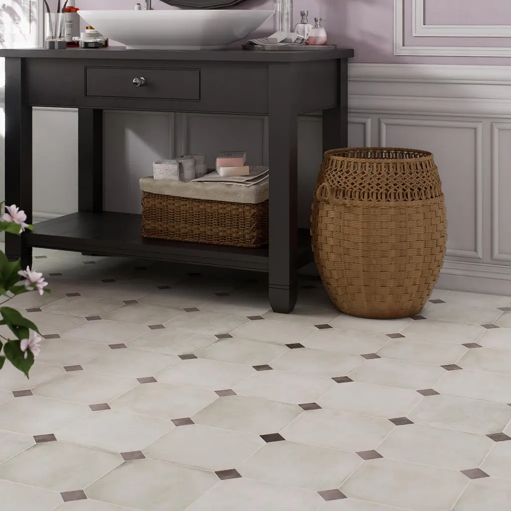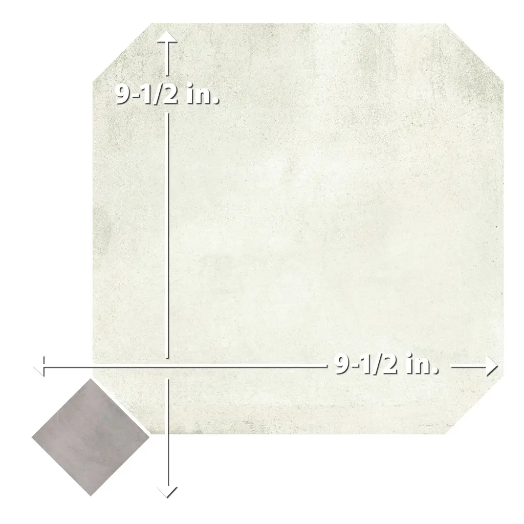 Offering a cement look, our Laverton Octagon Nieve with Taco Gris Porcelain Floor and Wall Tile features a smooth, matte finish, providing decorative appeal that adapts to a variety of stylistic contexts. Inspired by Laverton's quaint stone cottages and picturesque hills, this collection's matte finish, slight undulation, and versatile colors create a unique blend of rustic charm and timeless elegance, transforming your space into a cozy haven reminiscent of the English countryside. Containing 52 different print variations that are randomly distributed throughout each case, this light gray specialty tile offers a one-of-a-kind look. With its impervious, frost-resistant features, this tile is an ideal selection for a variety of spaces including indoor and outdoor residential installations, kitchens, bathrooms, backsplashes, showers, hallways, pools and fireplace facades. Discover more products from the Merola Tile Laverton Collection to complete your design. To ensure optimal results, please consult with your installer and review the product specifications to confirm that this tile meets the specific needs of your project. 11.25 square feet, 50 pieces per case. Case weight is 41.72 lbs. Grade 1, first-quality porcelain tile for floor and wall use This kit includes a total of 50 pieces, featuring a variety of components in different sizes and shapes - refer to the images for installation inspiration and ideas Glazed, smooth finish with a low sheen and moderate variation in tone PEI Rating III is suitable for medium-duty residential floors including kitchens, halls, corridors, balconies, terraces and areas used more often with normal footwear and small amounts of dirt Impervious tiles have a water absorption of less than 0.5% for indoor and outdoor use and are frost resistant This tile is ADA approved for slip resistance with a DCOF value of 0.42 or higher. Completely frost resistant for indoor or outdoor applications; use a latex-modified thinset for acceptable bond strength Please note: A sample of this product may be a partial piece cut from the full size tile in order to provide an affordable and convenient way for customers to judge the quality and finish of this item. Samples are not returnable.