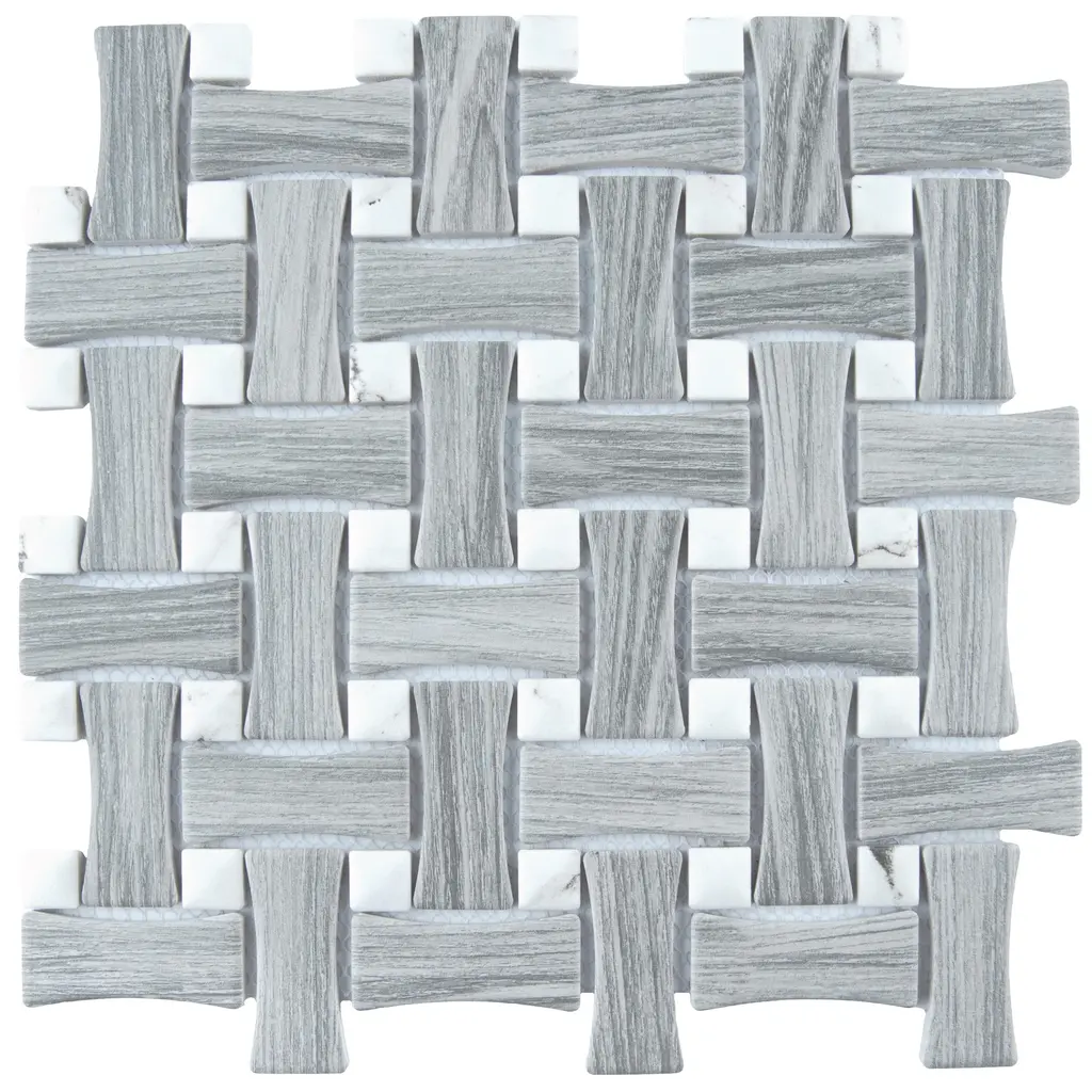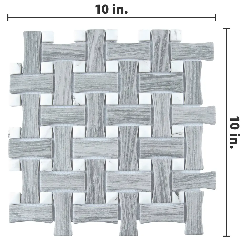 Offering a mosaic look, our Llama Dog Bone Basketweave Silver Smoke/Calacatta Dot Porcelain Floor and Wall Tile features a slightly textured, matte finish, providing decorative appeal that adapts to a variety of stylistic contexts. With its impervious, frost-resistant features, this gray specialty mosaic is an ideal selection for both indoor and outdoor commercial and residential installations, including kitchens, bathrooms, backsplashes, showers, hallways, entryways, patios and fireplace facades. This tile is a perfect choice on its own or paired with other products in the Llama Collection. Tile is the better choice for your space! 7.1 square feet, 10 pieces per case. Case weight is 16.98 lbs. Grade 1, first-quality porcelain tile for floor and wall use 10 in. width x 10 in. length x 0.22 in. thick mesh-mounted mosaic Glazed, slightly textured finish with a low sheen and uniform appearance in tone PEI Rating IV has high resistance to abrasion and is suitable for heavy-duty residential and commercial kitchens, hotels, exhibition and sales rooms with some dirt conditions Impervious tiles have a water absorption of less than 0.5% for indoor and outdoor use and are frost resistant This tile is ADA approved for slip resistance with a DCOF value of 0.42 or higher. Completely frost resistant for indoor or outdoor applications; use a latex-modified thinset for acceptable bond strength Please note: A sample of this product may be a partial piece cut from the full size tile in order to provide an affordable and convenient way for customers to judge the quality and finish of this item. Samples are not returnable.