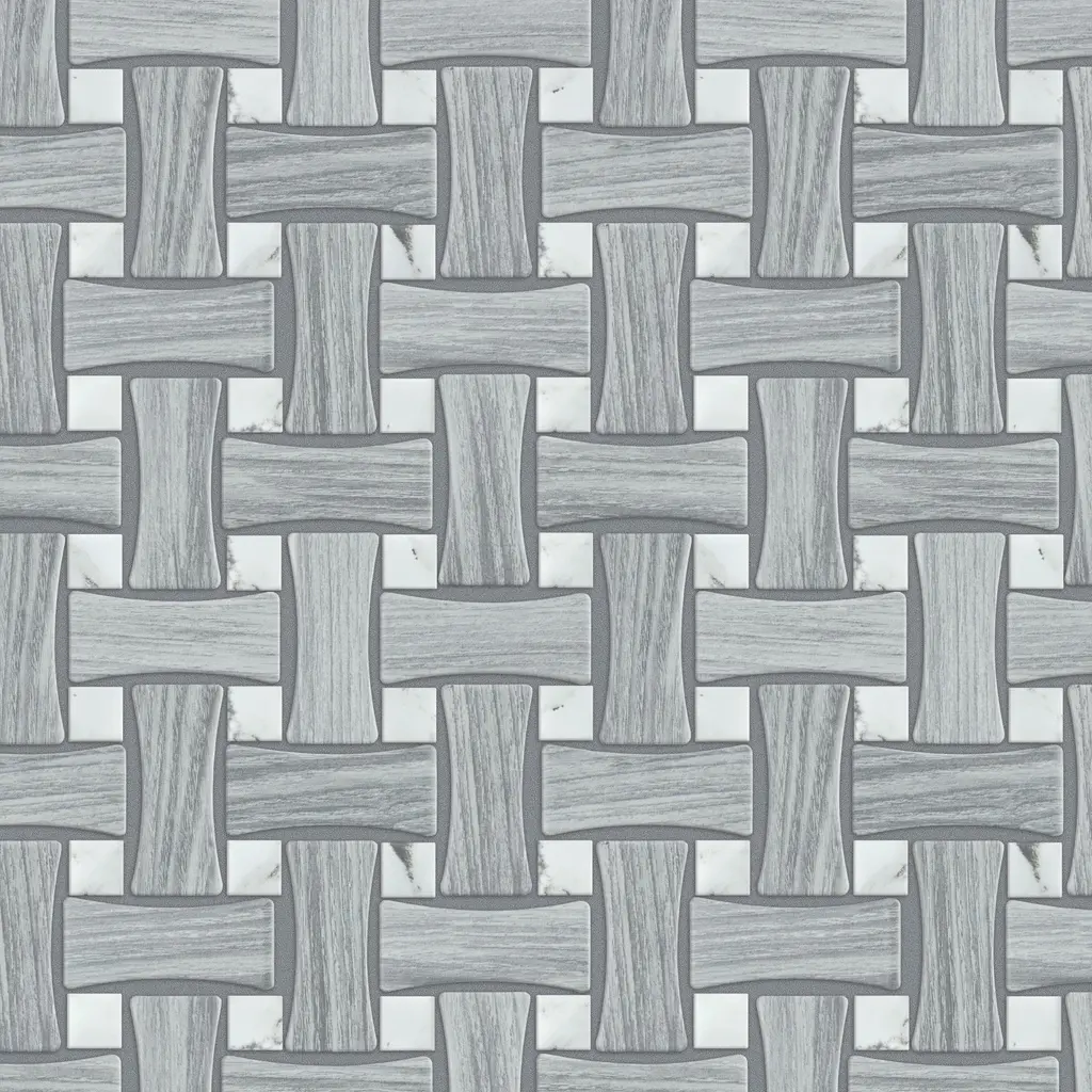 Merola Tile Llama Dog Bone Basketweave Silver Smoke/calacatta Dot 10" X 10" Porcelain Floor And Wall Tile - Case (10 Tiles)