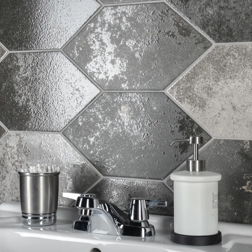 Offering a simplistic look, our Magma Kayak Grey Porcelain Floor and Wall Tile features a smooth, mixed finish, providing decorative appeal that adapts to a variety of stylistic contexts. Containing 48 different print variations that are randomly distributed throughout each case, this gray elongated hexagon tile offers a one-of-a-kind look. With its impervious, frost-resistant features, this tile is an ideal selection for a variety of spaces including indoor and outdoor residential installations, kitchens, bathrooms, backsplashes, showers, hallways, pools and fireplace facades. This tile is a perfect choice on its own or with other products in the Merola Tile, Magma Collection. To ensure optimal results, please consult with your installer and review the product specifications to confirm that this tile meets the specific needs of your project.